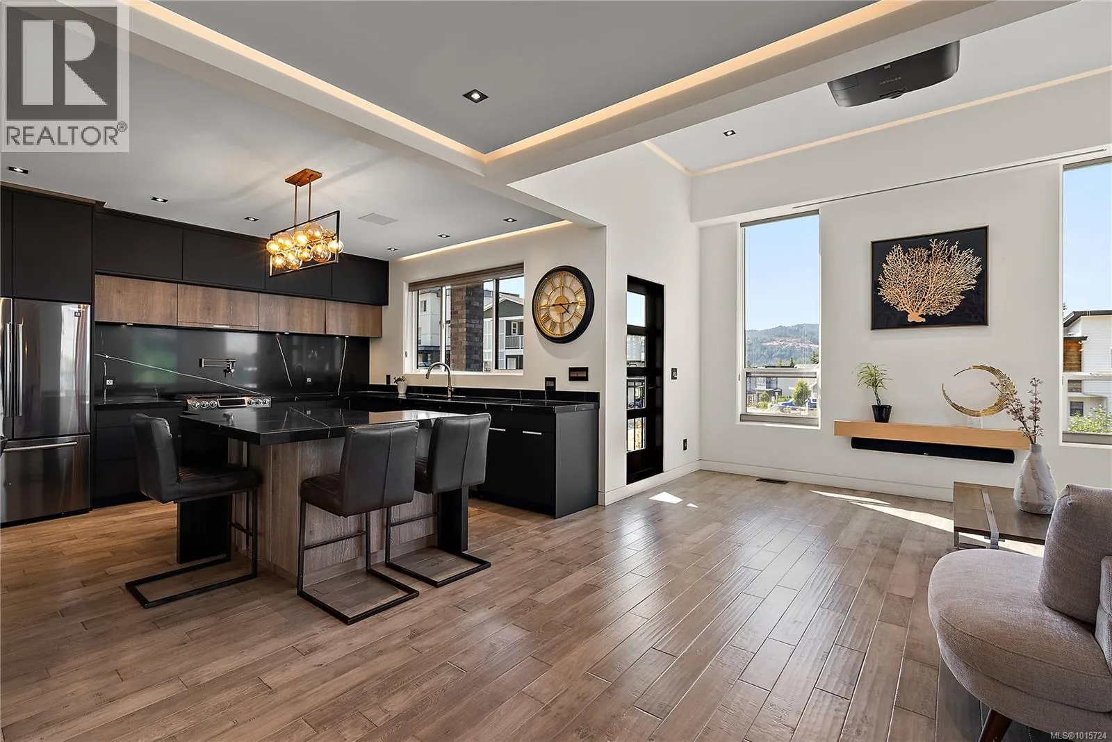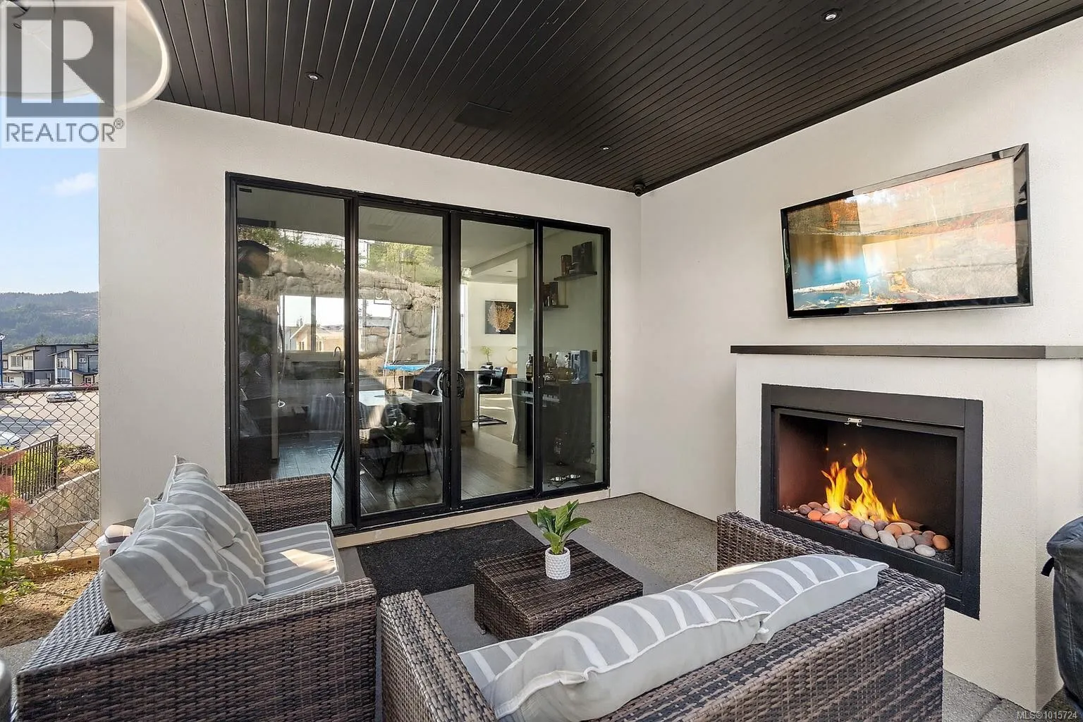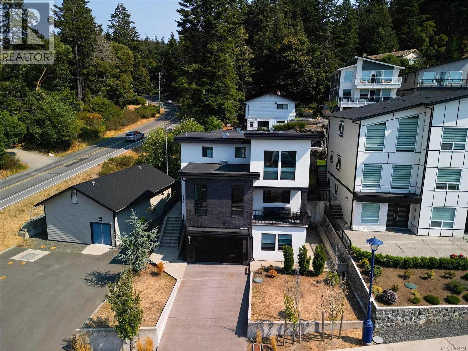 Modern, Contemporary & Bold, this 4 bed/4 bath home with legal suite in the heart of Langford is thoughtfully designed and an entertainer's dream! Built in 2020, this 2,600+ sq ft stunner blends style, function & quality. Eye-catching exterior with stamped concrete, lit aggregate walkways, custom railings & a mix of brick, stucco & wood. You will love the open layout and high-end finishings with high ceilings, recessed lighting, a large media/entertainment room, spacious great room & a dream kitchen with gas range, oversized quartz island & dining area. Step out to a covered patio with gas fireplace & fenced yardâperfect for kids, pets & entertaining. Upstairs, retreat to the primary oasis with valley views, walk-in closet & spa-like ensuite, plus 2 more bedrooms, walk in laundry room & a 4-pc bath. Added perks: heat pump, on-demand HW, projector and surround sound, security system, EV charger, central vac & premium finishes throughout. A like-new executive home with income potential! (id:27476)