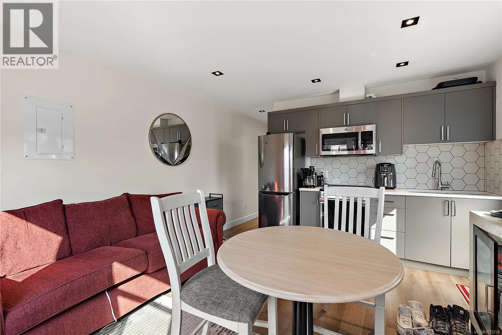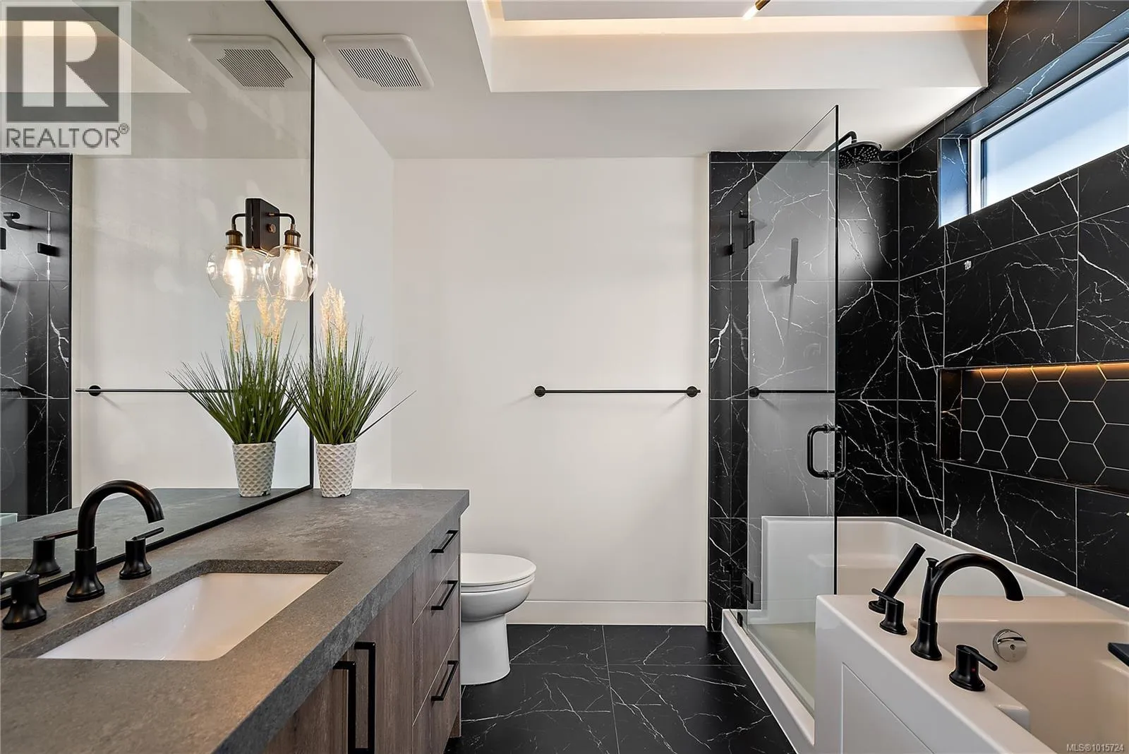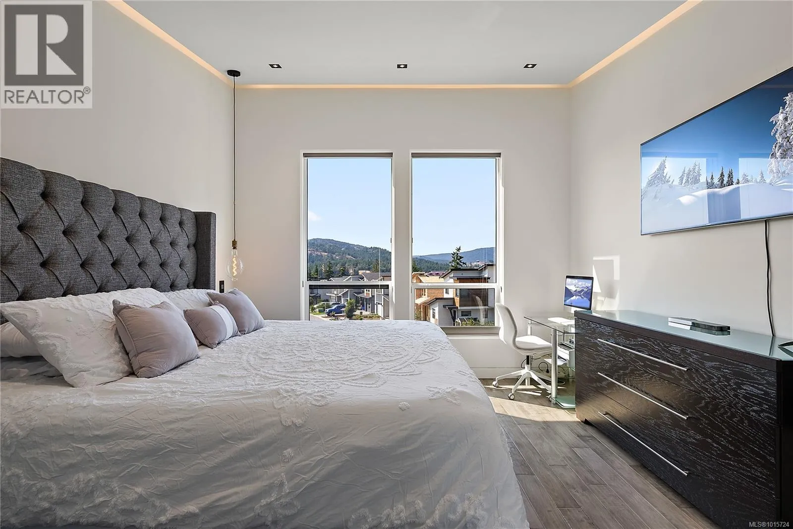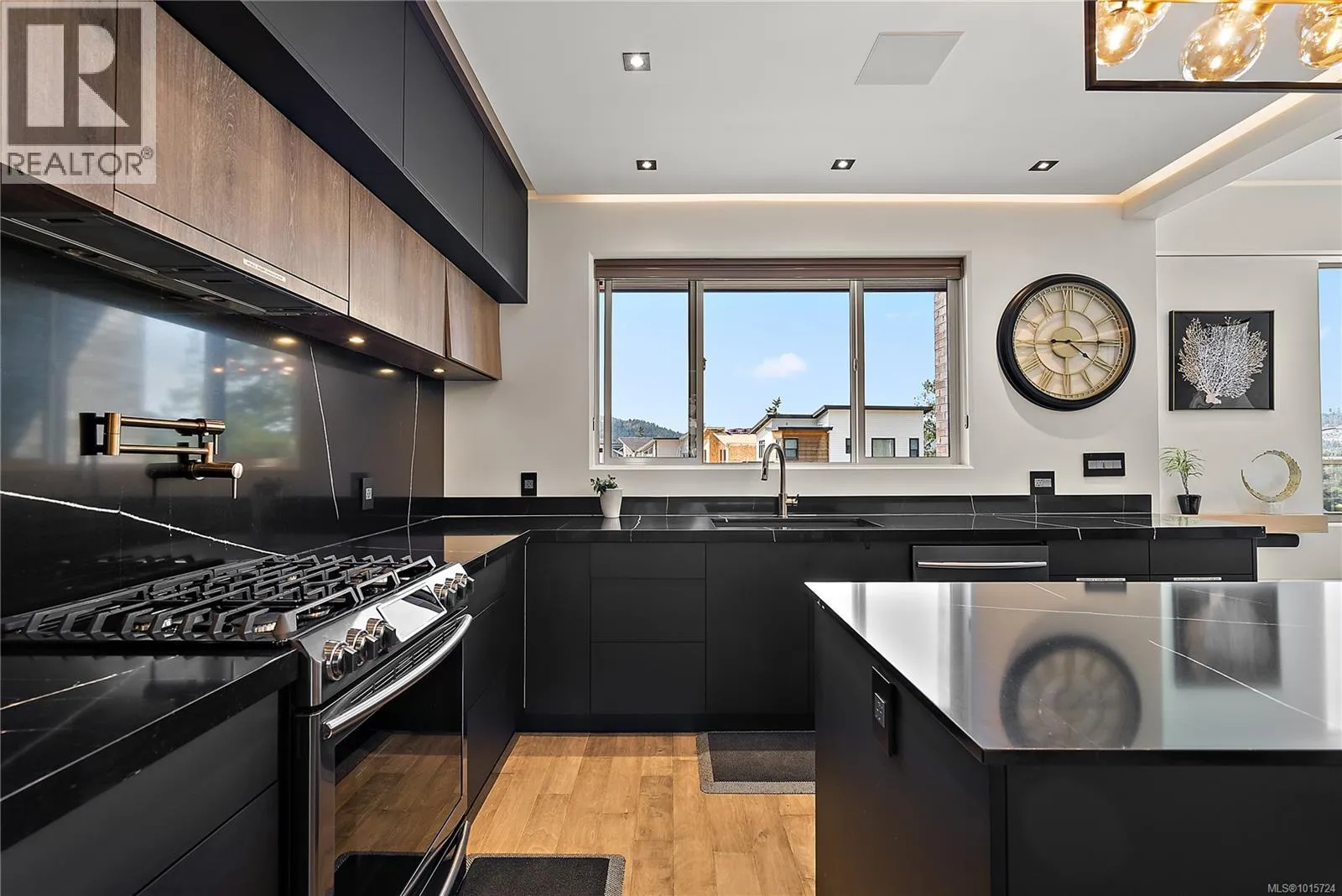 Modern, Contemporary & Bold, this 4 bed/4 bath home with legal suite in the heart of Langford is thoughtfully designed and an entertainer's dream! Built in 2020, this 2,600+ sq ft stunner blends style, function & quality. Eye-catching exterior with stamped concrete, lit aggregate walkways, custom railings & a mix of brick, stucco & wood. You will love the open layout and high-end finishings with high ceilings, recessed lighting, a large media/entertainment room, spacious great room & a dream kitchen with gas range, oversized quartz island & dining area. Step out to a covered patio with gas fireplace & fenced yardâperfect for kids, pets & entertaining. Upstairs, retreat to the primary oasis with valley views, walk-in closet & spa-like ensuite, plus 2 more bedrooms, walk in laundry room & a 4-pc bath. Added perks: heat pump, on-demand HW, projector and surround sound, security system, EV charger, central vac & premium finishes throughout. A like-new executive home with income potential! (id:27476)