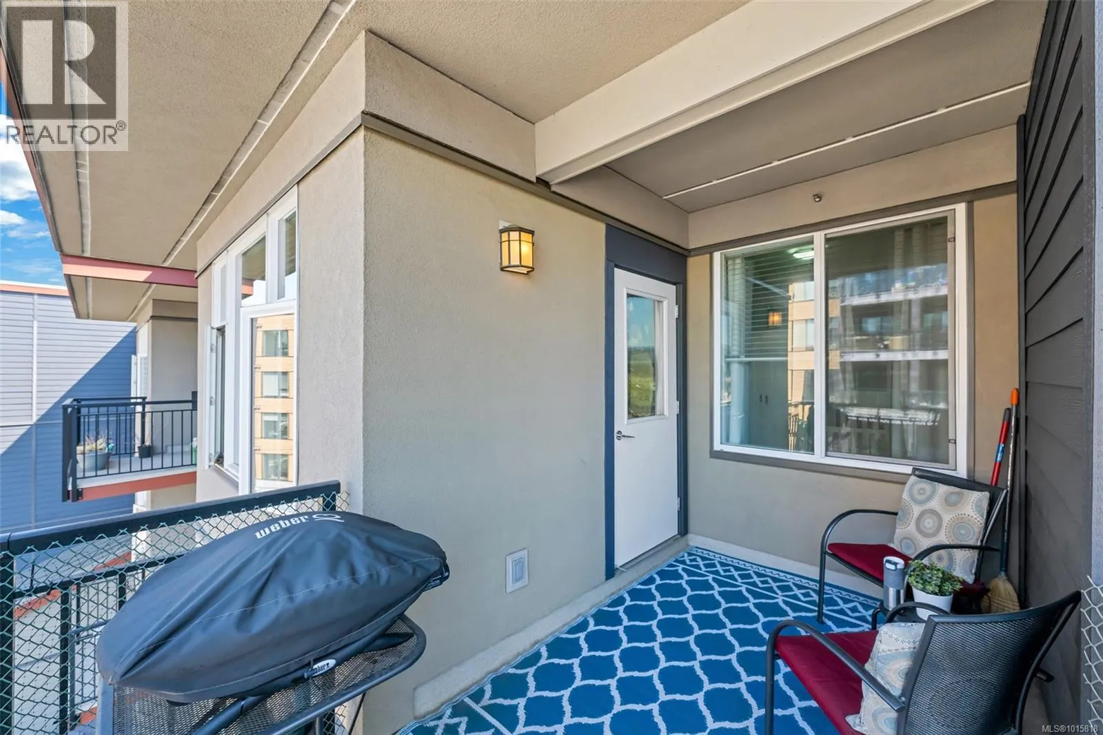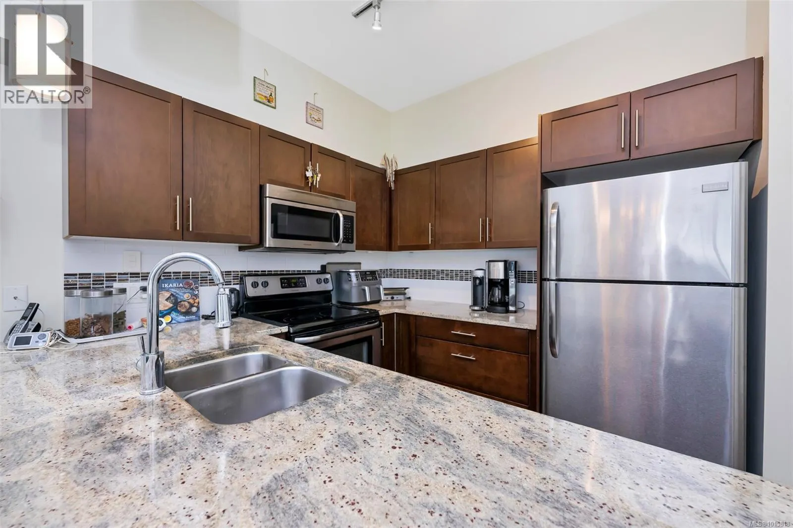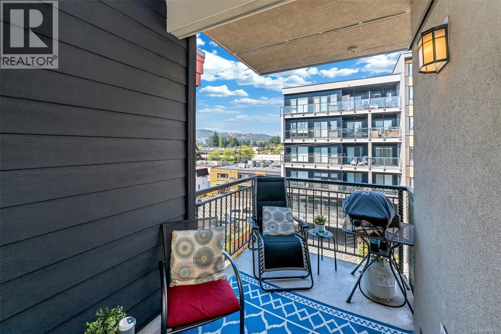 Welcome to top-floor living at The Granderson! This immaculate 2-bed, 2-bath suite offers a bright, open layout perfect for modern living. The kitchen shines with granite countertops and an eating bar, flowing seamlessly to a living area and sundeck overlooking Bear Mountain. The smart floor plan separates the bedrooms for maximum privacy. Your backyard is the famous Galloping Goose trail, and you're just a stroll away from the Royal Colwood Golf Course and the heart of downtown Langford. This central location puts you minutes from Westshore Town Centre, dining, and parks. The building is pet-friendly, rental-friendly, and allows BBQs. Secure underground parking and a separate storage locker complete this perfect package. Don't miss this fantastic opportunity for investors or first-time buyers! (id:27476)