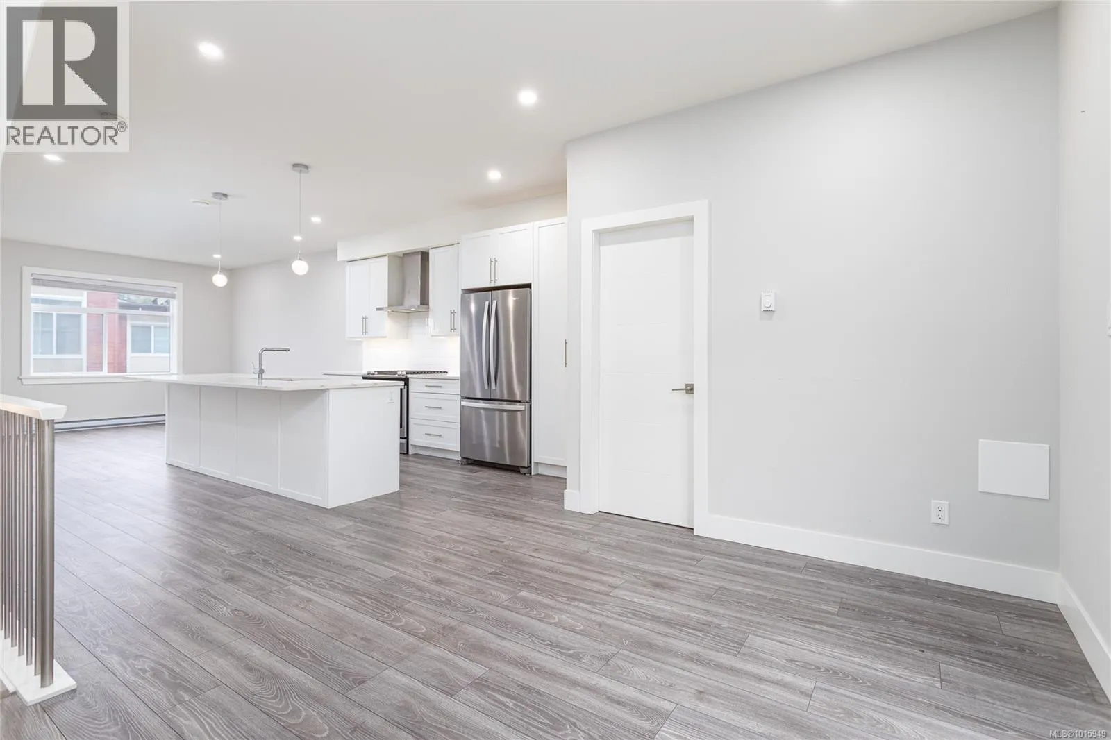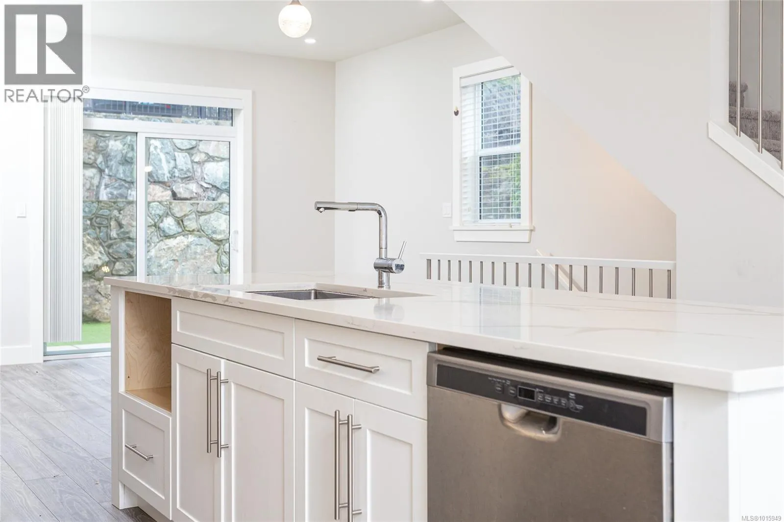 Welcome to this beautifully designed 2020 corner townhome in the sought-after Langford-Millstream neighbourhood. Offering a modern layout with an abundance of natural light, this home is perfect for families, professionals, and investors alike. The main level features an open-concept living space with kitchen, dining, and living areas that flow seamlessly together. The stylish kitchen boasts a large island, tiled backsplash, gas stove, and generous storage and counter space. From here, step out to the west-facing private patioâideal for entertainingâwith a gas BBQ hookup and a fenced yard, perfect for kids and pets. Upstairs, the spacious primary suite impresses with vaulted ceilings, a walk-in closet, and a modern ensuite. On the lower level, youâll find a double-length garage that fits two vehicles, plus an additional undeveloped space that can be customized into an office, den, guest bedroom, or hobby area. The side yard adjacent to the entrance can be fenced off and incorporated into the lot, as permission has been granted. This additional space is suitable for storage sheds or can be utilized as a children's play area or for outdoor entertainment. Located close to schools, parks, and outdoor activities, with quick access to downtown Victoria and minutes to Millstream Village, Costco, and Home Depot. This family-friendly complex allows pets and rentalsâmaking it a smart choice whether youâre buying to live or invest! (id:27476)