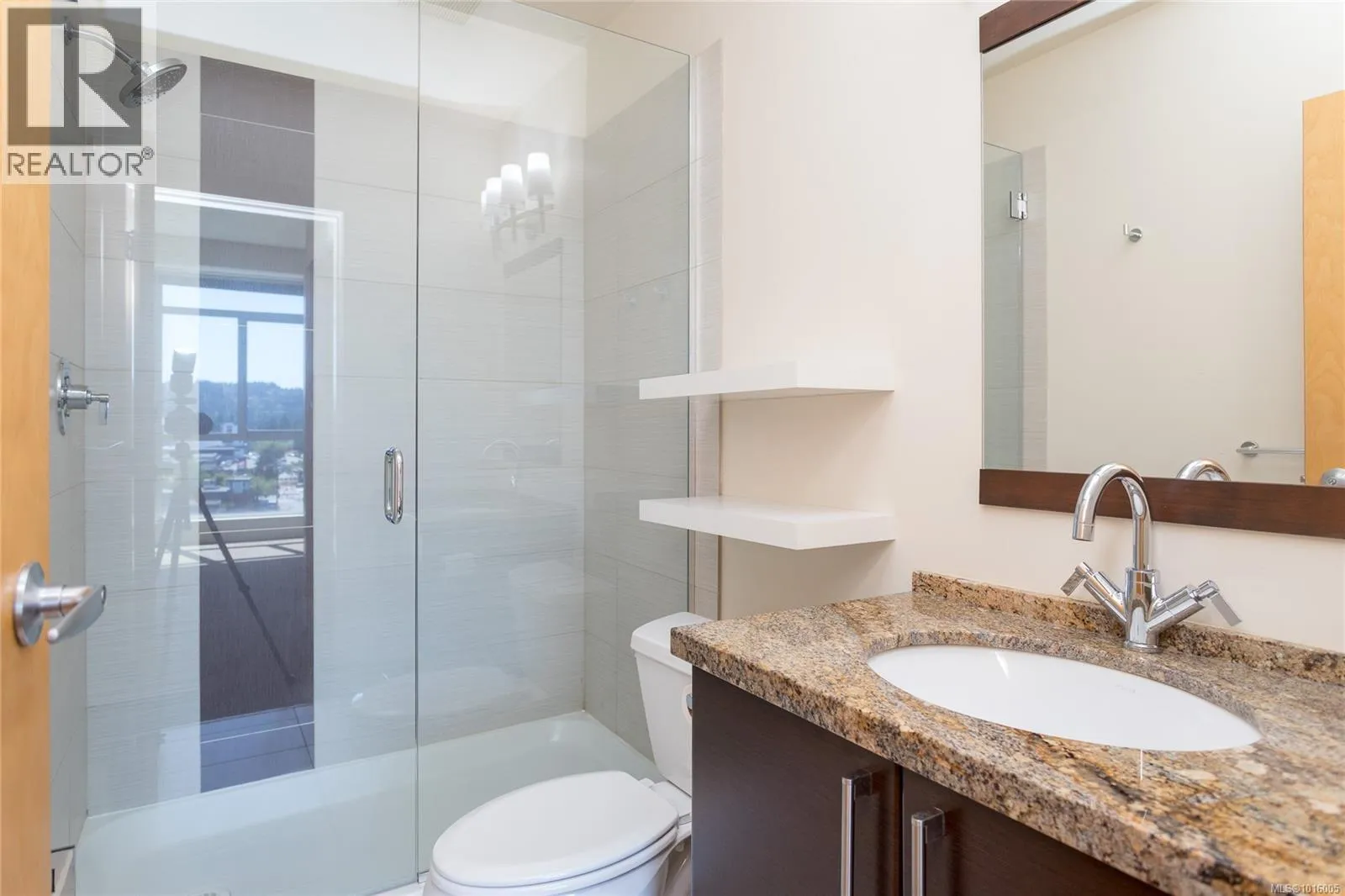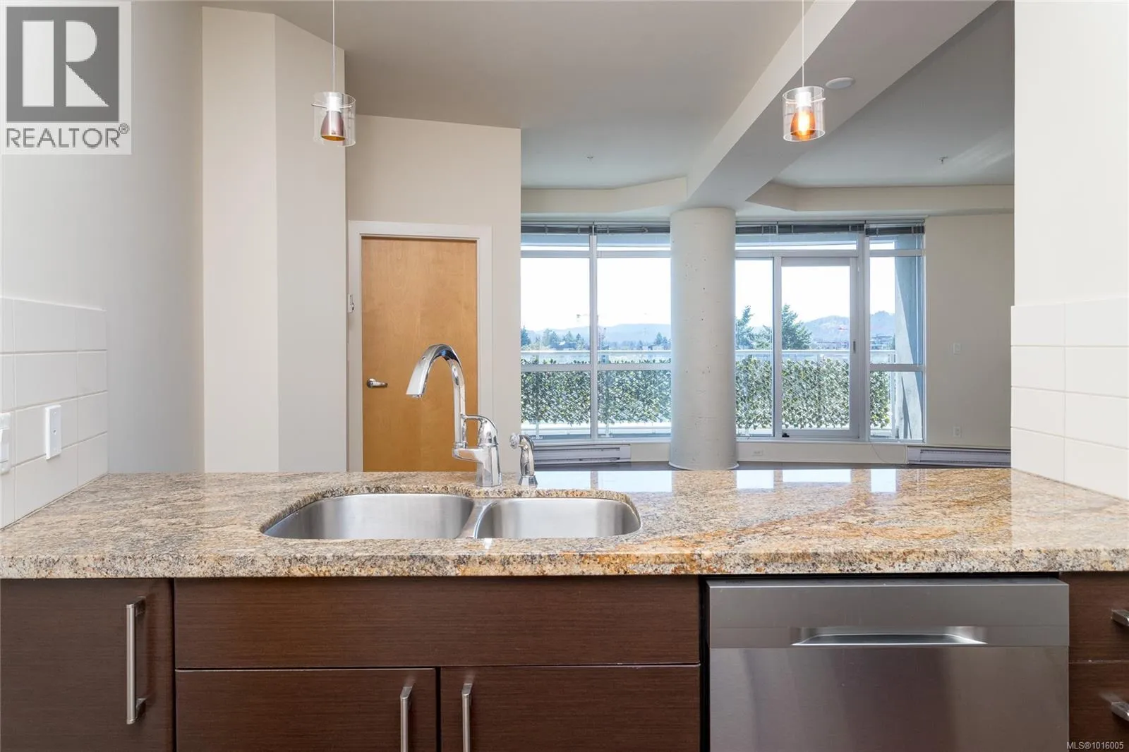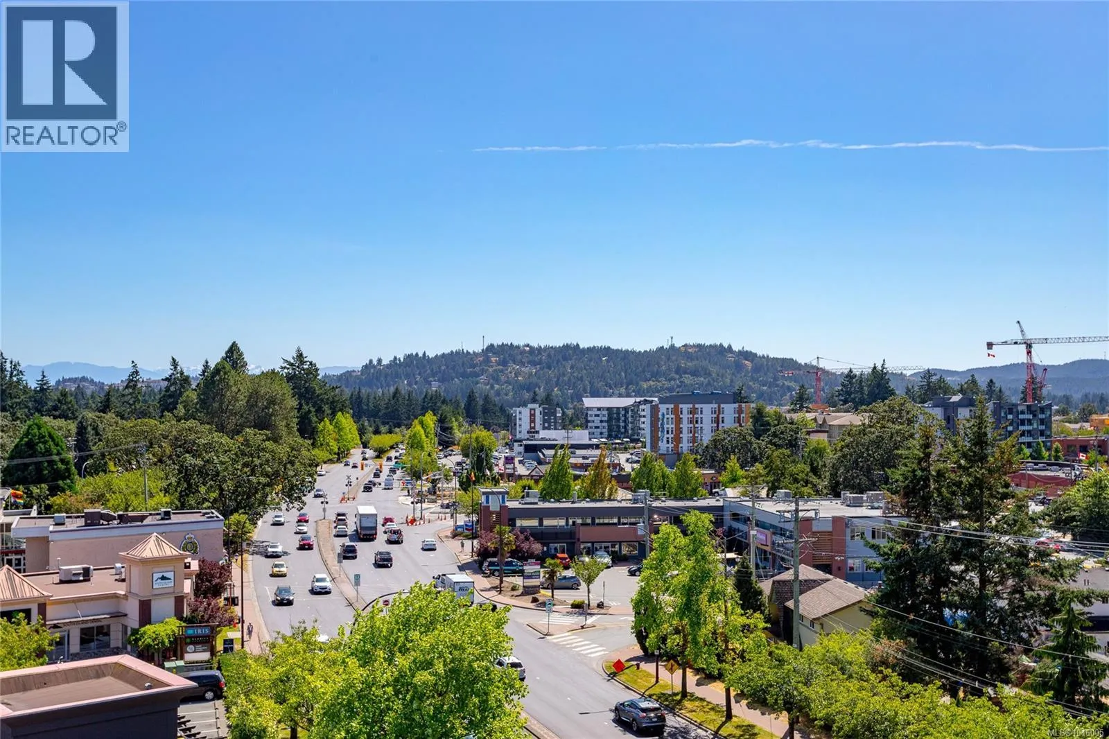 Experience elevated living in this top-floor penthouse, combining modern sophistication with durable steel and concrete construction. This bright, open-concept home offers two bedrooms, two bathrooms, high ceilings, and expansive windows showcasing sweeping mountain and city views. The gourmet kitchen features granite counters, stainless steel appliances, and an entertainerâs island. The spacious primary suite includes a walk-in closet and spa-style ensuite with walk-in shower and floor-to-ceiling glass. Enjoy in-suite laundry, wired surround sound, secure underground parking, and a storage locker. Residents also benefit from rooftop amenities including a running track, sitting areas, and a unique outdoor pool. Located in the heart of Goldstream Village with cafés, shops, parks, and transit steps away, this home offers a rare blend of comfort, luxury, and convenience. A standout opportunity in one of the Westshoreâs most vibrant communities. (id:27476)