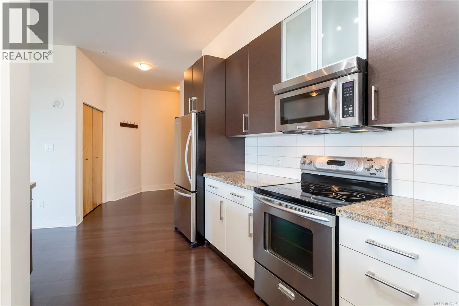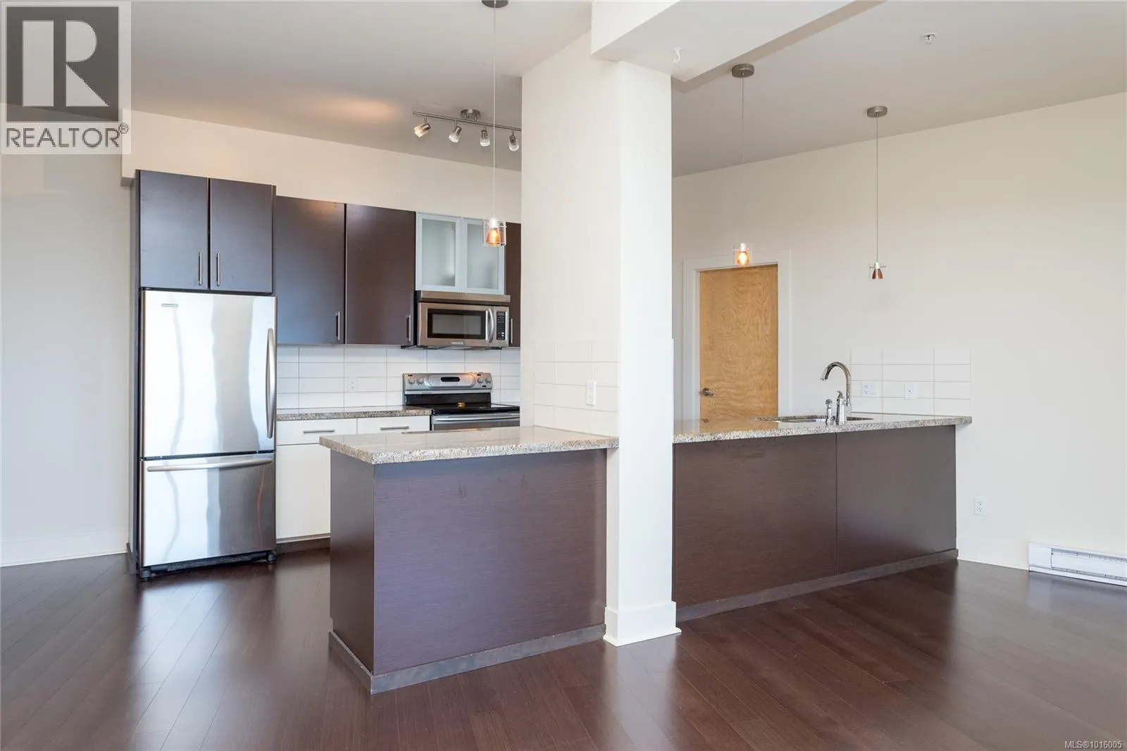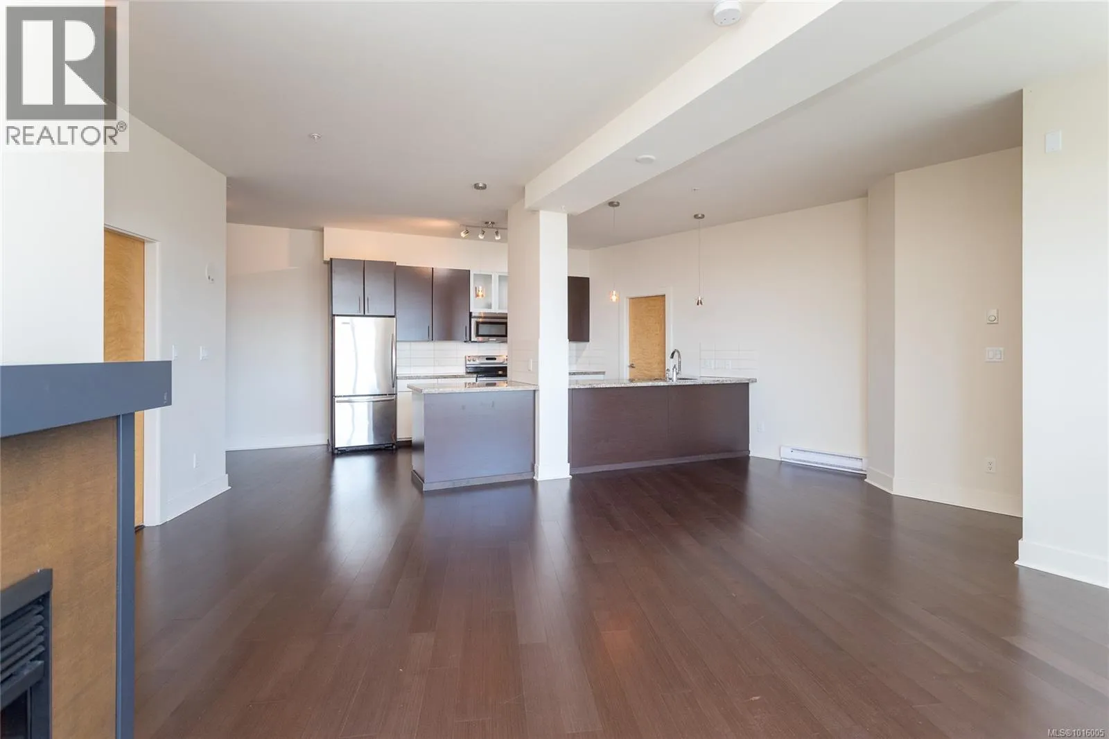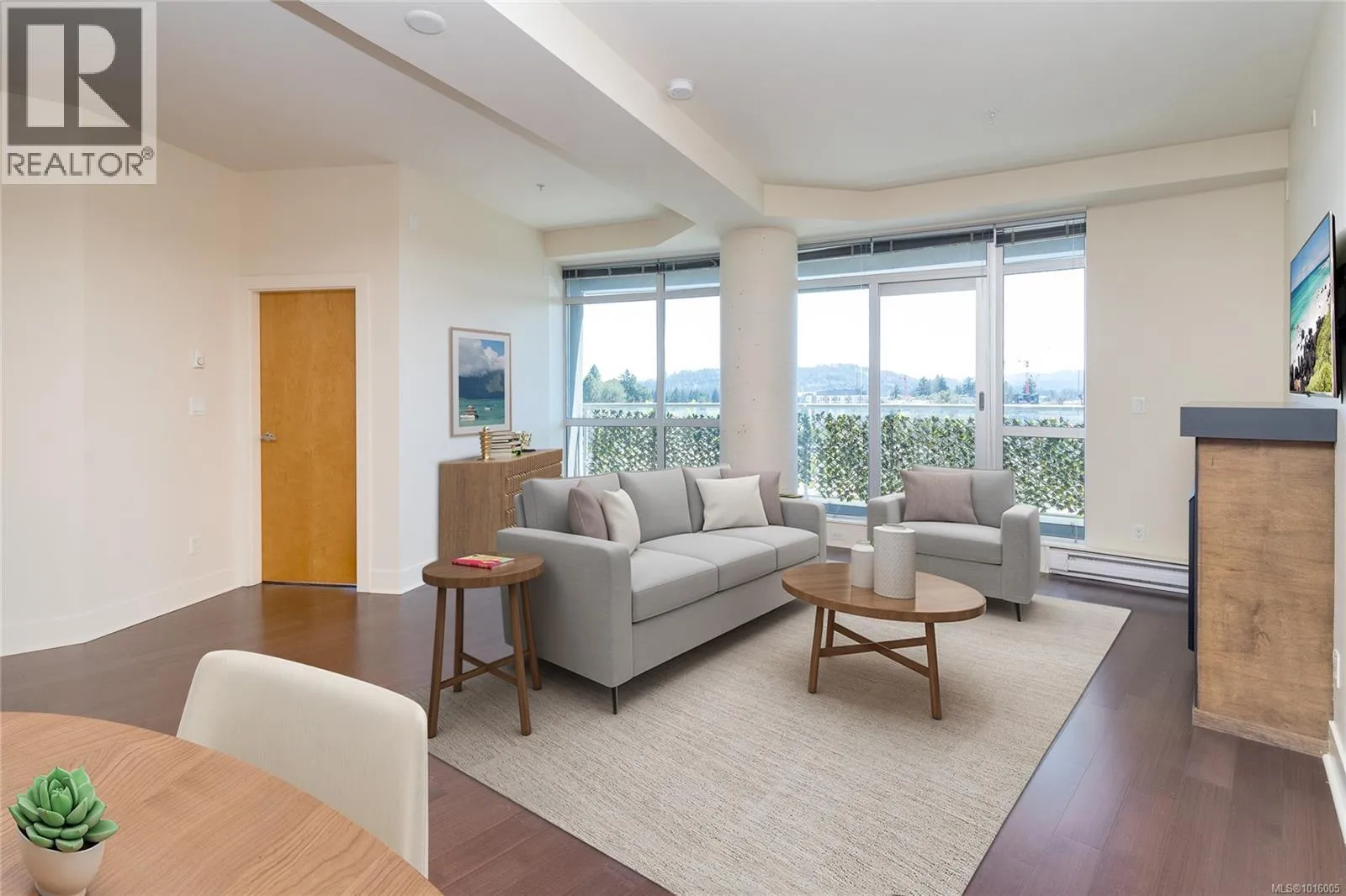Experience elevated living in this top-floor penthouse, combining modern sophistication with durable steel and concrete construction. This bright, open-concept home offers two bedrooms, two bathrooms, high ceilings, and expansive windows showcasing sweeping mountain and city views. The gourmet kitchen features granite counters, stainless steel appliances, and an entertainerâs island. The spacious primary suite includes a walk-in closet and spa-style ensuite with walk-in shower and floor-to-ceiling glass. Enjoy in-suite laundry, wired surround sound, secure underground parking, and a storage locker. Residents also benefit from rooftop amenities including a running track, sitting areas, and a unique outdoor pool. Located in the heart of Goldstream Village with cafés, shops, parks, and transit steps away, this home offers a rare blend of comfort, luxury, and convenience. A standout opportunity in one of the Westshoreâs most vibrant communities. (id:27476)