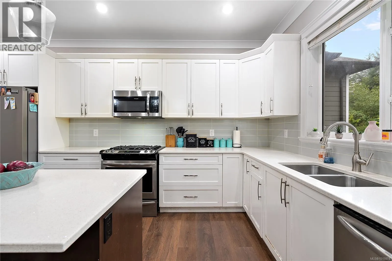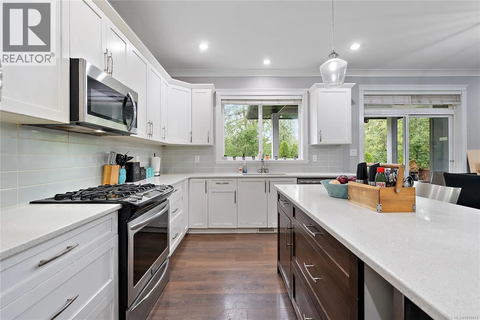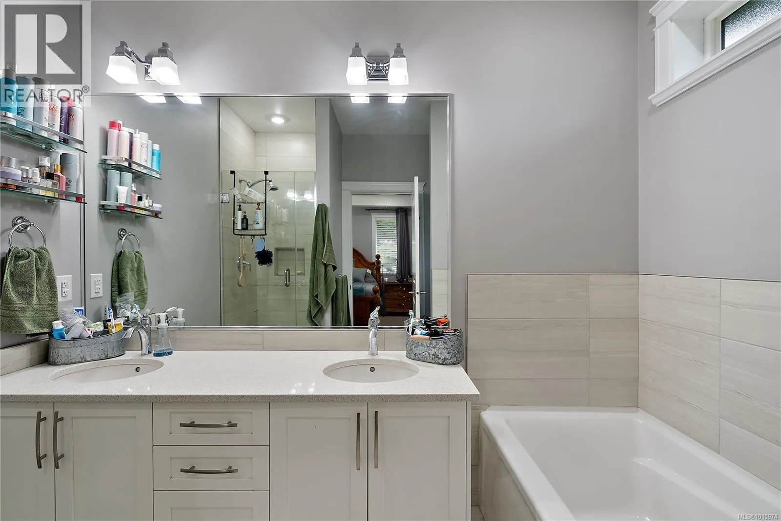 Welcome to this Warm and Inviting 4-bedroom, 4-bath West Coast home on a 6,200 sq.ft. Corner Lot with a Sunny, West-facing backyard, perfect for kids and outdoor fun. The main floor features a Family-friendly kitchen with stainless steel appliances, walk-in pantry, that is open to the dining area. A bright office/den and roomy mudroom complete the main level. Upstairs offers Three bedrooms, including a spacious Primary Suite with a 5-piece ensuite, plus a large laundry room with plenty of storage. A Separate One-bedroom suite above the Double Garage has its own full kitchen and laundry; Ideal for grandparents, teens, or rental. Enjoy modern touches like hot water on demand, natural gas, a heat pump, and crawl space storage. Located in a growing neighbourhood steps from parks, and the fun new Elementary School just down the road! Close to Royal Bay shops and minutes from Olympic View Golf Course. HD Video, Photos, Floor Plans and Virtual Tour is Online. BONUS $120,000 under Assessed. (id:27476)