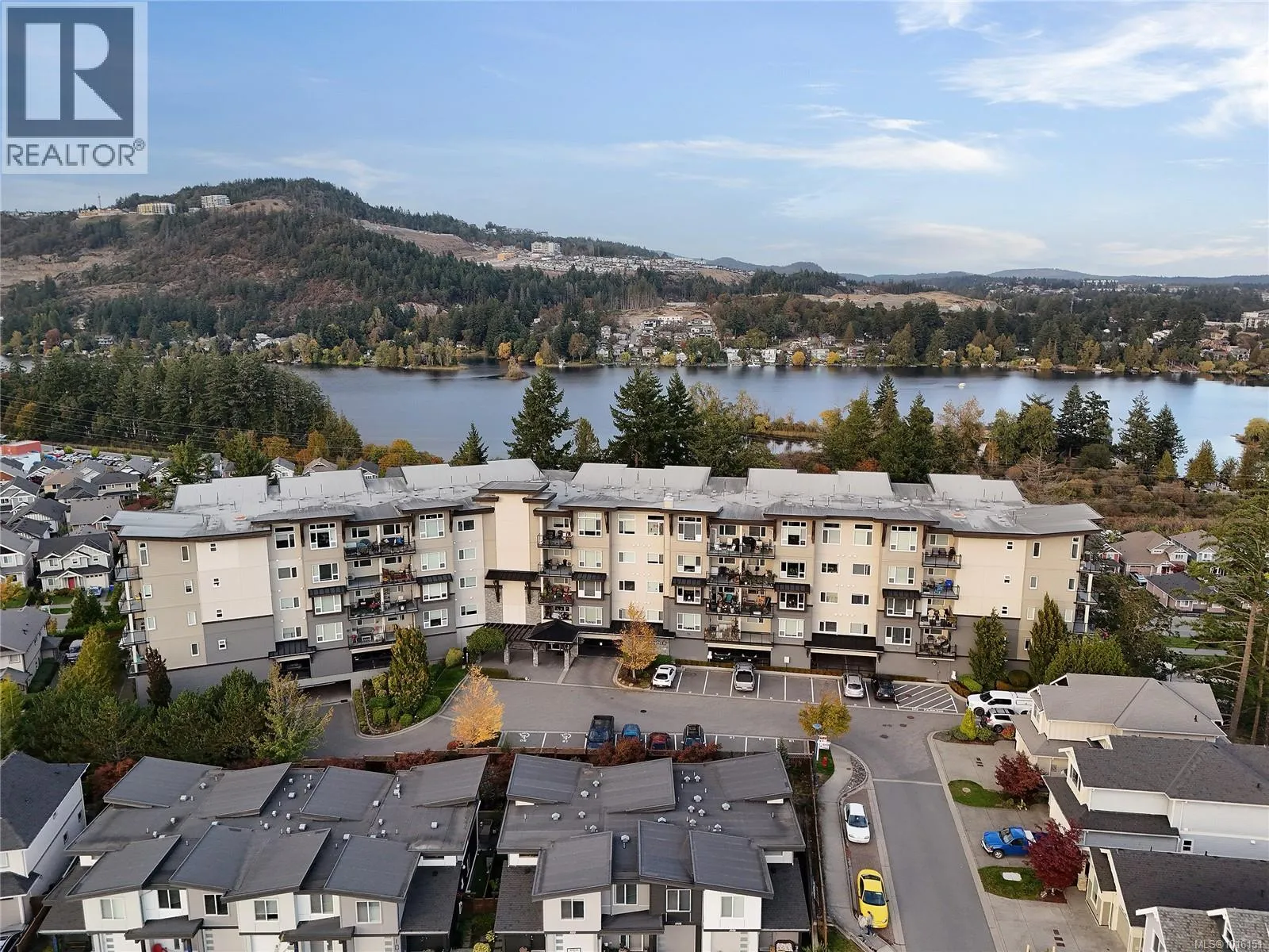 Welcome to GlenHeights at Westhills â a rare and private corner unit with sweeping, unobstructed views of Langford Lake, Skirt Mountain and more. Just steps from the water, this bright and airy 2-bedroom, 2-bath home features 9â ceilings, oversized windows and an open-concept layout ideal for modern living. The kitchen shines with granite countertops, stainless steel appliances, and under-cabinet lighting, while the bedrooms are thoughtfully separated for added privacy. The primary suite includes a walk-in closet and a full ensuite. Enjoy year-round comfort with geothermal in-floor heating (included in strata fees), in-suite laundry, and same-floor storage. Step onto your large covered deck to unwind in complete privacy, or take advantage of nearby parks, trails, and lakeside paths. This pet-friendly building allows BBQs and includes secure underground parking and a bike storage room. With the YMCA/YWCA, library, cafés, schools, and shopping all within walking distance, this home perfectly combines tranquility, convenience and the best of Westhills living. (id:27476)