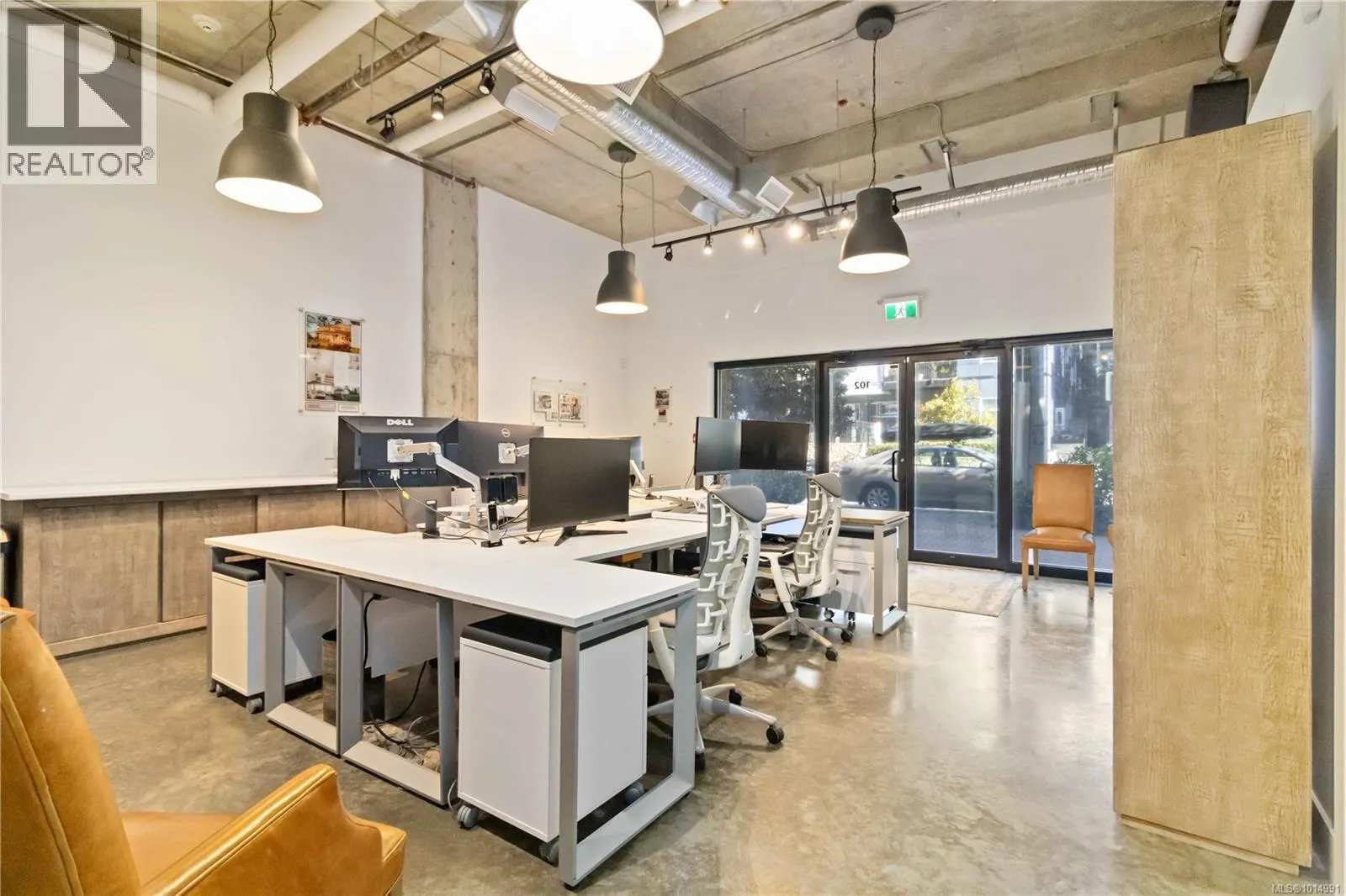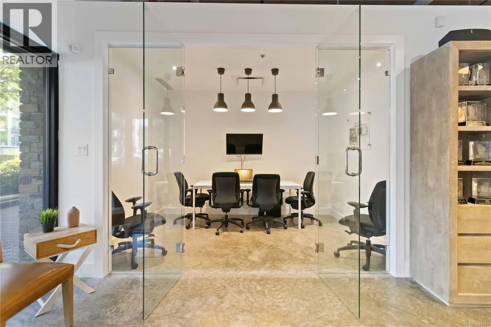 This ground-floor office/retail strata space is an unreal commercial investment property! Located in the heart of Langford, steps from amenities such as Rhino Coffee House, F45 Training, Walmart, McDonald's, West Shore Mall and multiple fast food and restaurants surrounding! Available for purchase by an investor looking for a commercial real estate investment with a long-term, class A tenant in place, offering a return on investment of approximately. 7%!! The space is brand-new inside with high-end improvements, including a polished concrete floor, modern electric fireplace, two large offices with floor-to-ceiling glass, an open work area with up to 6 workstations, a reception area, a washroom and kitchen, all with very modern, west coast finishes and high ceilings throughout. Bonus: the strata space includes two (2) surface parking stalls easily accessed by the rear exit door, and a plethora of visitor and customer surface stalls. It is a must-see! (id:27476)