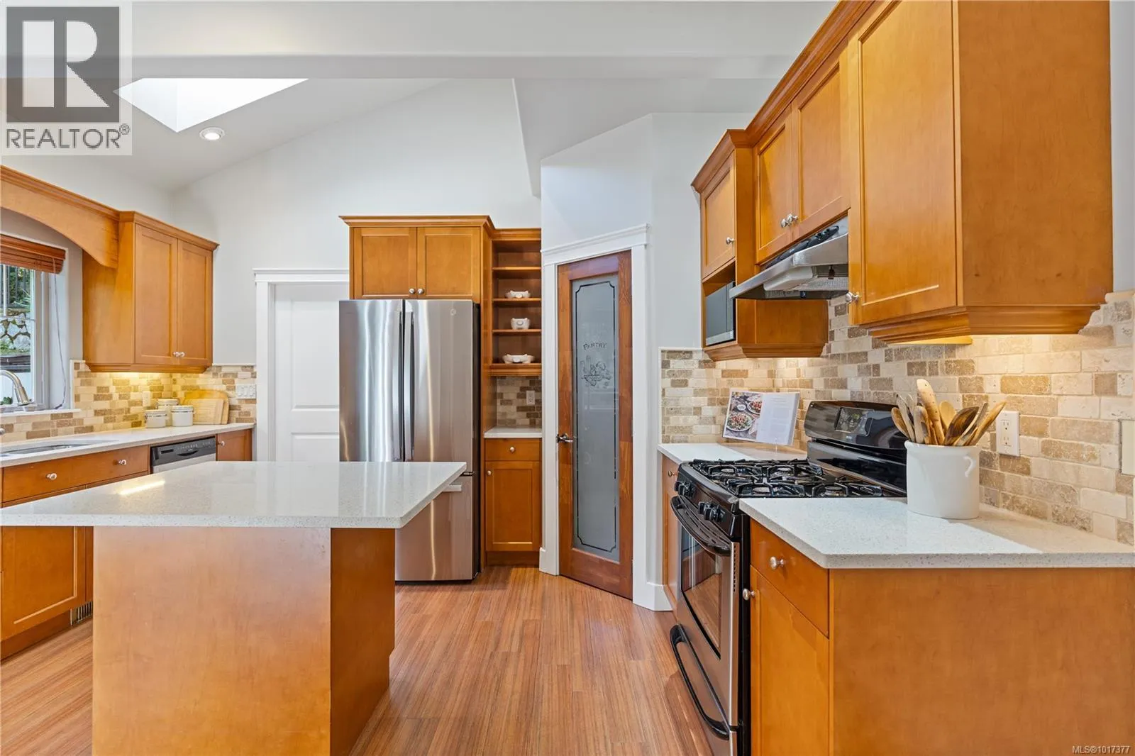 Welcome to 2151 Harrow Gateâa well-maintained 4BD/3BA home on a beautifully landscaped lot in Bear Mountain located on a quiet no-through street, close to parks, schools, golf, tennis, shopping, fitness, and transit. The main level offers a vaulted entry, bright living room with gas fireplace, and east-facing patio. The kitchen features ample cabinets, pantry, dining area, and access to a private patioâgreat for outdoor dining. Main floor primary bedroom includes a 5pc ensuite, walk-in closet, and access to the backyard. Upstairs has 3 spacious bedrooms, a 5pc bath, and open flex space ideal for an office or sitting area. Other features: heat pump for efficient heating/cooling, new hot water tank and generator (2024), full laundry room, over-height double garage, and crawlspace storage. A perfect family home in a great neighbourhood! (id:27476)