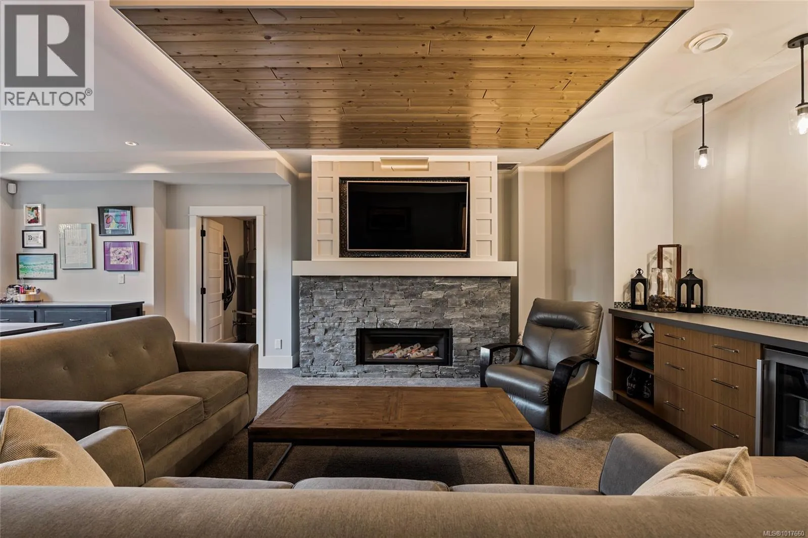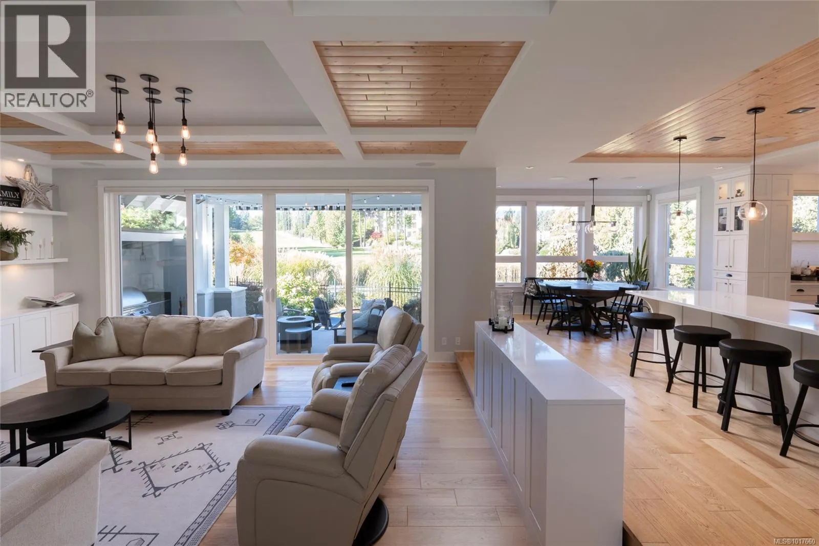 Architecturally crafted and masterfully designed, this exceptional residence commands breathtaking views of the 9th fairway of the Jack Nicklaus Signature Mountain Course. Every detail has been thoughtfully curated, blending timeless sophistication with modern comfort. Expansive picture windows frame the scenic landscape, flooding the interiors with natural light and creating seamless harmony between indoors and out. The open-concept layout is perfect for entertaining, anchored by a gourmet chefâs kitchen featuring premium cabinetry, stone surfaces, professional-grade appliances, a generous walk-in pantry, and island seating for casual dining. The elegant dining area flows effortlessly into a welcoming living room enhanced by a fireplace and custom millworkâideal for quiet evenings or lively gatherings with family and friends. A versatile recreation room, private study, powder room, and well-appointed mudroom with laundry facilities and a pet spa complete the main level. Upstairs, the ownerâs retreat is a sanctuary of relaxation, featuring a sumptuous walk-in closet and a 5-piece spa-inspired ensuite with a luxurious steam shower. The lower level continues to impress with two additional bedrooms, a home theatre, a second study, and a fully equipped fitness studio complete with a rejuvenating sauna and 4-piece bath. Outside, the expansive patio offers an oasis of tranquility, overlooking the manicured grounds of the golf course. Whether youâre enjoying your morning coffee, hosting guests, or soaking in the sunset, this outdoor space provides the perfect backdrop for every occasion. Ideally located - only a short drive to downtown Victoria, the Victoria International Airport, and BC Ferries, this home offers both convenience and exclusivity. Experience the ultimate in refined living, where luxury, leisure, and lifestyle converge in perfect balance. (id:27476)