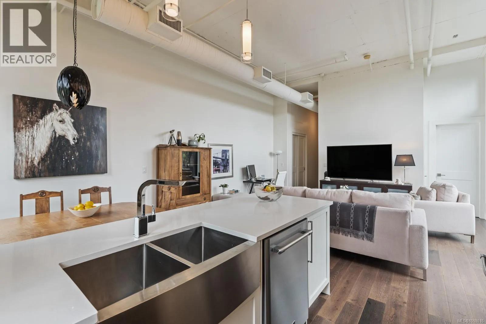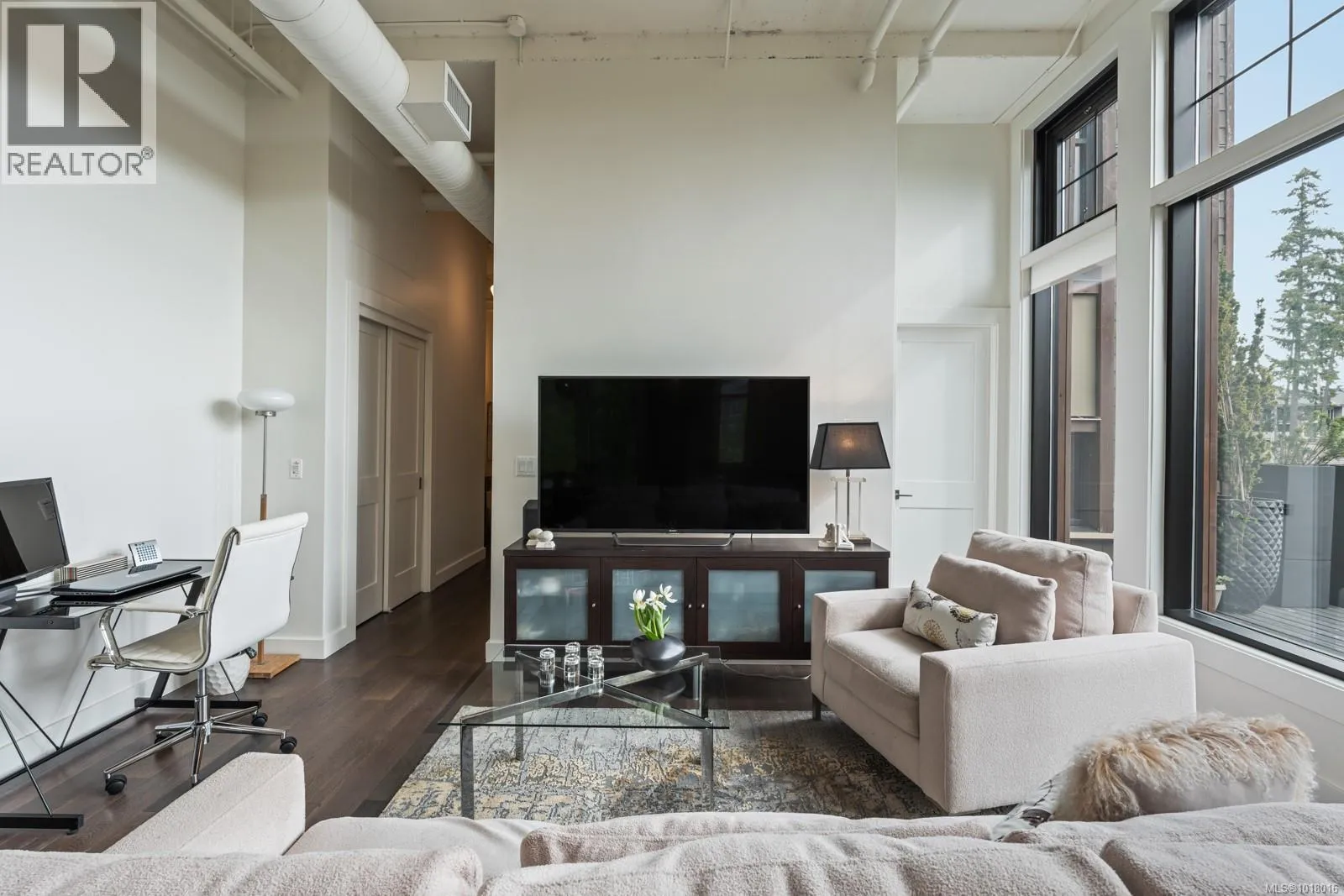Welcome to The Lofts, one of Bear Mountainâs most sought after residences. This spacious & light-filled industrial designed 1-bed, 1-bath home offers 760 sqft of living space and a sweeping 520 sqft patio. The open living space has soaring ceilings, oversized windows and sleek hardwood flooring throughout & has been styled to perfection with no detail or fixture overlooked. The Kitchen features high-end SS appliances w/gas range stove, quartz countertops and island with ample room for storage. Relax and escape to the adjacent living room which seamlessly connects to the massive walk-out patio, ideal for year-round indoor/outdoor entertaining and living. The primary bedroom is cozy & well-thought out, with plenty of storage. You are just steps away from all of the amazing amenities on Bear Mountain, including: world-class golf courses, fitness centre with pool & restaurants/coffee shops. Underground parking and storage included, this residence offers both luxury & practicality. (id:27476)