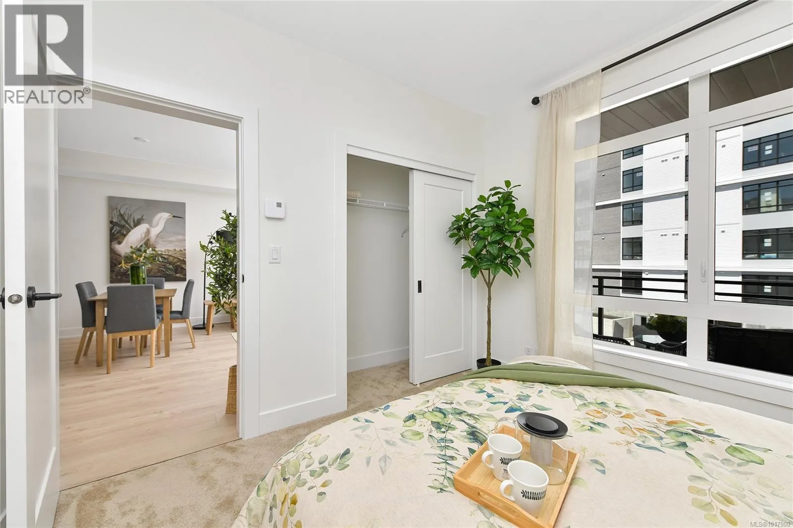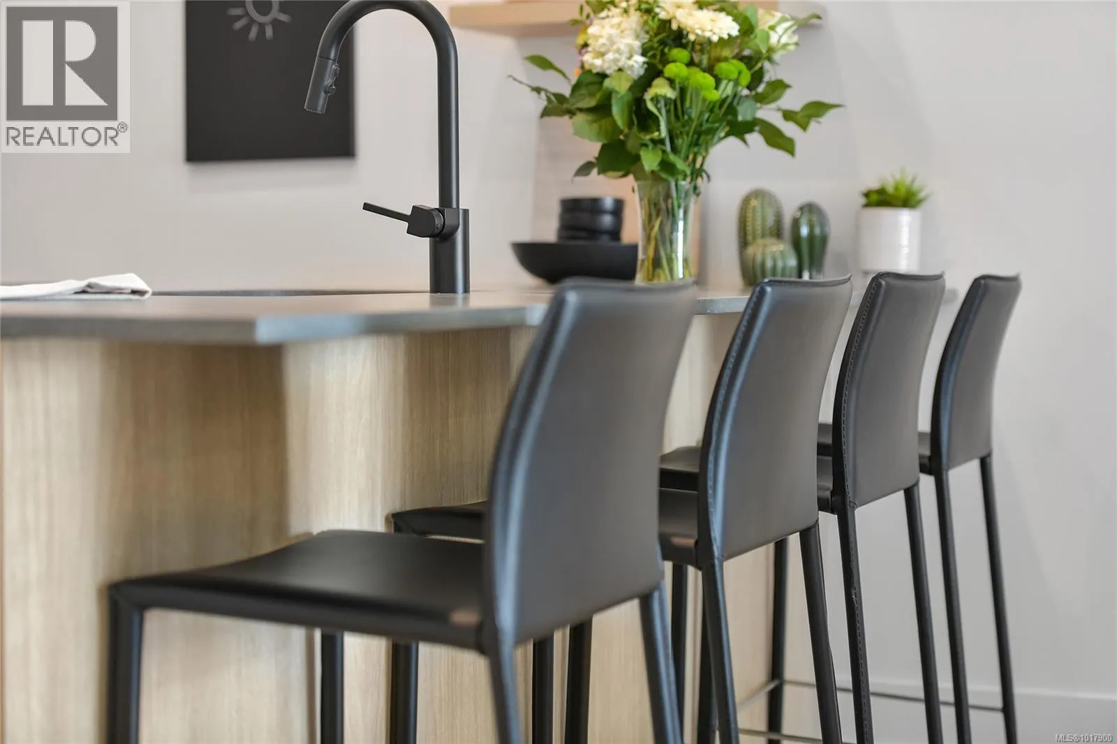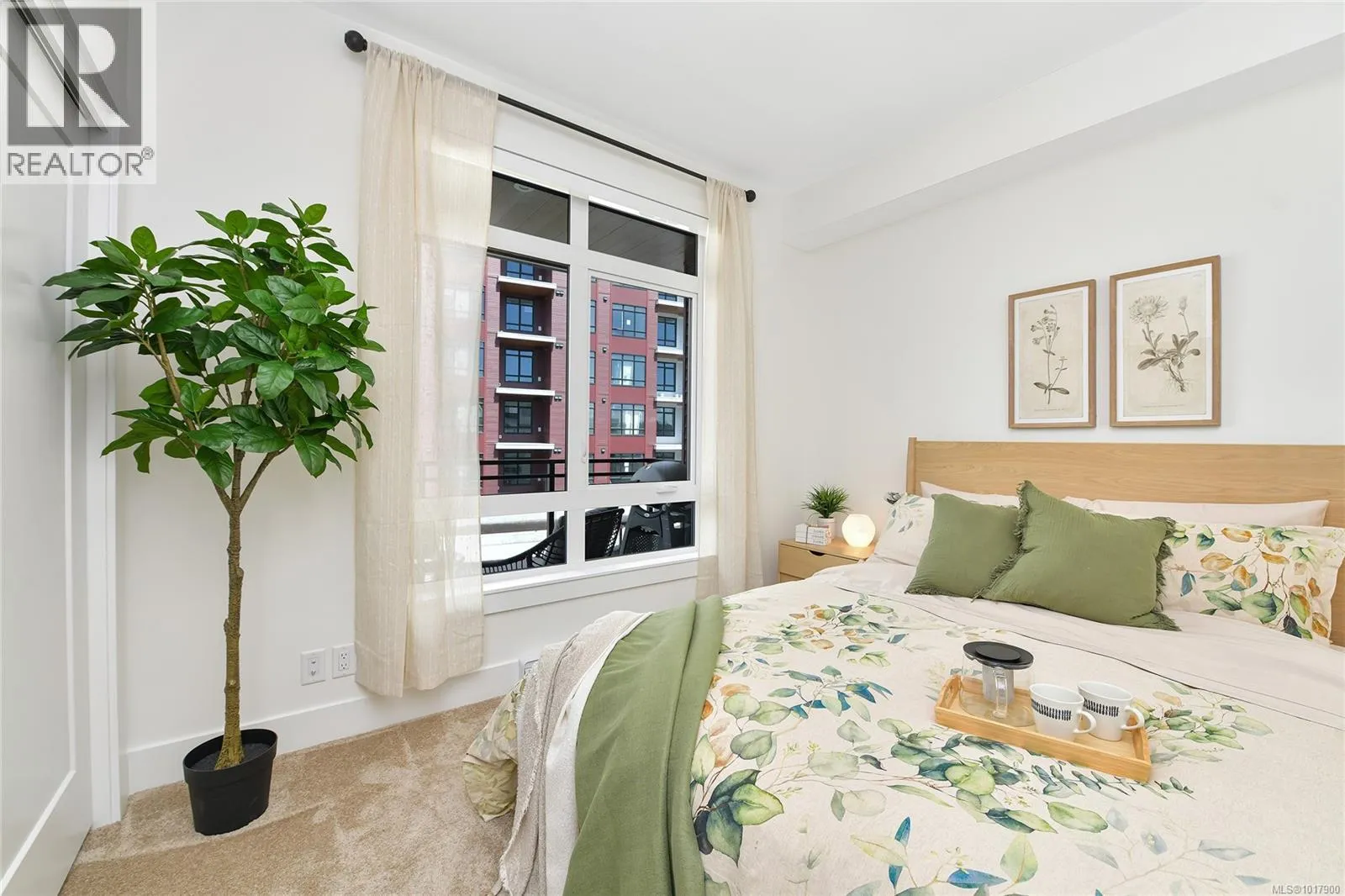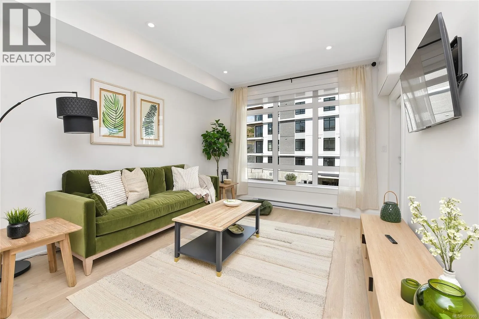 Discover Solaris North, nestled in the vibrant lakeside community of Westhills. This bright and airy one-bedroom + den suite is ideal for entertaining, offering seamless indoor-outdoor living with a private patio overlooking the mountains and valley of Goldstream Parkâa perfect spot to catch breathtaking sunsets. Residents enjoy access to an impressive community courtyard, complete with an outdoor kitchen, two BBQs, dining areas, herb gardens, cozy firepit seating, a putting green, and an outdoor fitness area. Inside, the home features a modern design with quartz countertops, two-tone cabinetry, a kitchen eating bar, stainless steel appliances, and a warm, neutral color scheme that feels inviting and timeless. This pet-friendly building offers thoughtful extras, including a secure parking garage with EV-ready stalls, bike storage, a car wash, and pet wash. Enjoy a lifestyle filled with recreation and natural beauty: take a swim or paddleboard on Langford Lake, hike nearby forested trails, or explore Jordie Lunn Bike Park, Gravity Zone, Mt. Wells, and Parkdale Hill for year-round outdoor adventure. Families will appreciate the walkable access to brand-new elementary, middle, and high schoolsâall part of this master-planned community. And with quick access to Highway #1, commuting or heading out of town for the weekend is a breeze. Don't miss your chance to own at Solaris North. Secure your home with just a $25,000 deposit. Visit our show suites at 205-1110 Samar Crescent, open daily from 12â4 PM. (id:27476)
