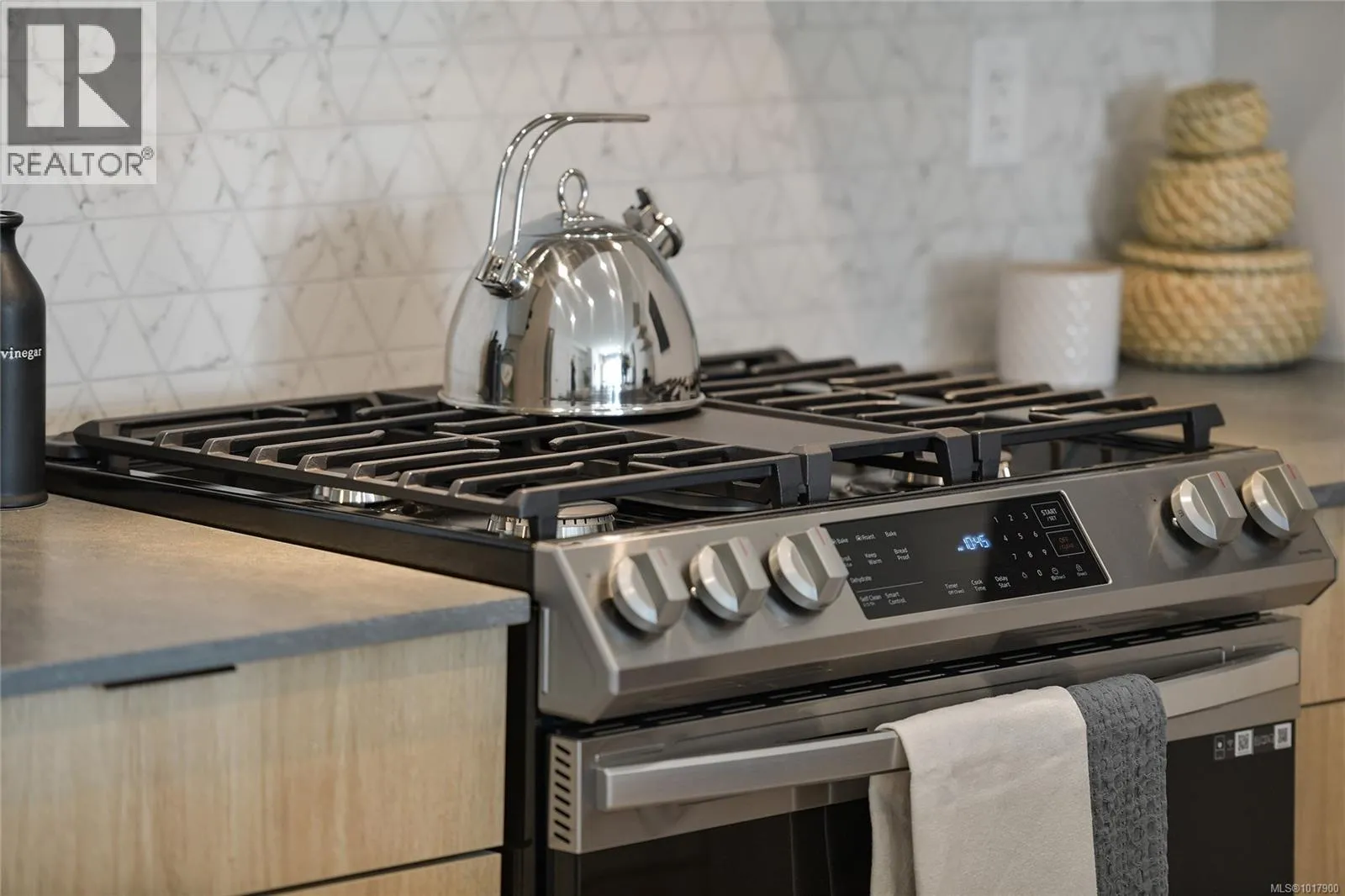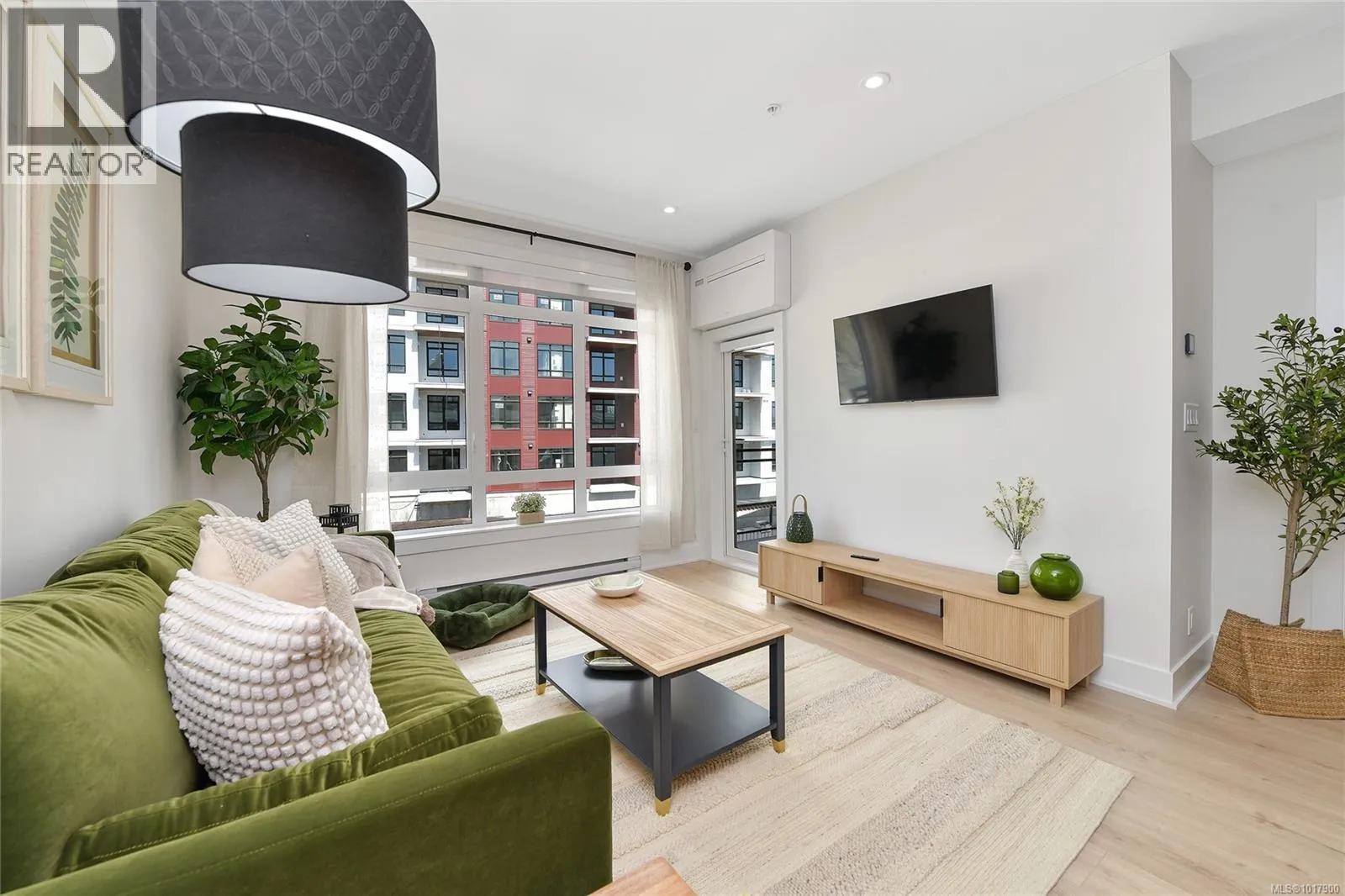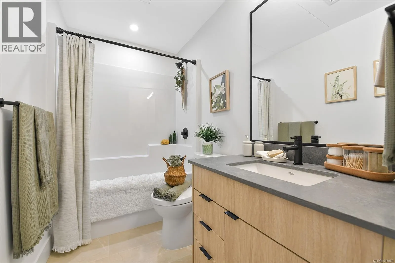 Discover Solaris North, nestled in the vibrant lakeside community of Westhills. This bright and airy one-bedroom + den suite is ideal for entertaining, offering seamless indoor-outdoor living with a private patio overlooking the mountains and valley of Goldstream Parkâa perfect spot to catch breathtaking sunsets. Residents enjoy access to an impressive community courtyard, complete with an outdoor kitchen, two BBQs, dining areas, herb gardens, cozy firepit seating, a putting green, and an outdoor fitness area. Inside, the home features a modern design with quartz countertops, two-tone cabinetry, a kitchen eating bar, stainless steel appliances, and a warm, neutral color scheme that feels inviting and timeless. This pet-friendly building offers thoughtful extras, including a secure parking garage with EV-ready stalls, bike storage, a car wash, and pet wash. Enjoy a lifestyle filled with recreation and natural beauty: take a swim or paddleboard on Langford Lake, hike nearby forested trails, or explore Jordie Lunn Bike Park, Gravity Zone, Mt. Wells, and Parkdale Hill for year-round outdoor adventure. Families will appreciate the walkable access to brand-new elementary, middle, and high schoolsâall part of this master-planned community. And with quick access to Highway #1, commuting or heading out of town for the weekend is a breeze. Don't miss your chance to own at Solaris North. Secure your home with just a $25,000 deposit. Visit our show suites at 205-1110 Samar Crescent, open daily from 12â4 PM. (id:27476)