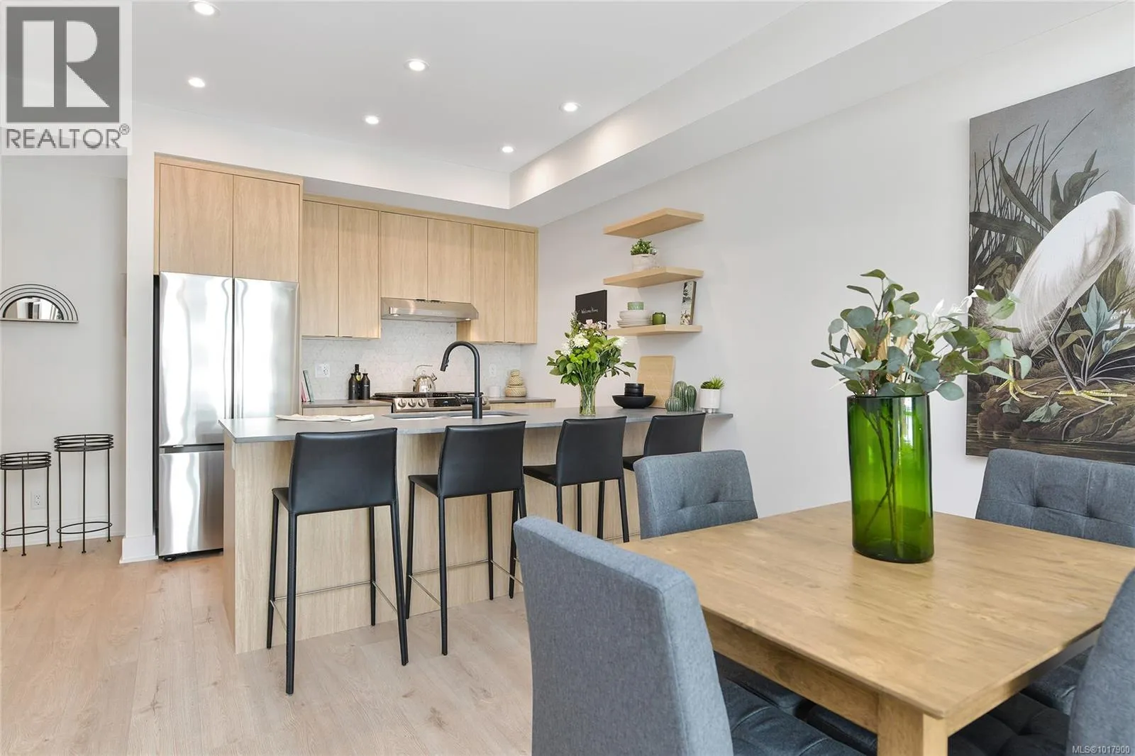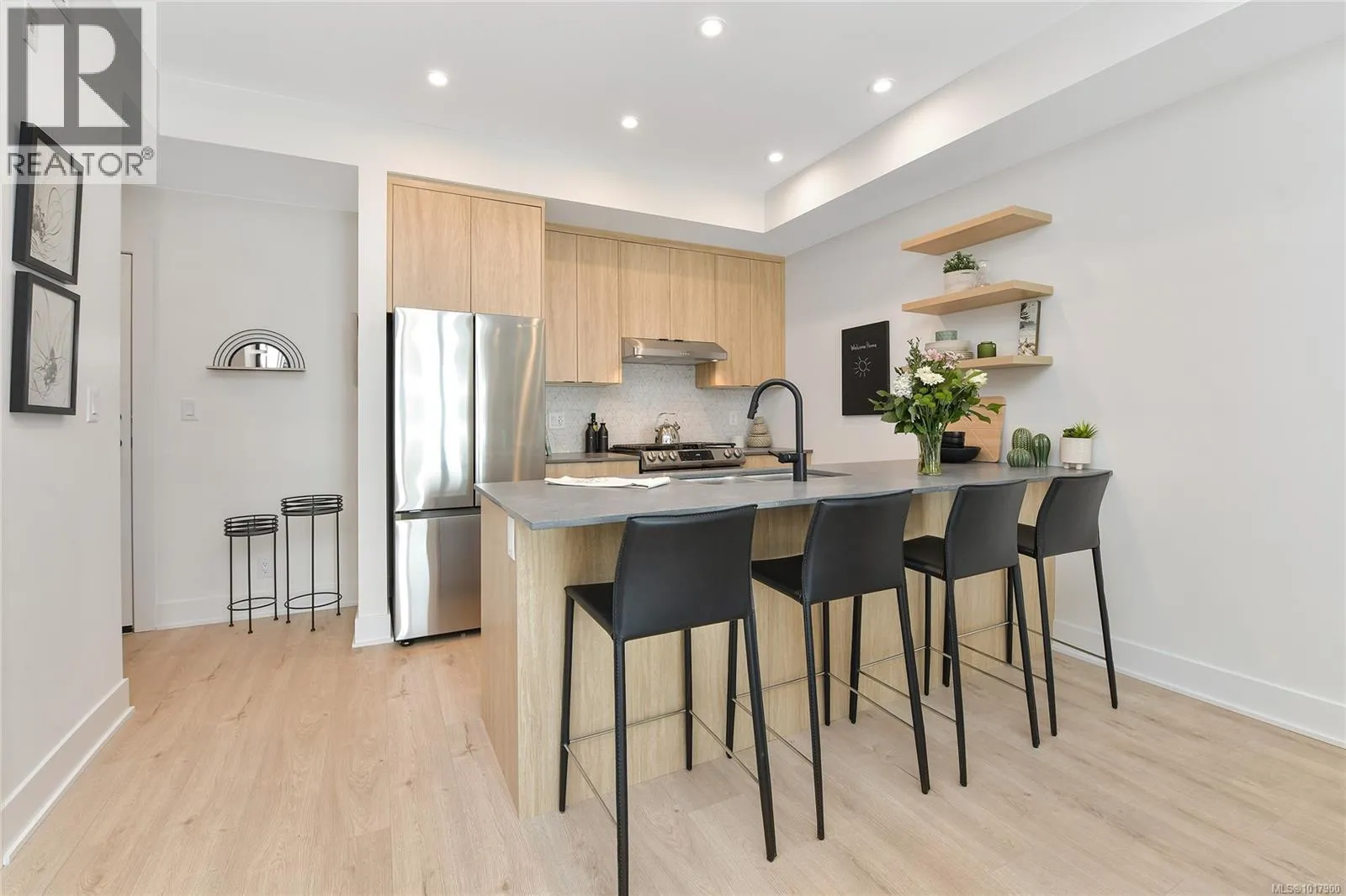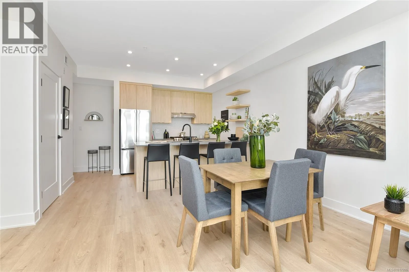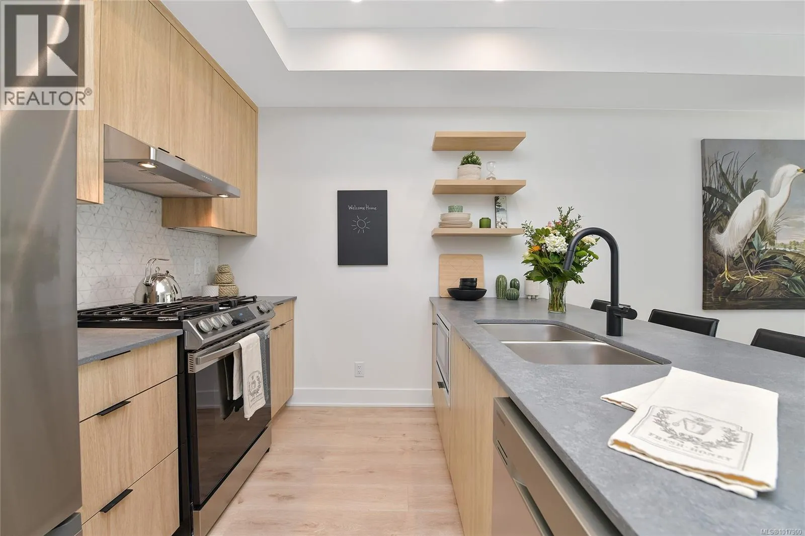 Discover Solaris North, nestled in the vibrant lakeside community of Westhills. This bright and airy one-bedroom + den suite is ideal for entertaining, offering seamless indoor-outdoor living with a private patio overlooking the mountains and valley of Goldstream Parkâa perfect spot to catch breathtaking sunsets. Residents enjoy access to an impressive community courtyard, complete with an outdoor kitchen, two BBQs, dining areas, herb gardens, cozy firepit seating, a putting green, and an outdoor fitness area. Inside, the home features a modern design with quartz countertops, two-tone cabinetry, a kitchen eating bar, stainless steel appliances, and a warm, neutral color scheme that feels inviting and timeless. This pet-friendly building offers thoughtful extras, including a secure parking garage with EV-ready stalls, bike storage, a car wash, and pet wash. Enjoy a lifestyle filled with recreation and natural beauty: take a swim or paddleboard on Langford Lake, hike nearby forested trails, or explore Jordie Lunn Bike Park, Gravity Zone, Mt. Wells, and Parkdale Hill for year-round outdoor adventure. Families will appreciate the walkable access to brand-new elementary, middle, and high schoolsâall part of this master-planned community. And with quick access to Highway #1, commuting or heading out of town for the weekend is a breeze. Don't miss your chance to own at Solaris North. Secure your home with just a $25,000 deposit. Visit our show suites at 205-1110 Samar Crescent, open daily from 12â4 PM. (id:27476)