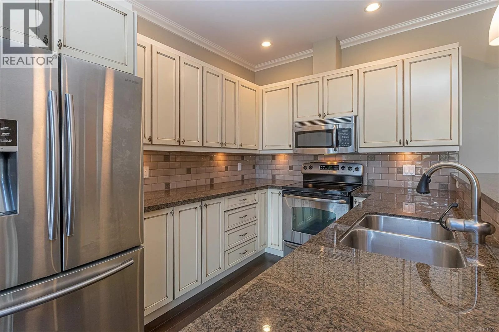 Premiere Location, Premiere Building, Premiere Penthouse! Welcome to the Metro, centrally located 2 Bed & 2-Full Bath Penthouse next to the landmark Fountain in downtown Langford! This gorgeous home offers over 1,030 sqft of bright, open concept living with HIGH Ceilings! Turn key unit features wood floors throughout, a chefs kitchen complete with both a sit up bar & dining space. The barrel vaulted living room comes with a cozy fireplace and sliding door out to the deck to enjoy the spectacular views over to Mill Hill, downtown Langford & Bear Mountain! The primary bedroom presents 2 double closets plus a stunning tiled 4-piece ensuite w/ 6-ft soaker tub. The 2nd bedroom boasts a window bench, ample closet. Main 3-piece bath with a large shower. Complete with a walk in laundry room, spacious underground secure parking stall and a large storage locker. Just steps from groceries, cafes, restaurants, library, new Royal Roads University, recreation, bus routes, this one has it all! Email mikko@sutton.com for more info. (id:27476)