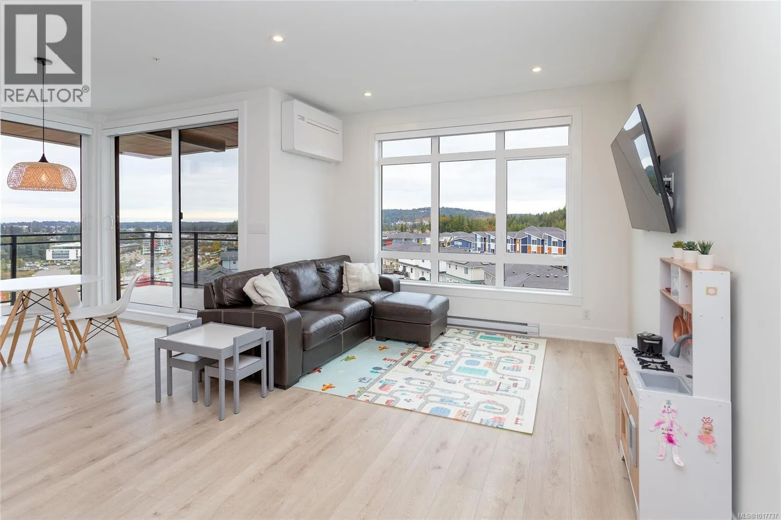Welcome to Solaris at Westhills, a Built Green Certified community blending sustainability with modern elegance. This well-appointed 2-bedroom plus den, 2-bath condo features 9â ceilings and lake views. The gourmet kitchen includes gas appliances, island, pantry, cabinetry, stone counters, tiled backsplash, and matte black hardware. The primary suite has a walk-in closet with custom shelving; the den suits office or guest room. Walk-in laundry room with full-size washer and dryer. This smart home provides integrated control for climate, lighting, and security, plus A/C and baseboard heat. Secure building with visitor access. EV-ready stall in a gated parkade, plus car wash, bike/locker storage, and pet wash. Landscaped courtyard with outdoor kitchen, dining areas, seating, and gas firepits. Surrounded by parks, trails, and urban amenitiesâshopping, dining, movies, cafés, more. Call now to book a viewing! (id:27476)