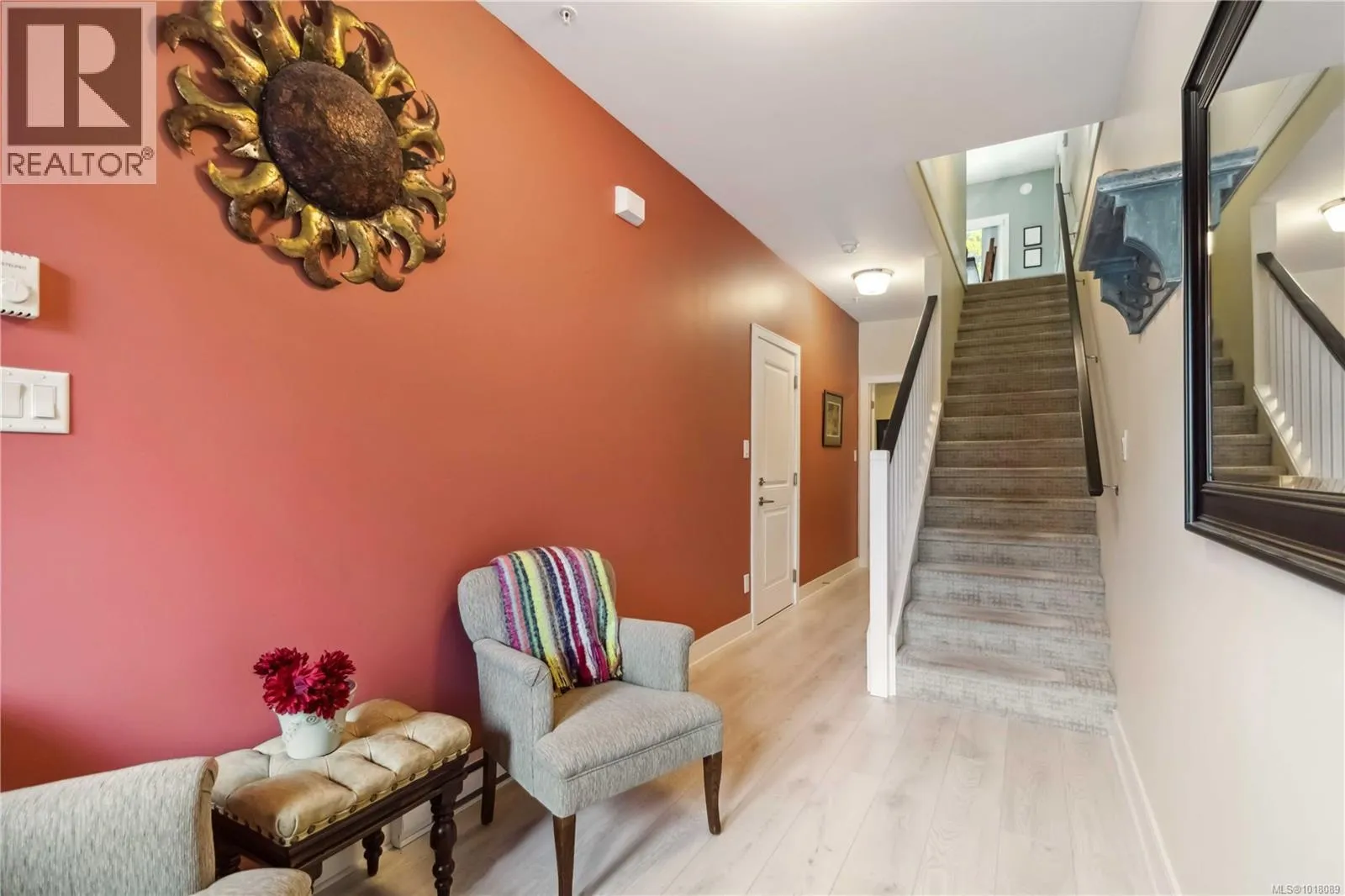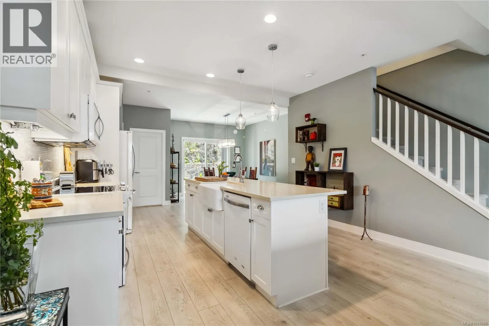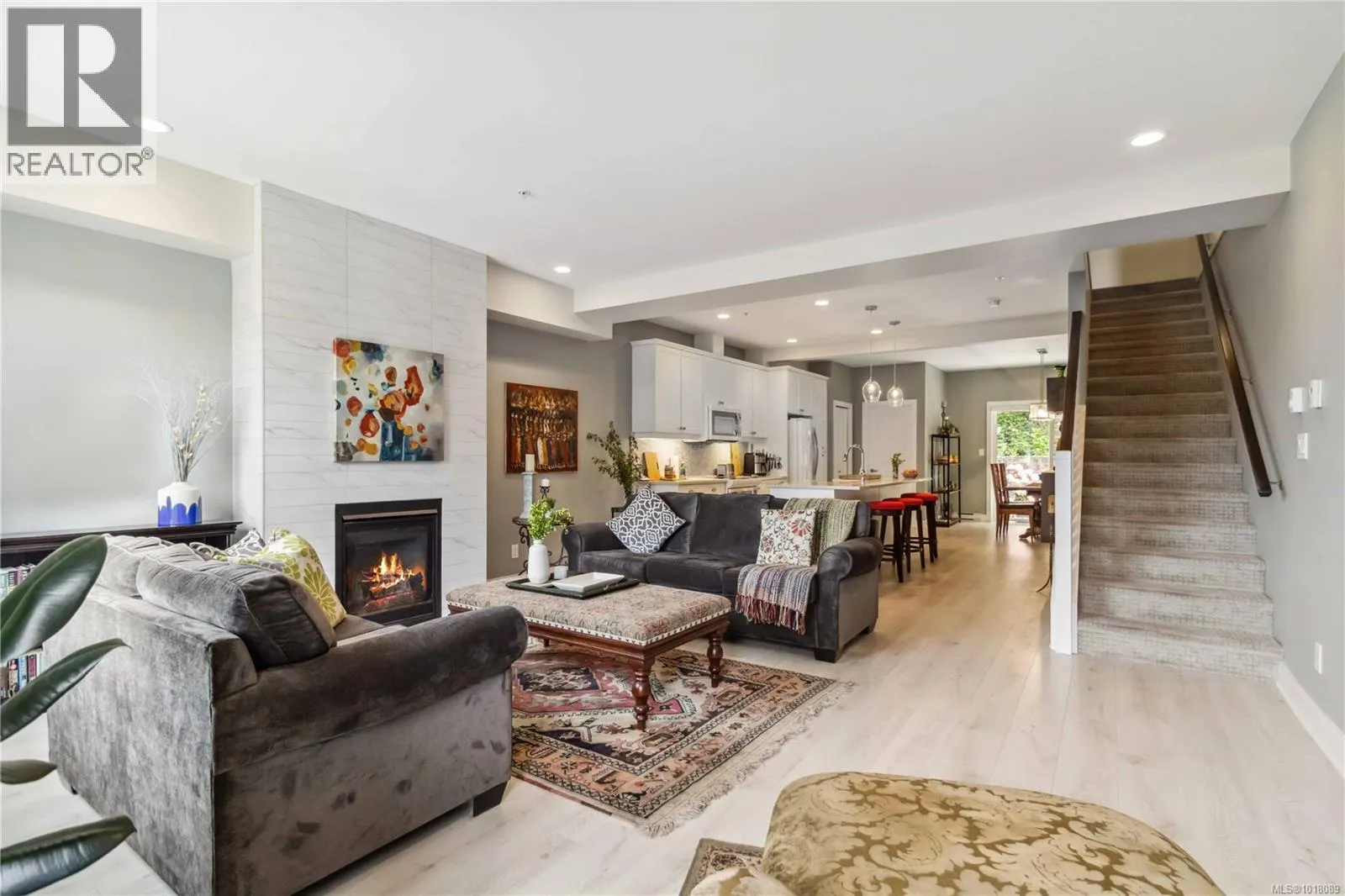 Welcome to Hawthorne Townhomes at Katieâs Pond, a charming 20-unit complex on a quiet no-through road, surrounded on three sides by parkland. The subdivision features Katieâs Pond, a dog-friendly area with 450 metres of scenic trails circling the pond. The exterior has been recently repainted and strata fees are just $250/month. This bright, south-facing home offers natural light throughout, with a beautiful kitchen featuring quartz counters, 9' ceilings, and high-gloss cabinetry. The dining area opens to a private patio for easy BBQing, and the spacious living room includes a cozy gas fireplace. Upstairs are three bedrooms, including a primary with full ensuite and convenient laundry. The lower level has a large flex room with a 3-piece bathâideal as a family room or fourth bedroom. There is a single car garage, plus room for two cars in the driveway. Located just off Happy Valley Road, this 4 bed, 4 bath townhome offers comfort, style, and easy access to nature. (id:27476)