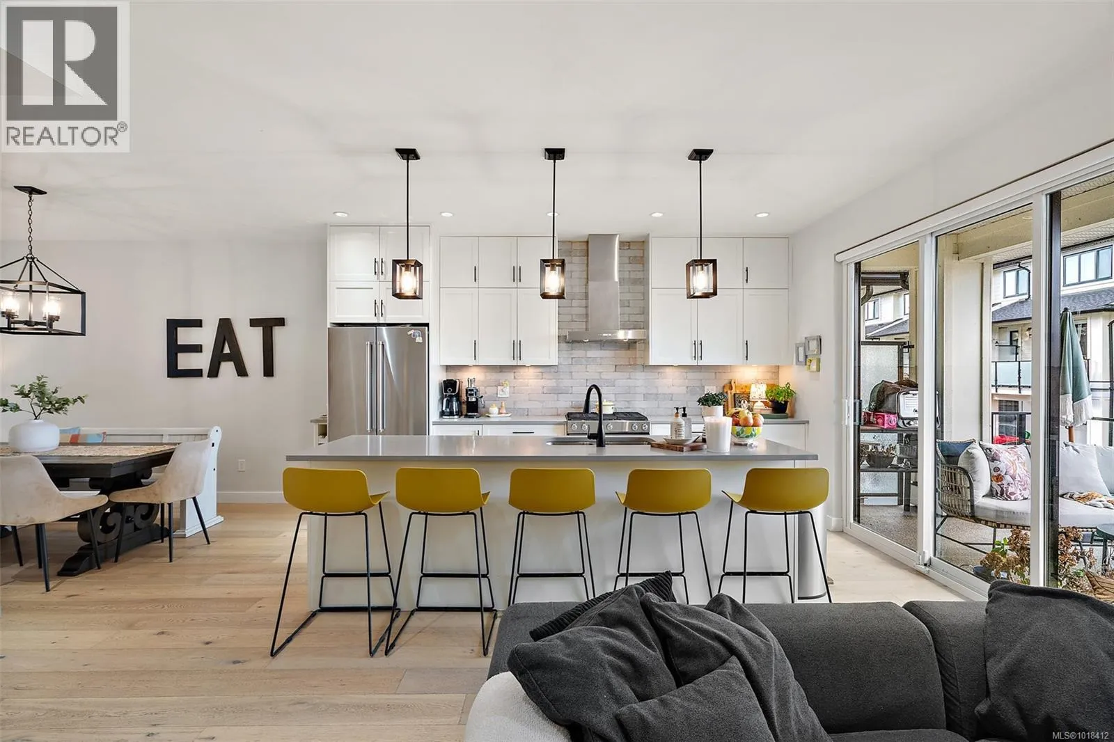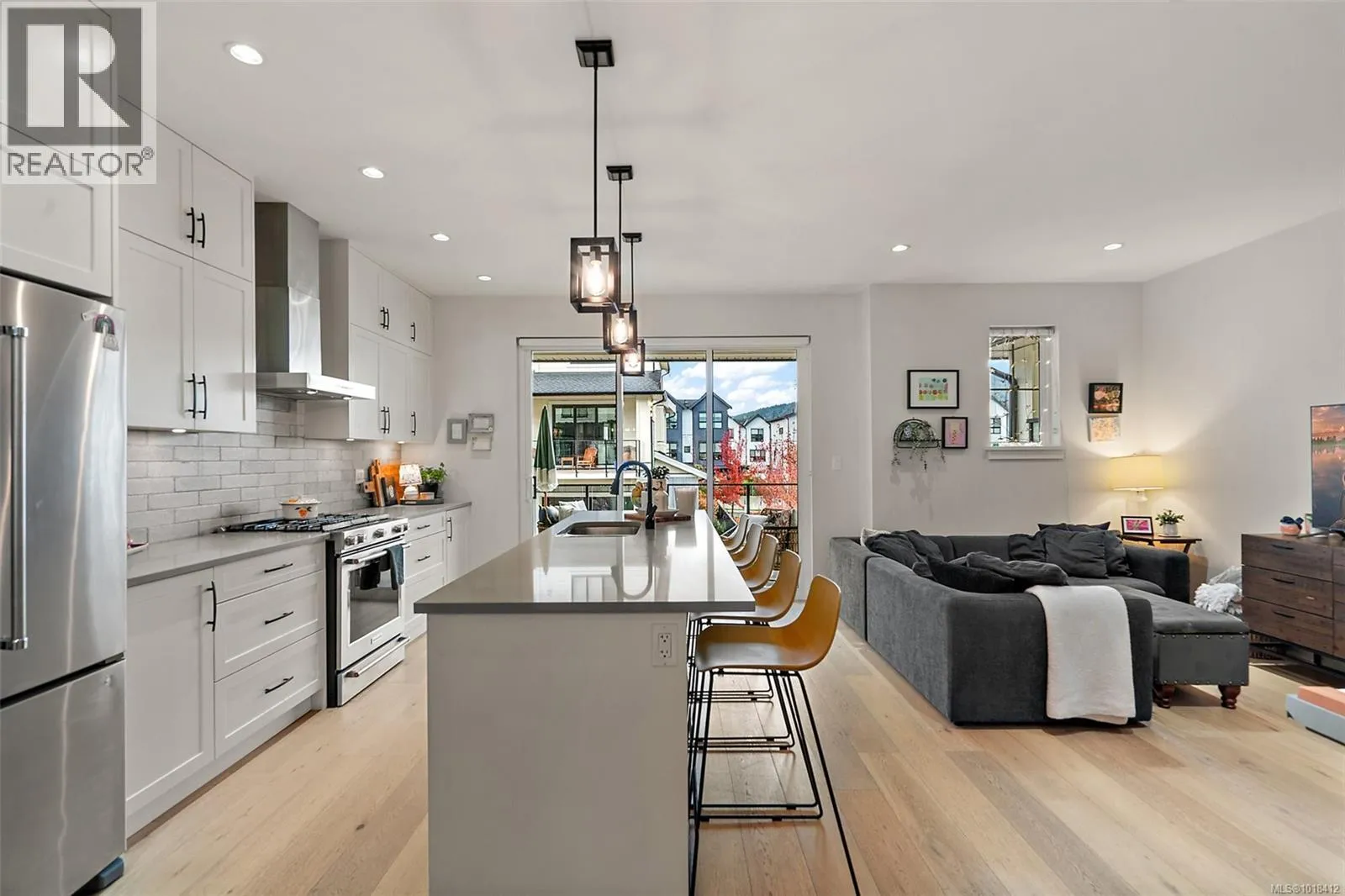 OPEN SAT NOV 22nd 1-2:30. You are home! This community is perfectly situated in the heart of Langford near beautiful Langford Lake. This 4 bed 4 bath Brownstone is where modern design and West Coast comfort come together. These thoughtfully designed homes feature high-end finishes such as polished quartz countertops, engineered hardwood flooring, elegant designer lighting, and spa-inspired bathrooms with glass-enclosed showers and custom vanities. The gourmet kitchens are equipped with premium stainless steel appliances, gas ranges, and built-in gas hookups, ideal for either a BBQ or firepit. Expansive windows invite the natural light which highlights the open-concept living spaces that balance style and functionality. Enjoy the convenience of the attached garage, private backyard patio, and energy-efficient systems throughout. With minutes to shopping, dining, and recreation this home is everything you could want and more. (id:27476)