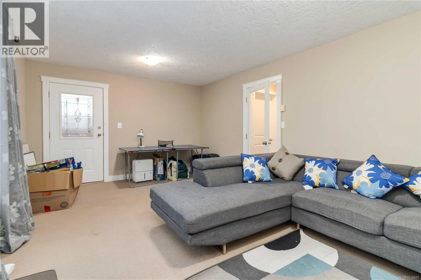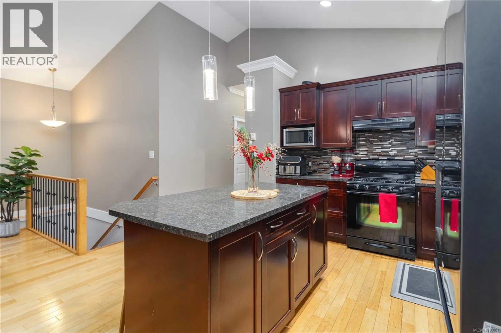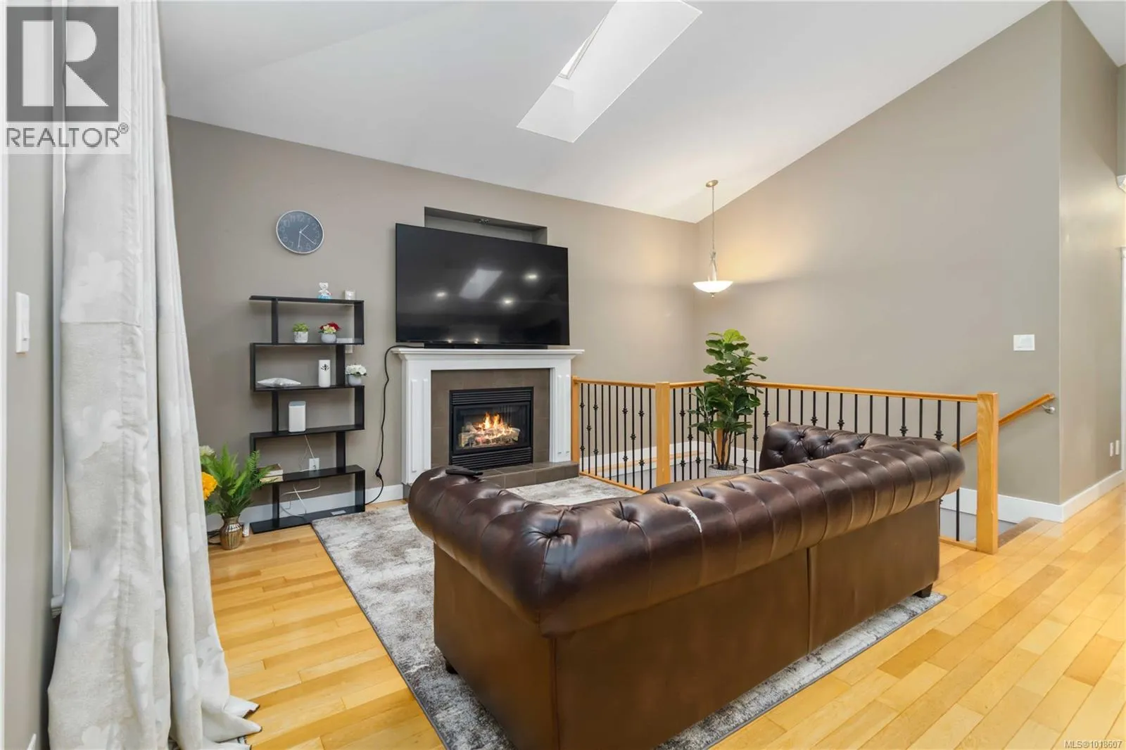 VREB MLS# 1018607. The perfect family home in sought-after Citation Village! 5 beds & 3 baths over 2 levels with open-concept living, vaulted 13-ft ceilings & cozy gas fireplace. Gourmet kitchen w/gas range, new fridge, new dryer, new washing machine & backsplash, plus island for family gatherings. Beautiful hardwood floors, plush carpets & fully finished walkout basement ideal for guests or teens. Private fenced yard, sunny deck & sprinklers. New water heater (2021). Family-friendly complex with playground; walk to schools, Costco, shops & restaurants. Close to the new Gateway Road Secondary (approved 2025) & Langford's vibrant growth corridor. Low strata includes water, insurance & sewer. Contact your realtor to book a viewing! Weekdays before 4 PM, weekends before 5 PM â donât miss out. (id:27476)