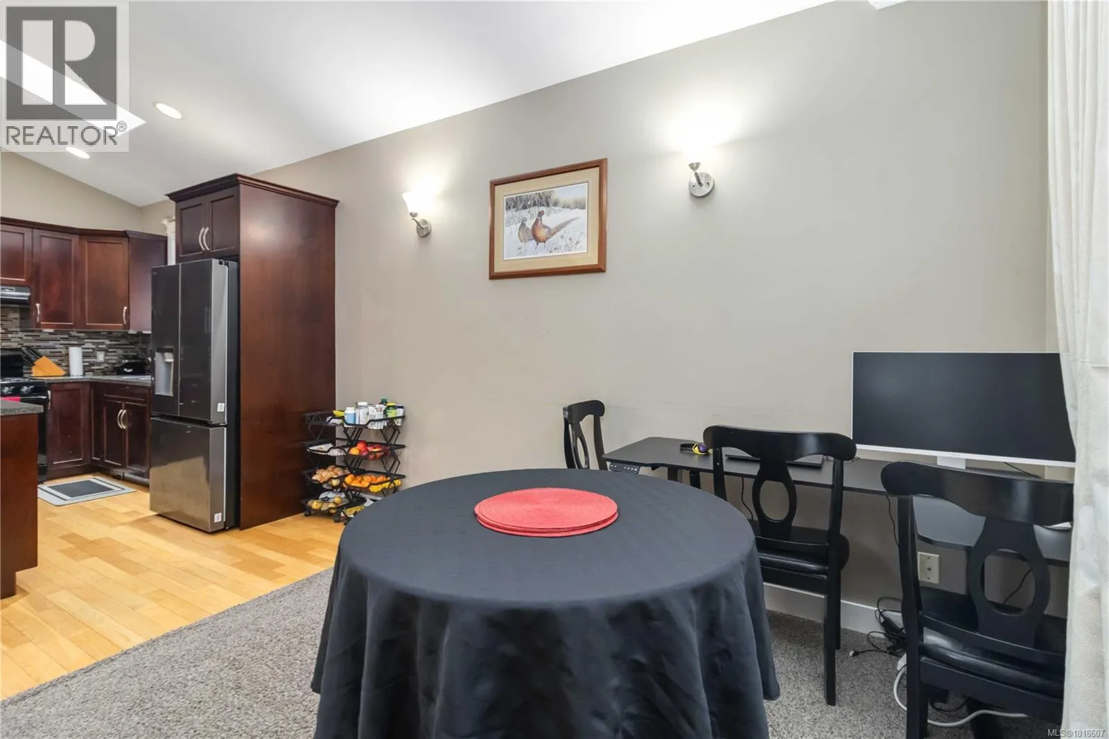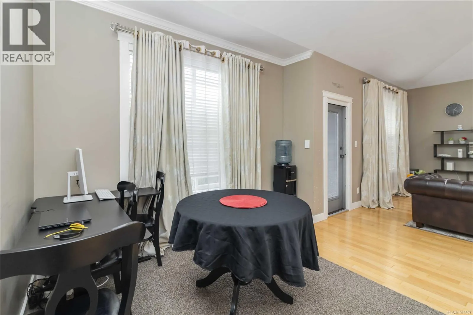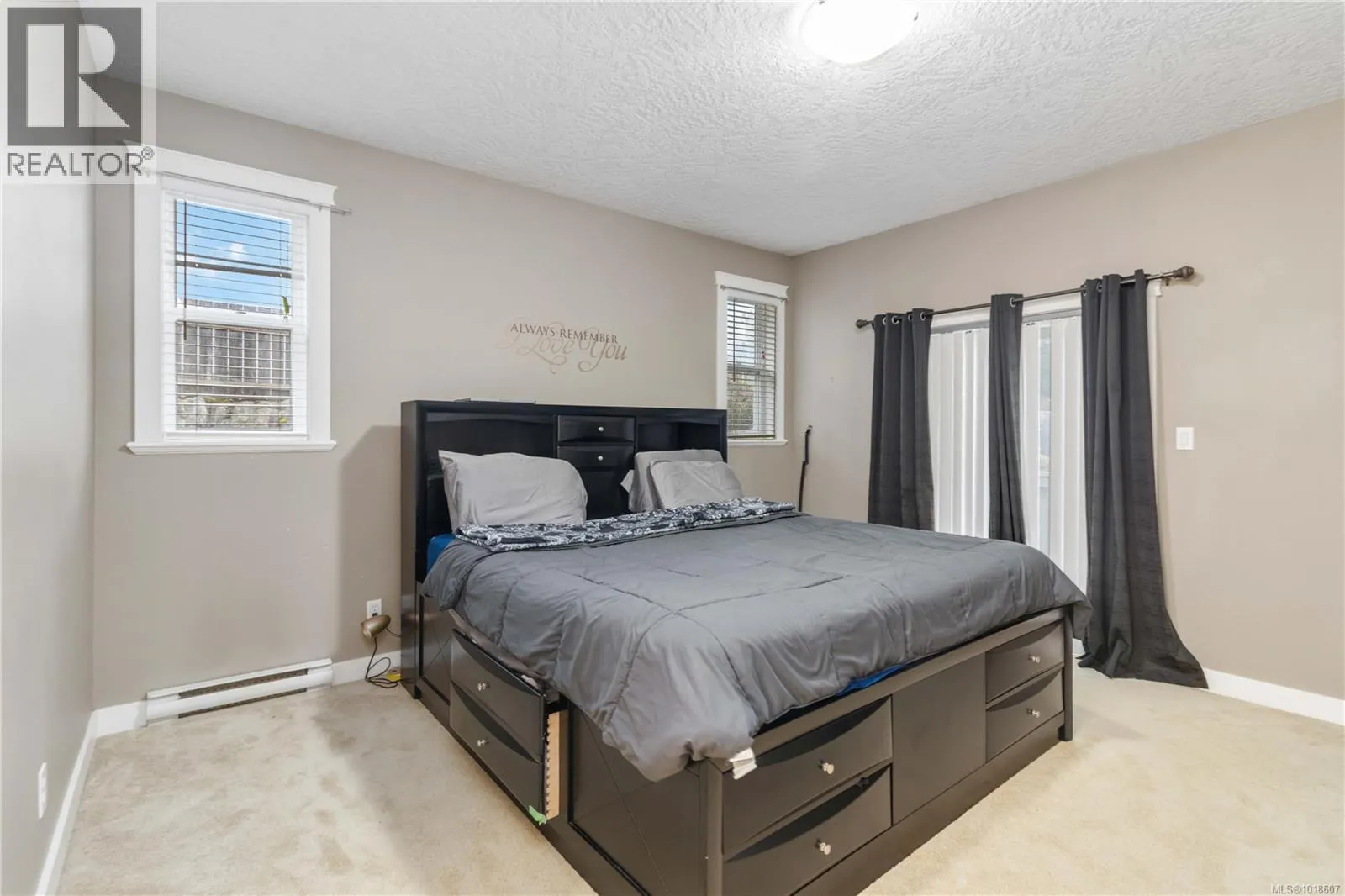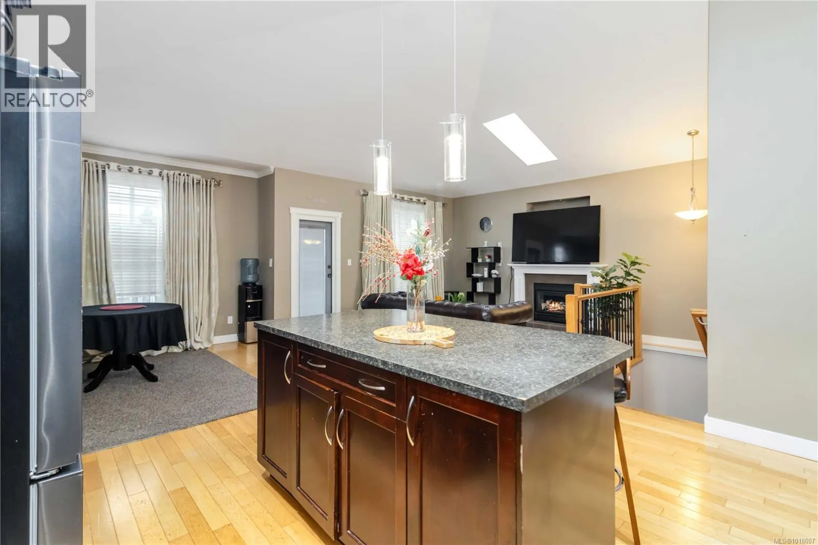 VREB MLS# 1018607. The perfect family home in sought-after Citation Village! 5 beds & 3 baths over 2 levels with open-concept living, vaulted 13-ft ceilings & cozy gas fireplace. Gourmet kitchen w/gas range, new fridge, new dryer, new washing machine & backsplash, plus island for family gatherings. Beautiful hardwood floors, plush carpets & fully finished walkout basement ideal for guests or teens. Private fenced yard, sunny deck & sprinklers. New water heater (2021). Family-friendly complex with playground; walk to schools, Costco, shops & restaurants. Close to the new Gateway Road Secondary (approved 2025) & Langford's vibrant growth corridor. Low strata includes water, insurance & sewer. Contact your realtor to book a viewing! Weekdays before 4 PM, weekends before 5 PM â donât miss out. (id:27476)