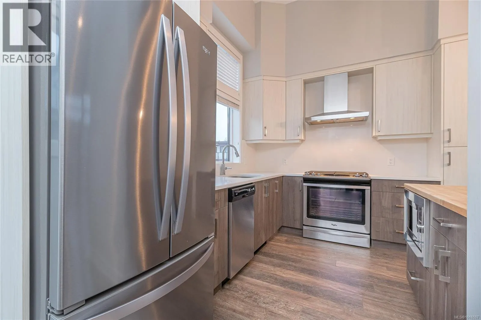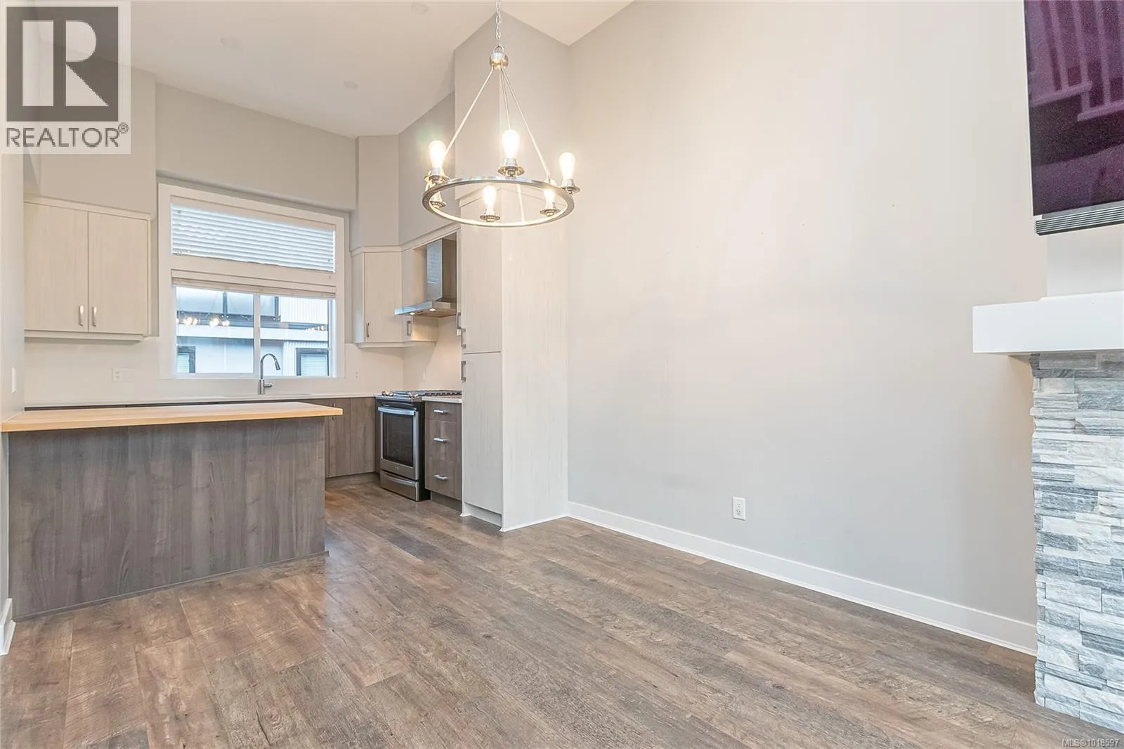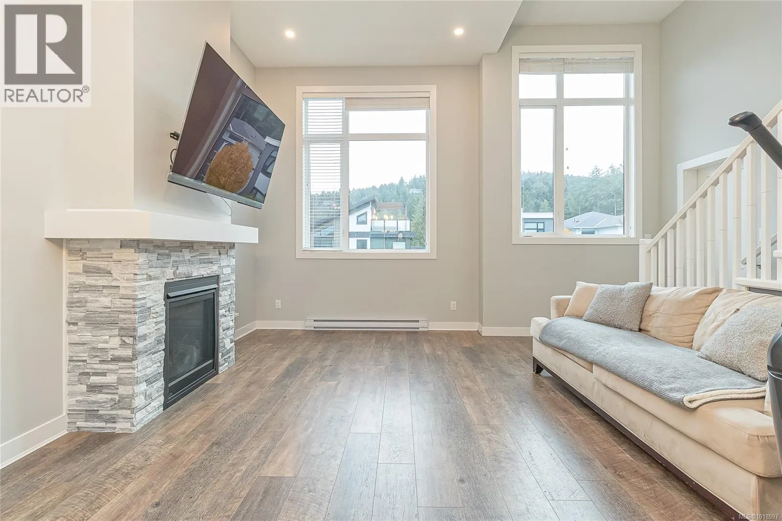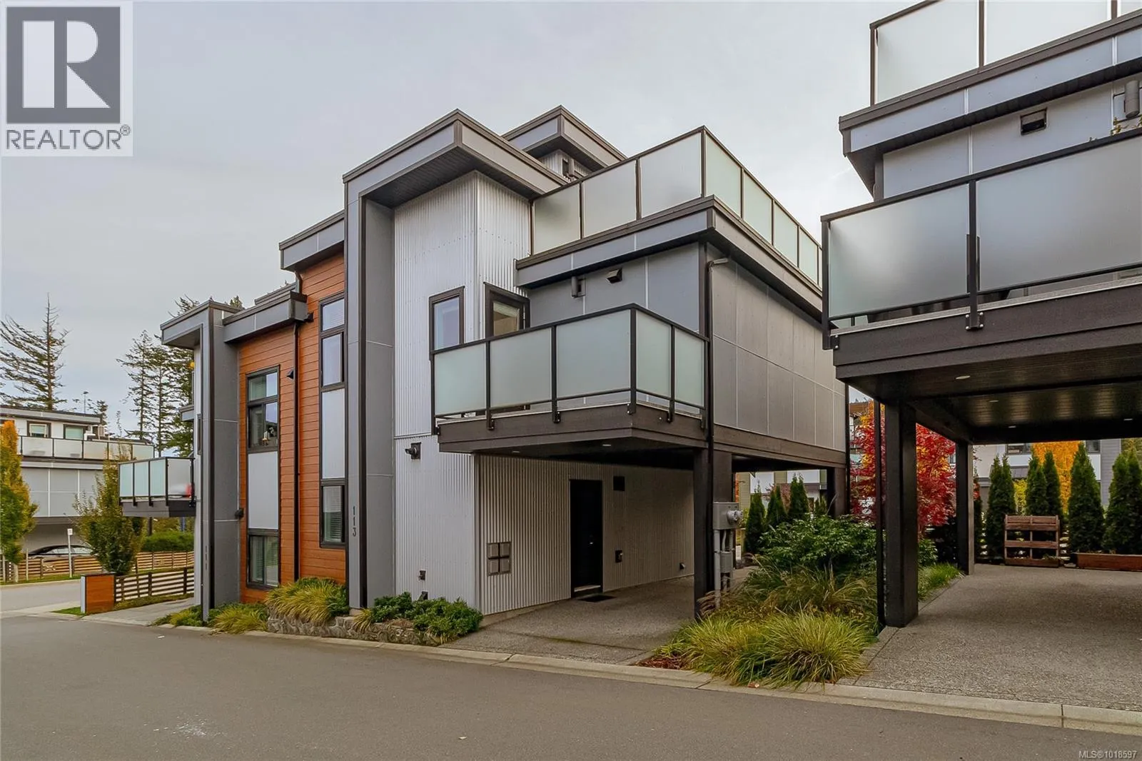 Step into contemporary elegance with this beautifully appointed 3-bedroom, 2-bath modern townhome â a perfect blend of design, comfort, and functionality. The open-concept layout is filled with natural light, featuring a sleek fireplace as the centerpiece of the living area. 14' vaulted ceilings, quartz counters in kitchen, quality laminate flooring, natural gas stove and tankless hot water heater. Primary bedroom has ensuite and large walk-in closet. Enjoy seamless indoor-outdoor living with a private balcony and a spacious 267 sq/ft roof top deck with electrical, water and gas hookup, perfect for morning coffee or evening entertaining with sweeping forest and mountain views. The large carport offers convenient covered parking for 2 vehicles, and additional storage. Bonus 4'10'' full crawlspace for storage. Thoughtfully designed with quality finishes throughout, this home delivers effortless modern living in a desirable location close to shopping, parks, and vibrant local amenities. (id:27476)