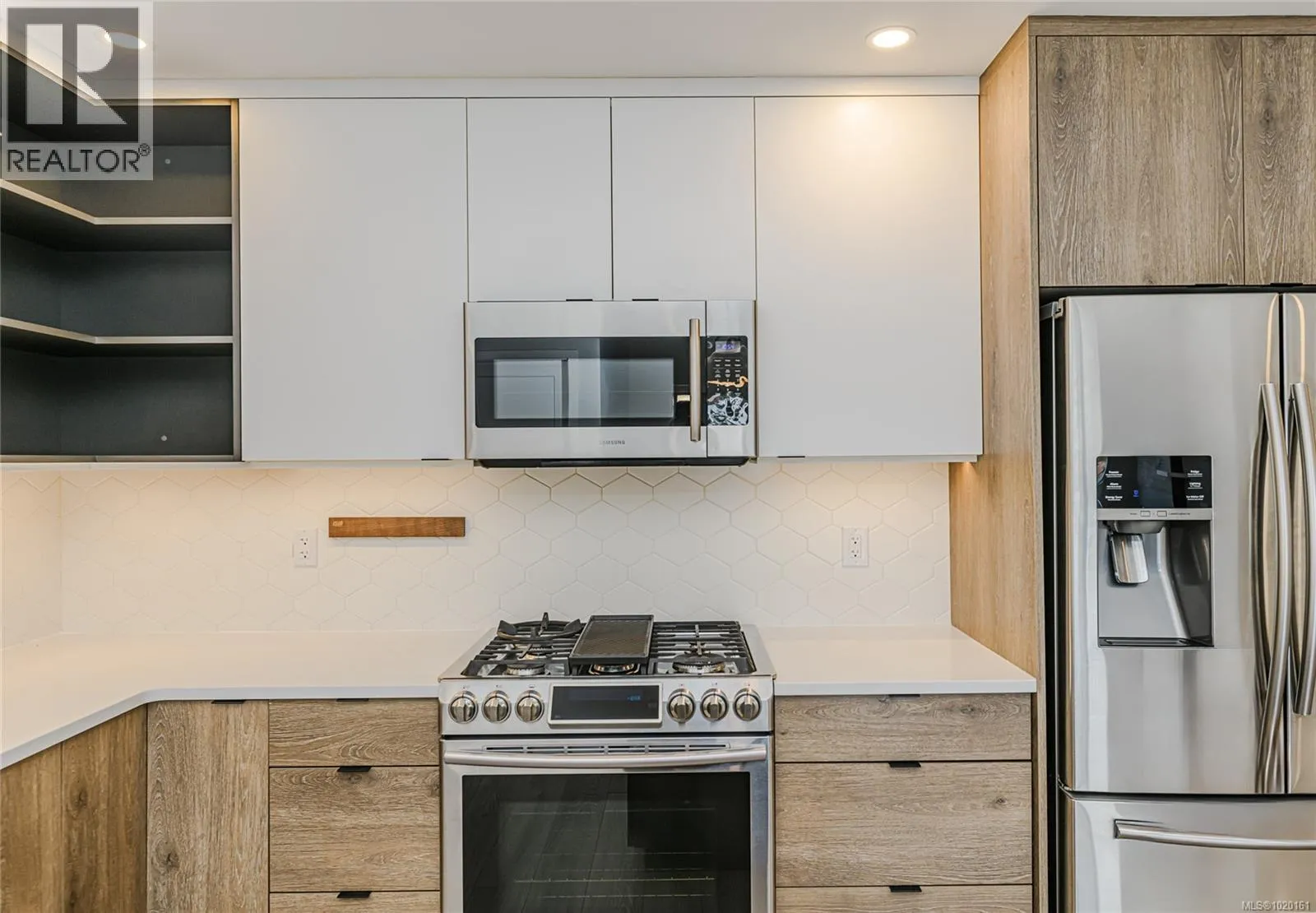 Welcome to Triple Crown Residence One! This bright and spacious top-floor 2-bedroom, 2-bathroom condo offers modern living at its finest. Featuring an open-concept layout with 9â ceilings, a stylish kitchen with quartz countertops and stainless steel appliances, and a large island perfect for entertaining. Enjoy morning coffee or evening sunsets from your private balcony with mountain views. The primary bedroom includes a walk-through closet and a spa-inspired ensuite. Additional highlights include in-suite laundry, air conditioning, and two secure underground parking spaces plus a storage locker. This well-managed, pet- and rental-friendly building offers excellent amenities, including a fitness centre and bike storage, all within walking distance to shops, restaurants, schools, and recreation. Easy access to the highway makes commuting a breeze. Experience modern comfort and convenience in one of Langfordâs most sought-after communities â Triple Crown. Quick close possible. (id:27476)