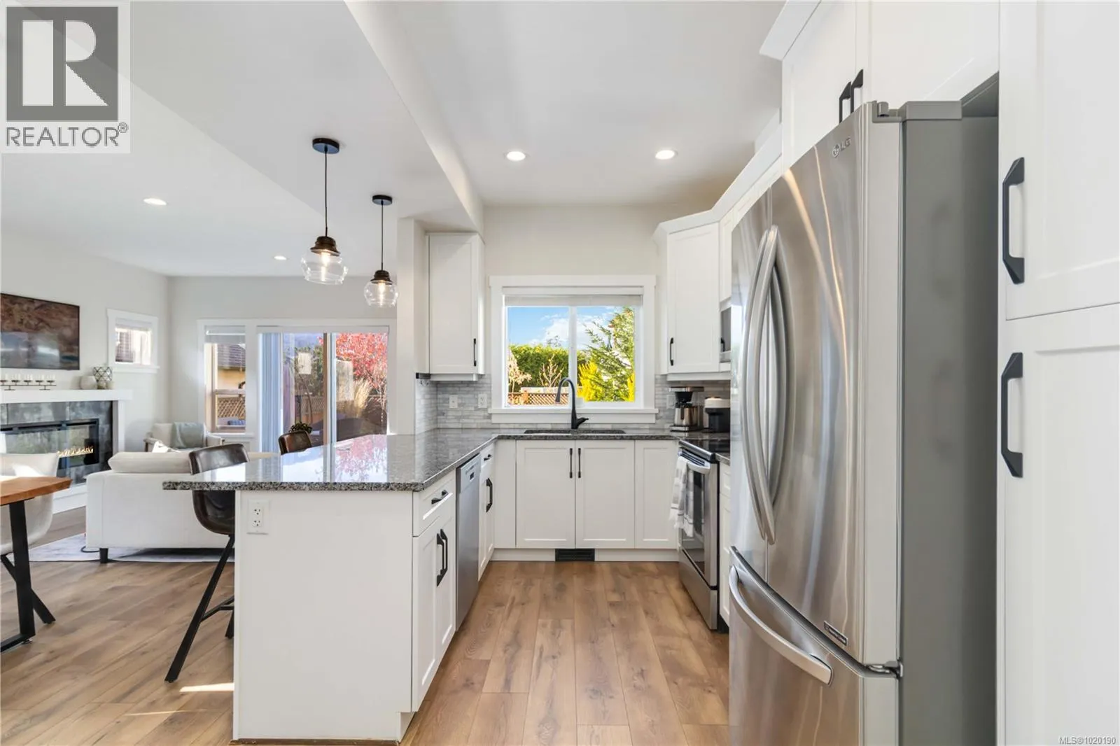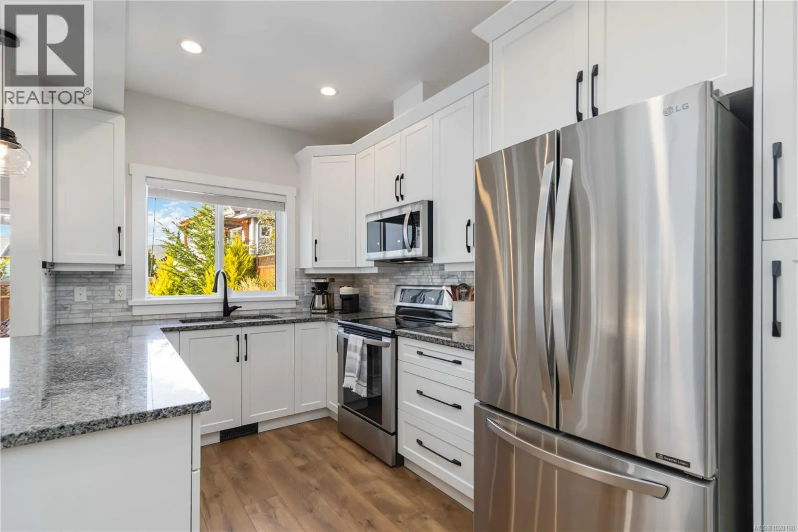 Impeccably maintained Westhills gem! This beautifully updated 3 bedroom, 3 bathroom family home shows pride of ownership throughout. The current owners have meticulously cared for every detail. Freshly painted interior, professionally painted exterior, updated kitchen cabinets and stunning new laminate floors. The bright open-concept main level features a stylish kitchen with granite counters, stainless appliances, dining area and an eating bar. Step outside to a new large deck overlooking a tranquil, landscaped yard with flowers, trees, and great west facing sun exposure. Upstairs offers a spacious primary bedroom with walk-in closet and ensuite, plus 2 additional large bedrooms as well as a laundry room. Double car garage, 2 storage sheds, fenced yard, and a huge 650 Sq Ft crawlspace for extra storage. Heat pump with ducting throughout the home, keeping you warm in the winter and cool in the summer. Truly a turnkey home, move in and enjoy! (id:27476)