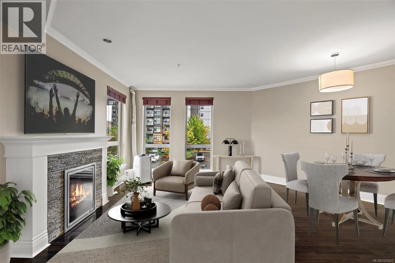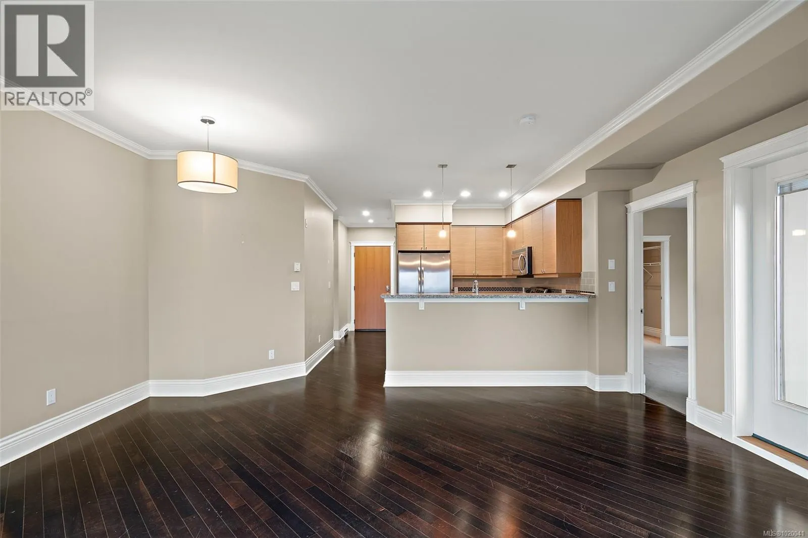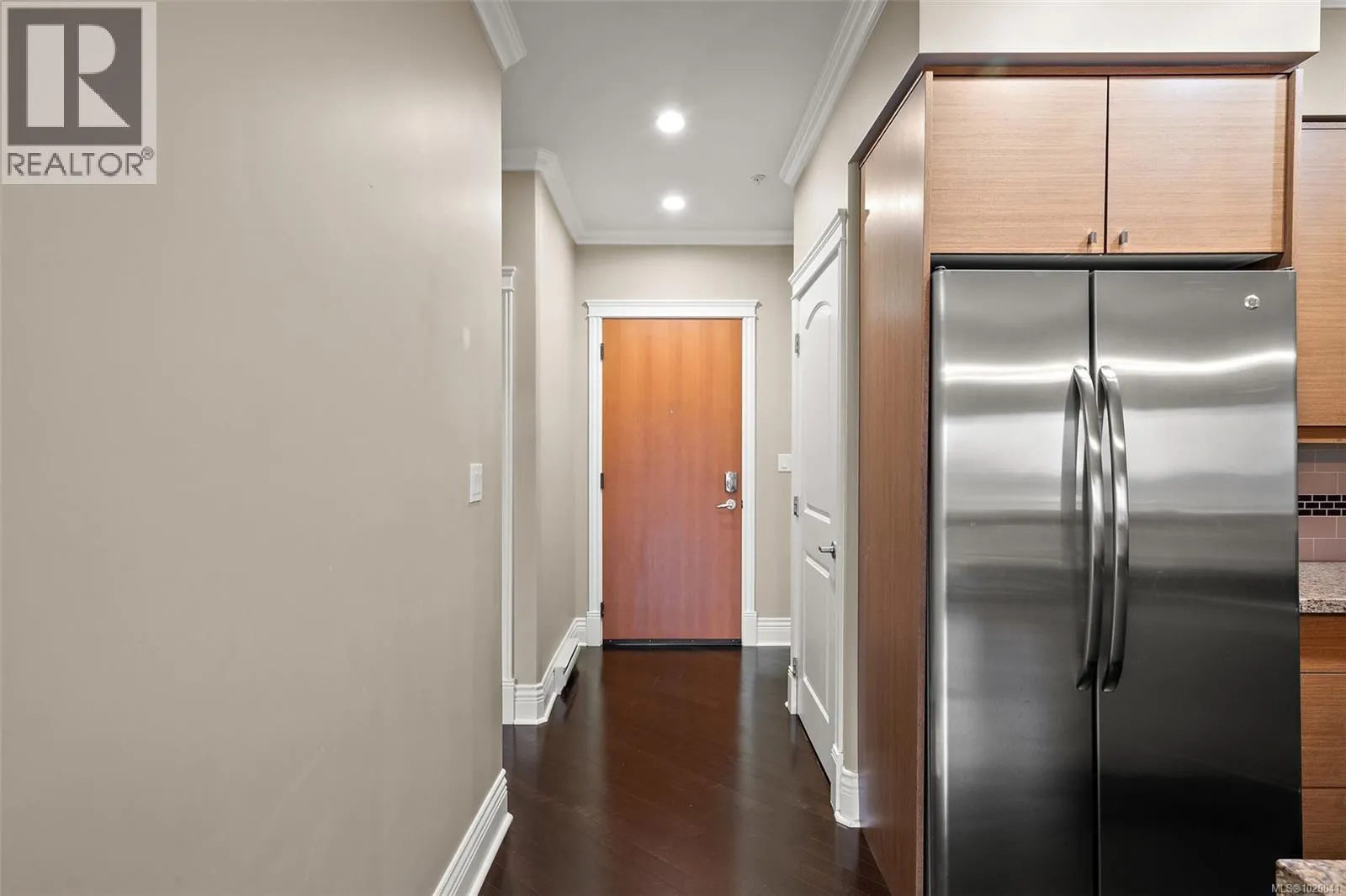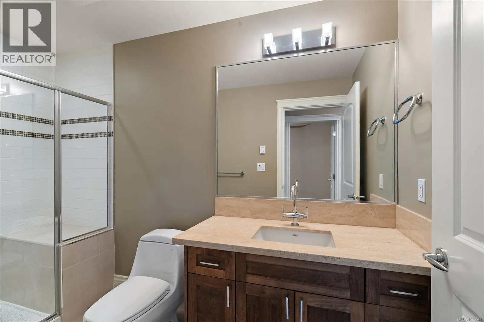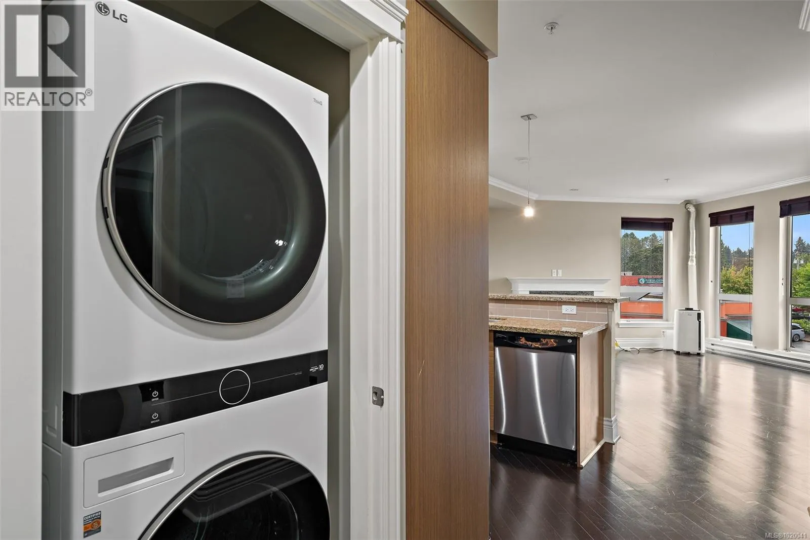 Discover this stunning 2-bedroom, 2-bath unit located in the heart of Langford. Comes with a secure underground parking stall and a storage unit, this home combines value, comfort, and convenience. Brand new dishwasher and microwave combination were just installed The 8 foot 9 inch-foot ceilings, with oversized windows flood the space with natural light, beautiful hardwood floors and carpeted bedrooms The kitchen features granite countertops, a stylish eating bar, an open dining and living areasâperfect for entertaining or simply relaxing at home. Unwind on your private balcony or retreat to the spacious primary bedroom that fits a king-size bed. A custom walk-in closet and ensuite with a tub make this suite a true retreat. Steps to all amenities , shopping, parks, and the new University (id:27476)
