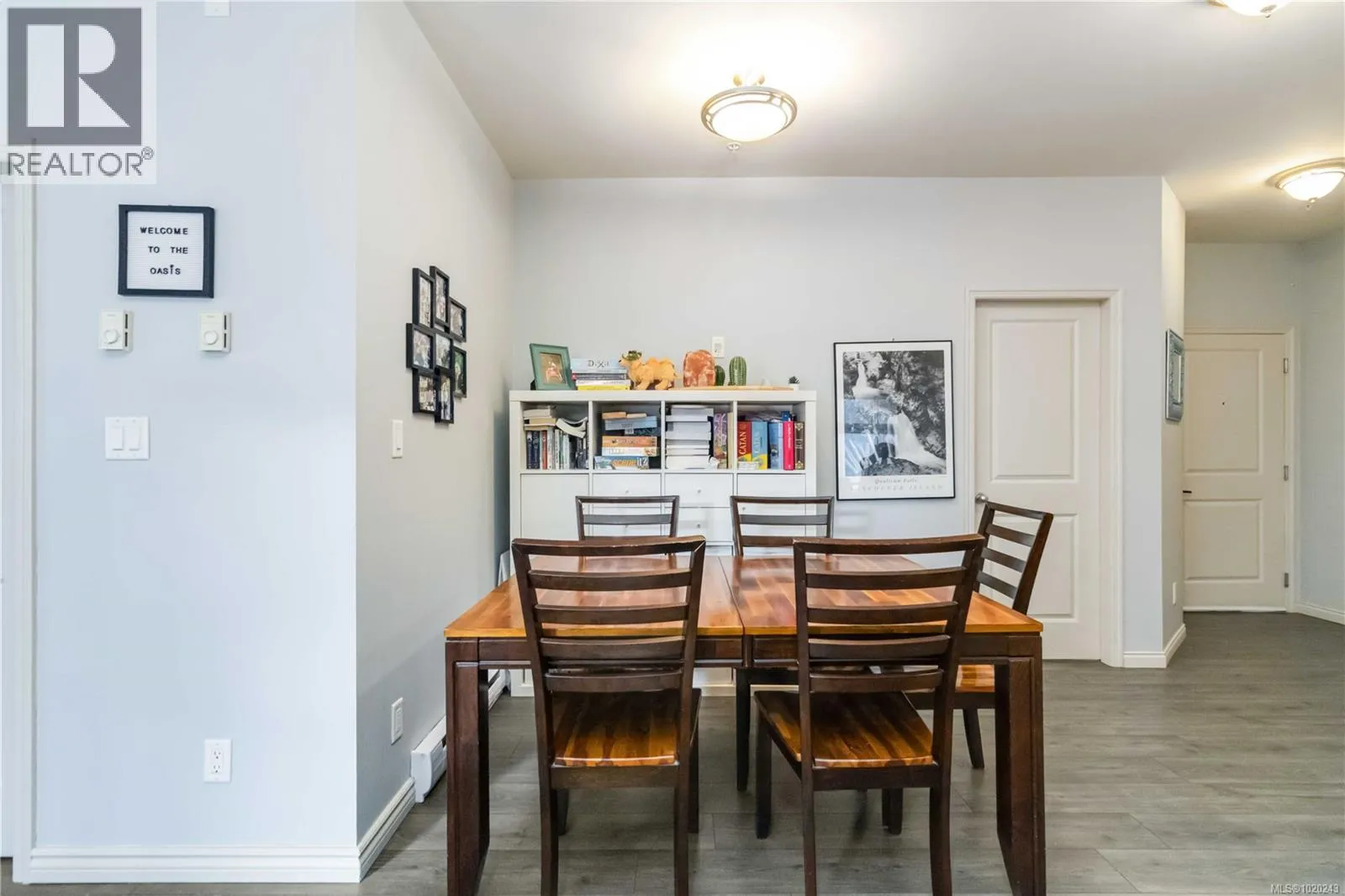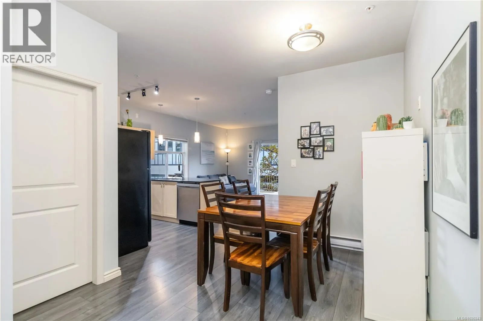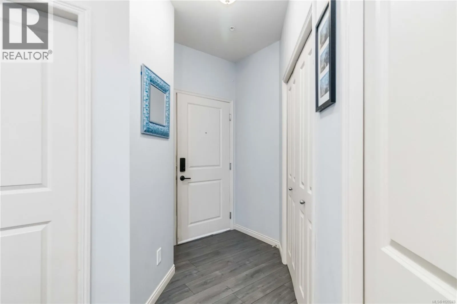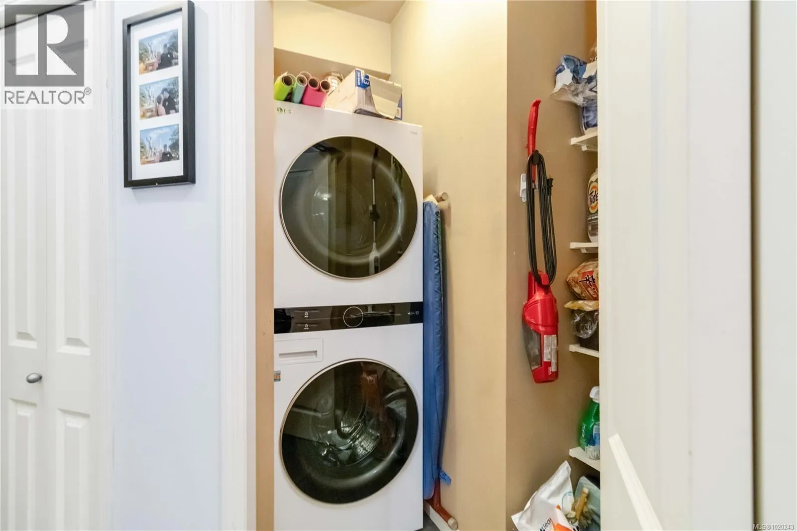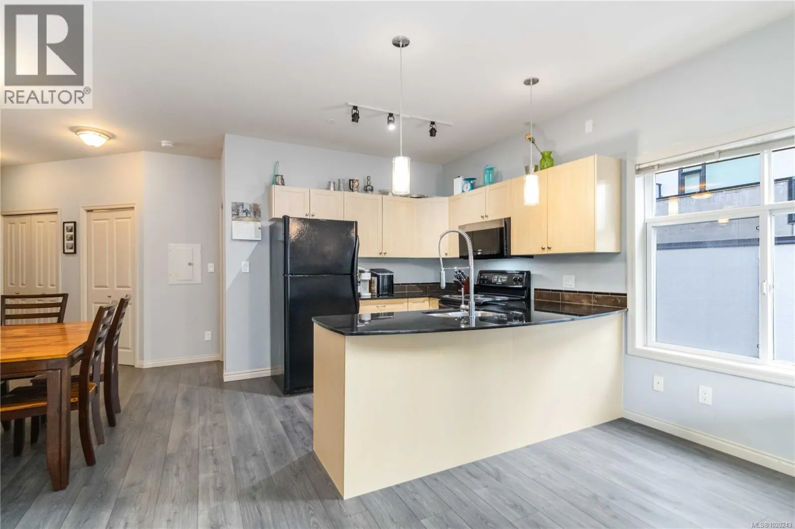 Corner unit in the heart of Langford! This bright and beautifully updated 2-bed/2-bath condo features brand new flooring, new in-suite laundry, fresh designer paint, and a stunning new fireplace. Built in 2006, the home offers sleek black granite countertops and an open-concept kitchen with a sit-up breakfast bar, complemented by 9 ft ceilings and excellent bedroom separation for added privacy. The spacious primary bedroom includes a full 4-piece ensuite with a soaker tub, while the second bedroom is served by a 3-piece bathroom. Enjoy the covered southwest-facing deckâperfect for afternoon sunâand the convenience of being just steps from Goldstream Village, bus routes, shopping, restaurants, and parks. Set in a well-maintained building with a small, close-knit strata and no size restrictions for dogs, this property offers comfort, community, and flexibility. Move-in ready and filled with natural light, this corner unit is a must-see! (id:27476)