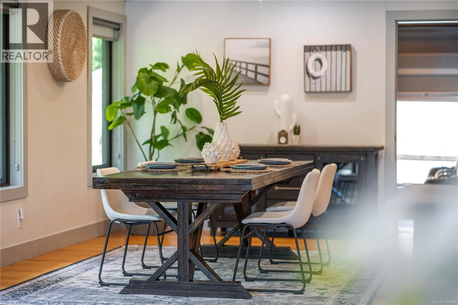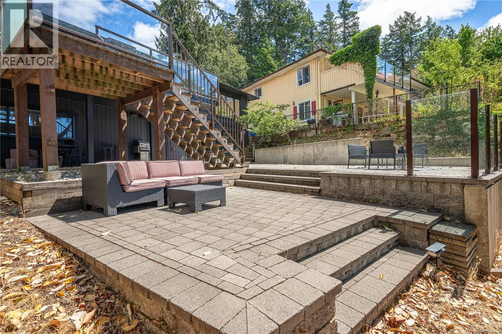 Lakefront living on Langford Lake this executive home is only second to the town centre yet offers full waterfront privacy. On an almost half an acre of land there is no need for a summer home when your main home can be both. The current owners have made many updates and upgrades to ensure luxury living. Situated well off the main road for total privacy this home offers a desirable floor plan with main level living and a suite below. With walls of glass towards the lake you will take in panoramic views from both the great room and the primary retreat. The large kitchen with updated appliances, shaker cabinets, large island, gas cooktop and also has a large window to bring in ample natural light from the lake beyond. The wide plank hardwood floors, board and batten ceiling, multiple skylights, wood fireplace and coved wood ceiling bring charm and ambiance warming the space and creating a relaxing environment. With three bedrooms up, a fourth down with a rec room and a separate suite this floor plan can accommodate a large family or provide income potential. The one bed and den suite is spacious and bright and is situated to also take in breathtaking sunsets and views of the lake. Loads of outdoor space with multiple patios, fire pit, green space, gardens, very large storage shed and a big dock with its own title. Swim all day long with ideal sun exposure to enjoy every last minute of day time. Double car garage, gated driveway, loads of parking and even covered RV parking. Langford lake is an electric motor only lake to ensure serenity and peace, residents putter around on their floating docks waving at one another creating a charming water community. You are steps to YMCA and very easy access to the highway, only seconds away from every amenity you could want or need. This home offers a lifestyle to be envied and is an extremely rare opportunity, call today for your private tour. (id:27476)