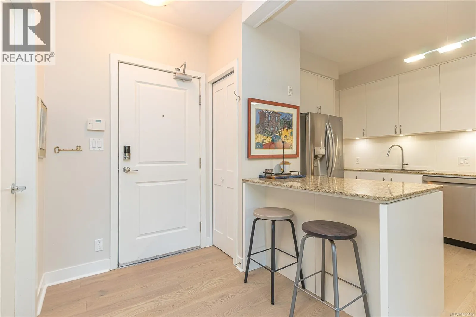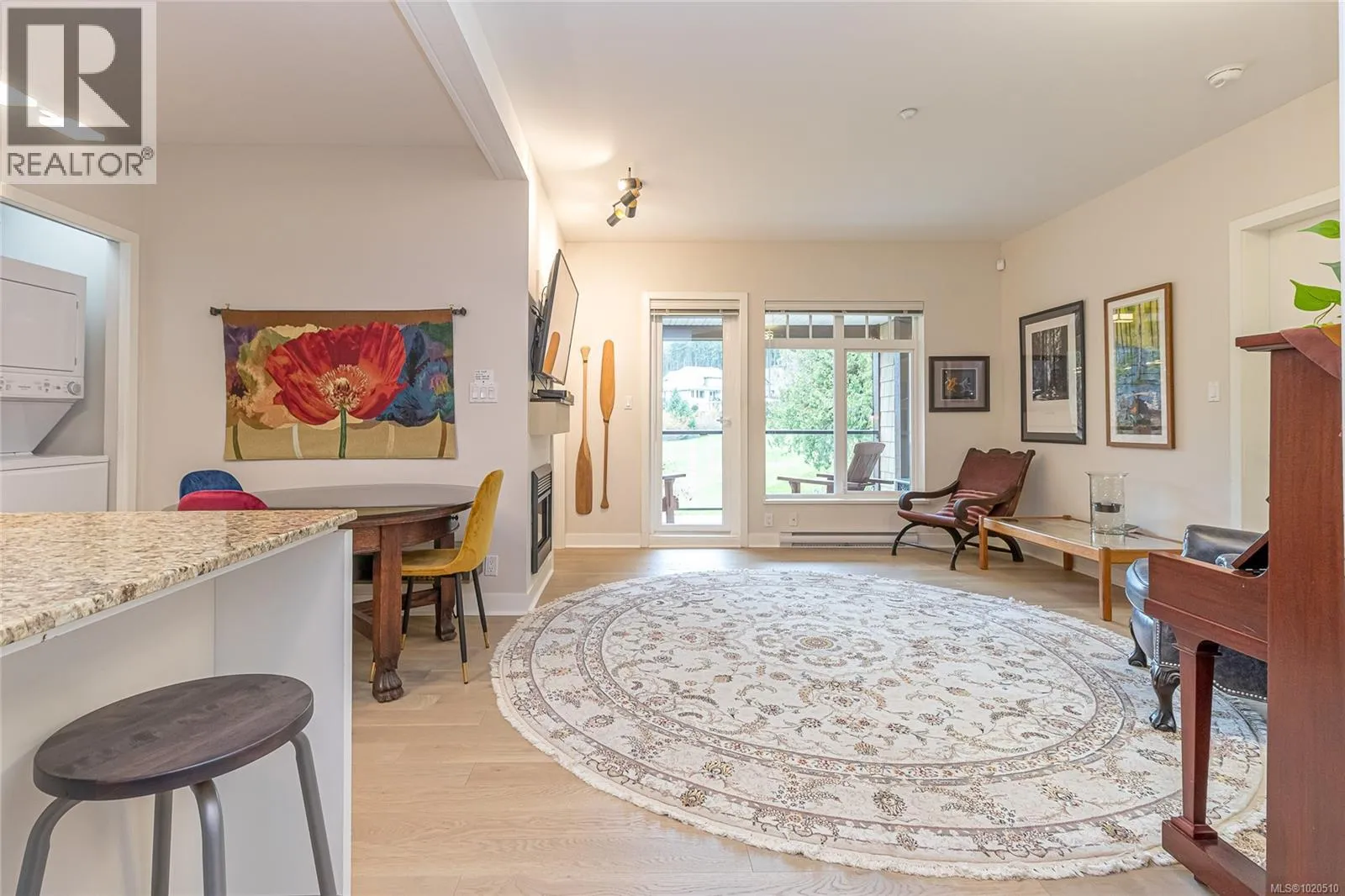 Located on Bear Mountain in the popular St. Andrew's Walk complex and quietly tucked away overlooking the 9th fairway, this beautifully updated condo offers a rare blend of privacy, sunshine, and effortless living. The covered south-facing deck invites you to unwind as the afternoon light pours into the living spaceâan ideal spot to take in tranquil golf course views & the gentle flutter of hummingbirds. The gourmet kitchen, featuring granite counters & a comfortable eating island, flows effortlessly into the Living and Dining areas, creating a bright, open-concept space perfect for everyday living & entertaining. A cozy electric fireplace anchors the room with warmth & charm. Thoughtfully remodeled throughout, this 2-bed/2-bath home includes quality wood floors throughout, newer appliances, built-in cupboard organizers that maximize function and style, Murphy bed in 2nd bedroom. Additional perks include extra storage, a bike rack, and secure designated underground parking. A truly inviting home in a peaceful natural settingâthis one must be seen to be fully appreciated. Just Steps away from the Village, Westin Hotel & Spa, Athletic Club, & restaurants. Secure parking. Pets allowed. (id:27476)