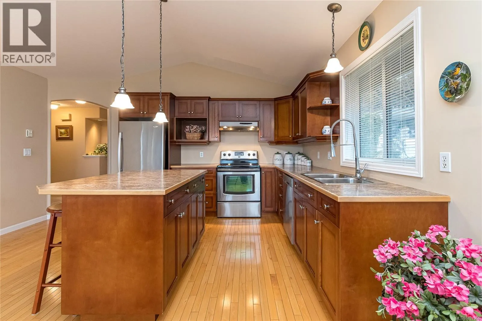 Large custom built home with excellent views of the ocean and the Olympic Mountains! This tastefully designed residence offers 3 BR on the main floor, spacious kitchen featuring a breakfast bar and eating area with vaulted ceilings, stainless appliances overlooking stunning Olympic mountain glacier views. The generous sized dining and living room with gas fireplace are ideal for entertaining, and open onto your sun-drenched deck where you can relax and take in the panoramic ocean and mountain scenery. The primary bedroom with window suite includes a walk-in closet and a full four-piece ensuite with a stand-up shower. Two additional bedrooms floor and full bath with skylight complete the main floor. Quality finishing, hardwood flooring & maple cabinetry. The lower level has a den plus fully finished lower level roughed-in for a separate 2 BR suite, ideal for extended family or mortgage helper! Located just a short stroll to Royal Bay, Olympic View Golf Course and all amenities. Call Now (id:27476)