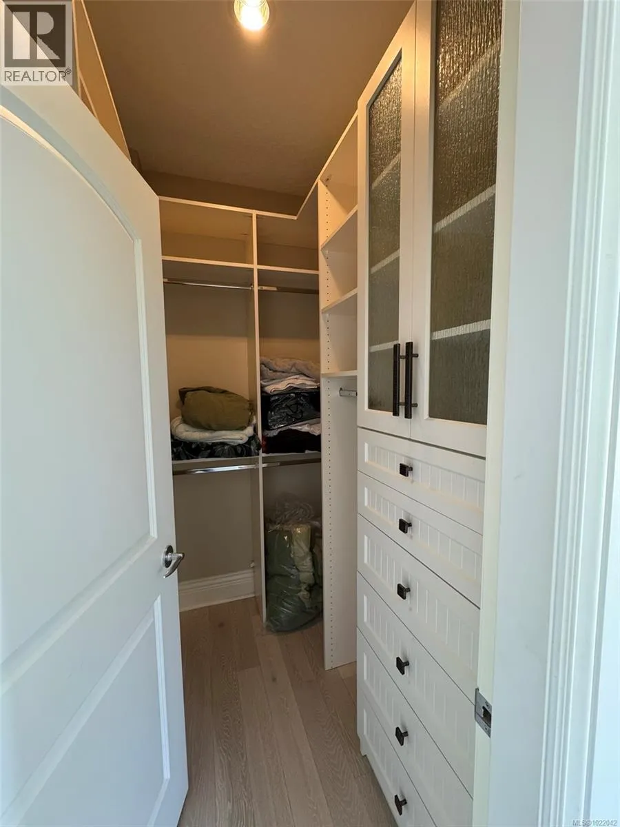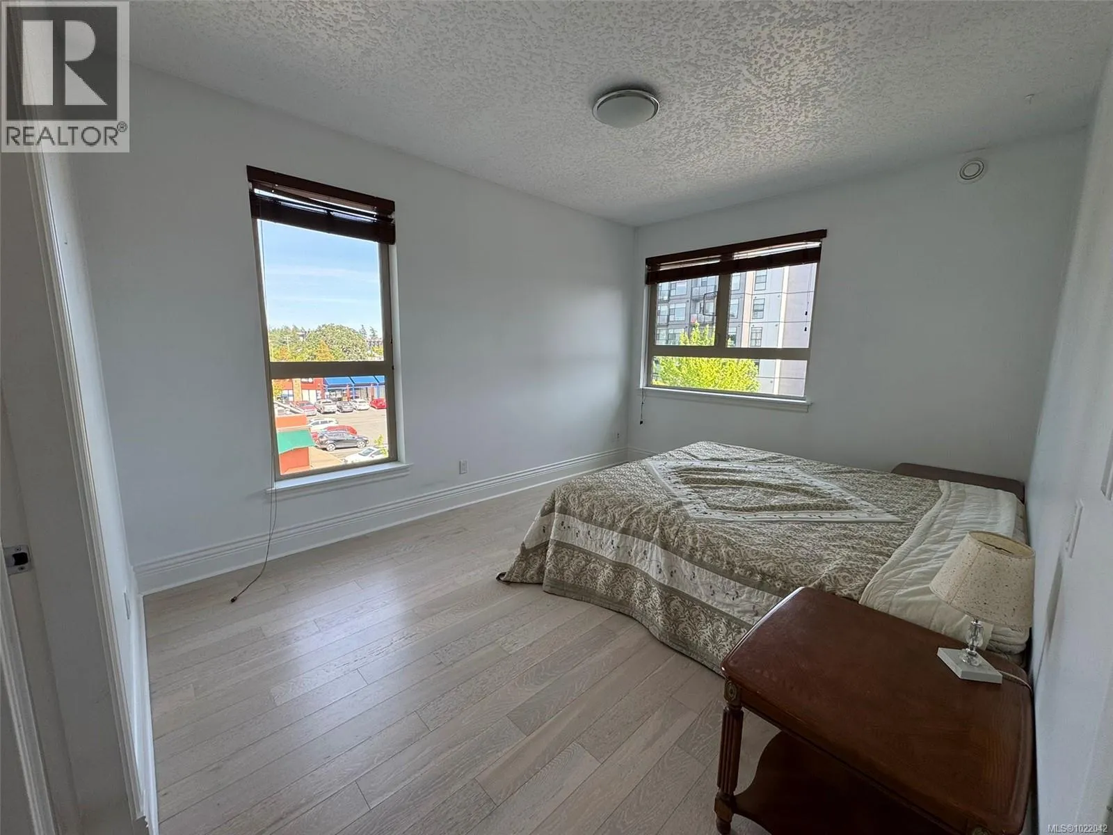 TWO PARKING STALLS & TWO STORAGE UNITS!! This spacious top-floor 2-bed, 2-bath corner unit is in the heart of Goldstream Village has 2 owned underground parking stalls and 2 storage units, what exceptional value and convenience. The unit boasts natural light which is amplified by soaring 13-foot ceilings, oversized windows, and hardwood floors throughout. The kitchen features granite countertops, a stylish eating bar, and seamlessly connects to the open dining and living areas, perfect for entertaining or relaxing at home. Enjoy warm summer evenings on the, private balcony, ideal relaxing with friends or family. The generously sized primary bedroom easily accommodates a king-size bed and includes a custom walk-in closet and a lovely ensuite with a soaker tub. Additional highlights include , in-suite laundry, pantry and fireplace. Located just a walk from shops, cafés, fitness centres and more â this is urban living at its best. Immediate possession available. (id:27476)