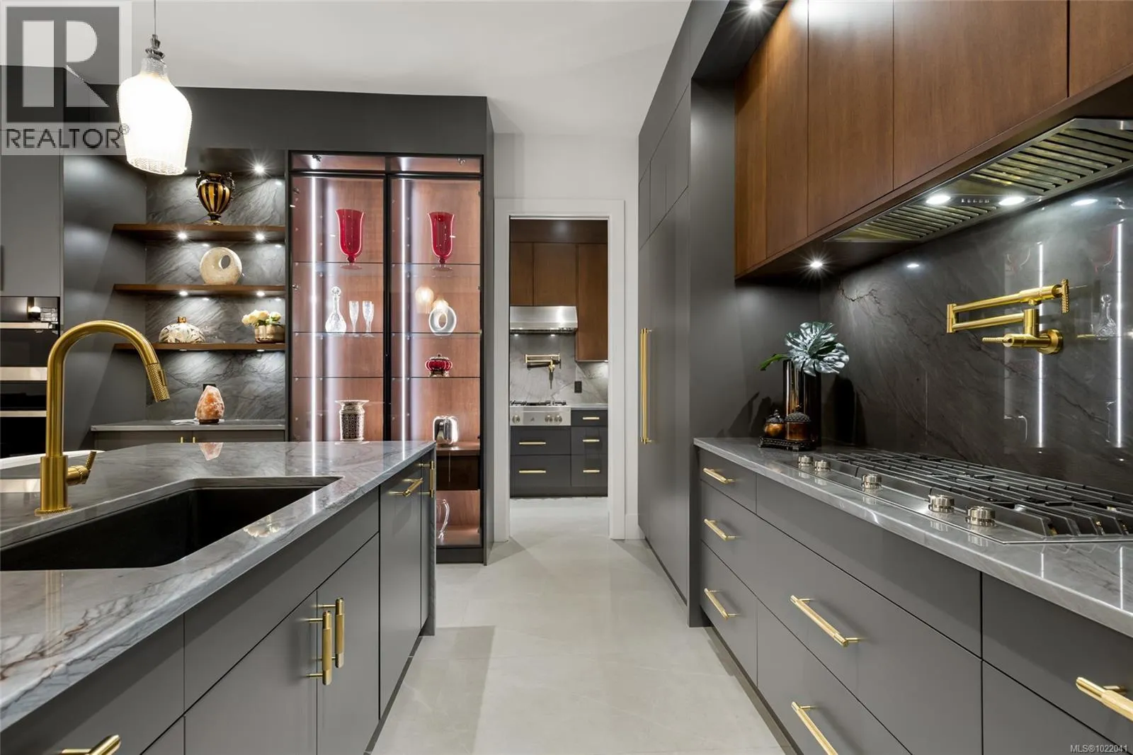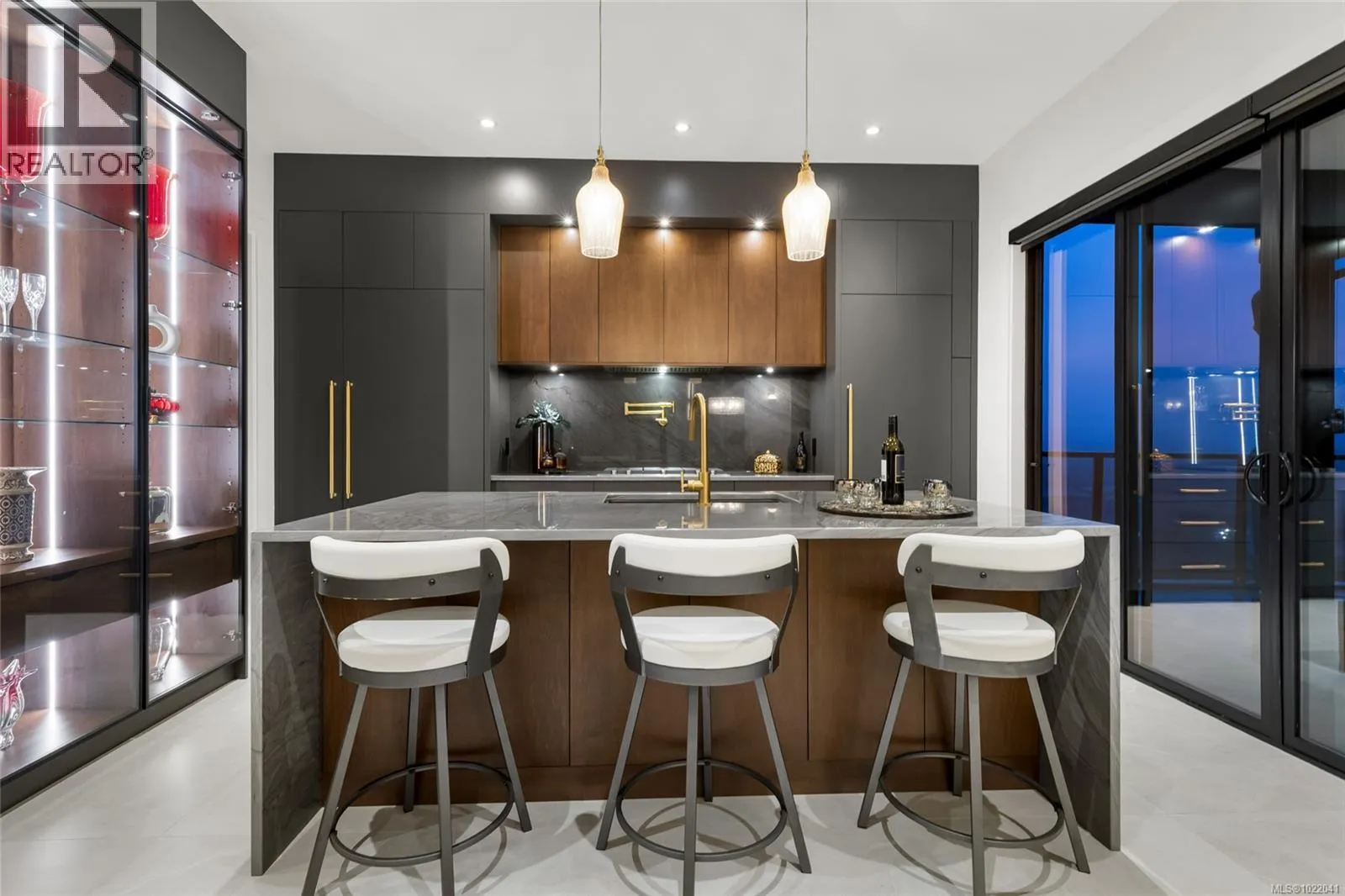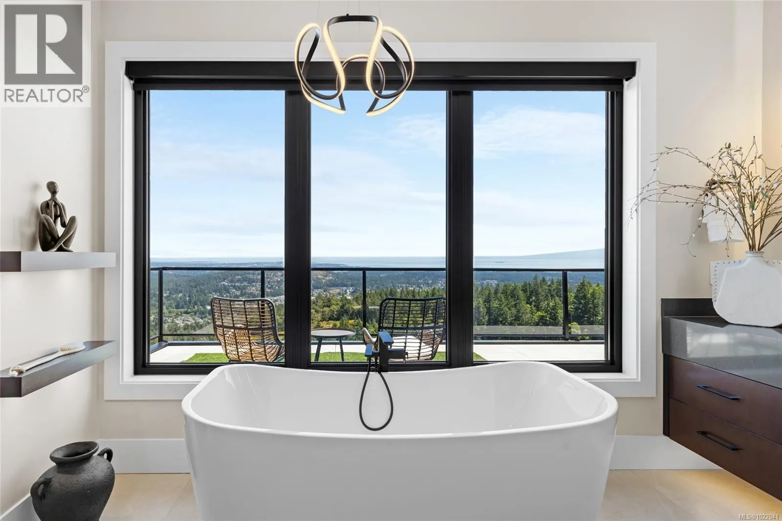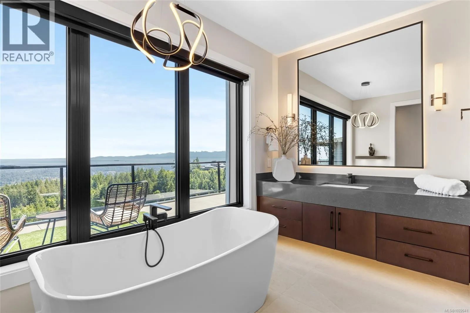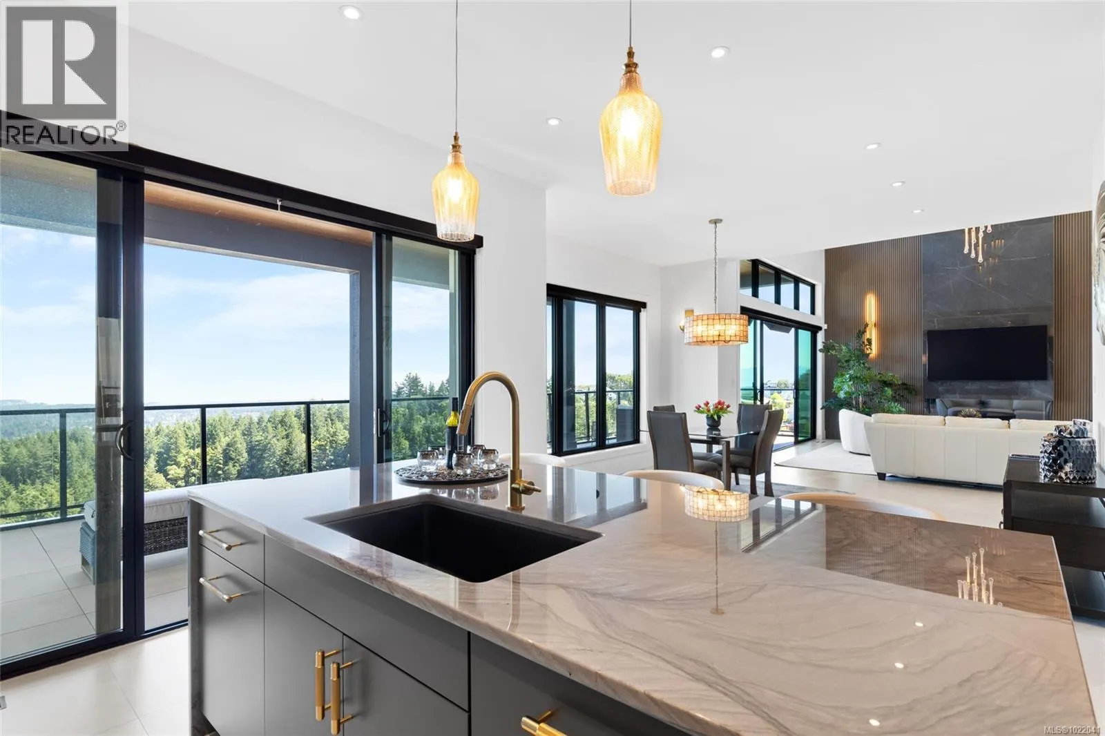Discover the ultimate in West Coast sophistication with this custom-built residence located high on Bear Mountain. Panoramic views of the ocean, mountain, & city lights, make this truly a living masterpiece that evolves with the light of the day. Designed for the discerning homeowner, the grand foyer & soaring ceilings create an inviting sense of scale, while expansive windows draw in the natural beauty and light. The heart of the home is a chef-inspired kitchen featuring top-tier appliances, an beautiful island, & a discrete prep kitchen for effortless hosting. Meticulous craftsmanship shines through every detail, from radiant-heated floors & Brizo fixtures to iconic Buster + Punch hardware. Dual primary suites each offer spa-inspired ensuites while the versatile lower level provides warmth & privacy for multi-generational living. An elevator ensures effortless access across all levels, complete with a separate one bed legal suite. This a lifestyle masterpiece that has to be seen! (id:27476)