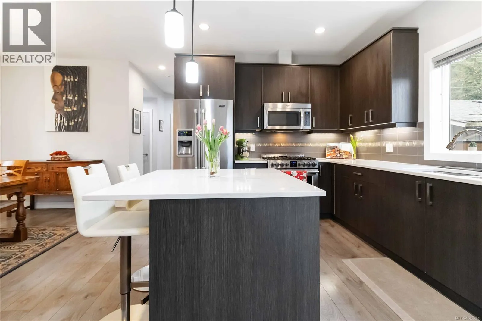 Discover the perfect blend of modern luxury and outdoor tranquility at 3499 Luxton Rd. This meticulously maintained 3-bedroom plus den, 3-bathroom home offers over 1,600 sq ft of sophisticated living space. Originally the development's showhome, the property boasts high-end finishes and thoughtful upgrades that make it stand out from the rest. The heart of the home is an inviting open-concept main level. The kitchen is a standout, featuring gleaming quartz countertops, premium stainless steel appliances, and a functional center islandâperfect for hosting friends while you prep. The seamless flow into the dining and living areas creates an airy, connected atmosphere for everyday family life. Step through the door to an exterior living space that is simply unrivalled. The professionally landscaped and fully fenced yard is a private oasis, highlighted by a custom patio and a stunning, unique art installation. Whether itâs rain or shine, you can entertain with ease under the generous covered patio, complete with a natural gas BBQ outlet (and the BBQ is included!). The upper level is designed for comfort, featuring a primary suite with a walk-in closet and a full ensuite bath. Two additional generous bedrooms and a dedicated laundry room complete the top floor. Key features & upgrades include, Climate Control: New energy-efficient heat pump for year-round comfort. Efficiency: Hot water on demand system. Parking & Storage: Heated garage plus additional driveway parking and a separate storage shed. Location: Perfectly situated just steps from the Galloping Goose Trailâan outdoor enthusiast's dream for biking, walking, and exploring Langfordâs natural beauty. This home is better than new and ready for its next chapter. Schedule your showing today! (id:27476)