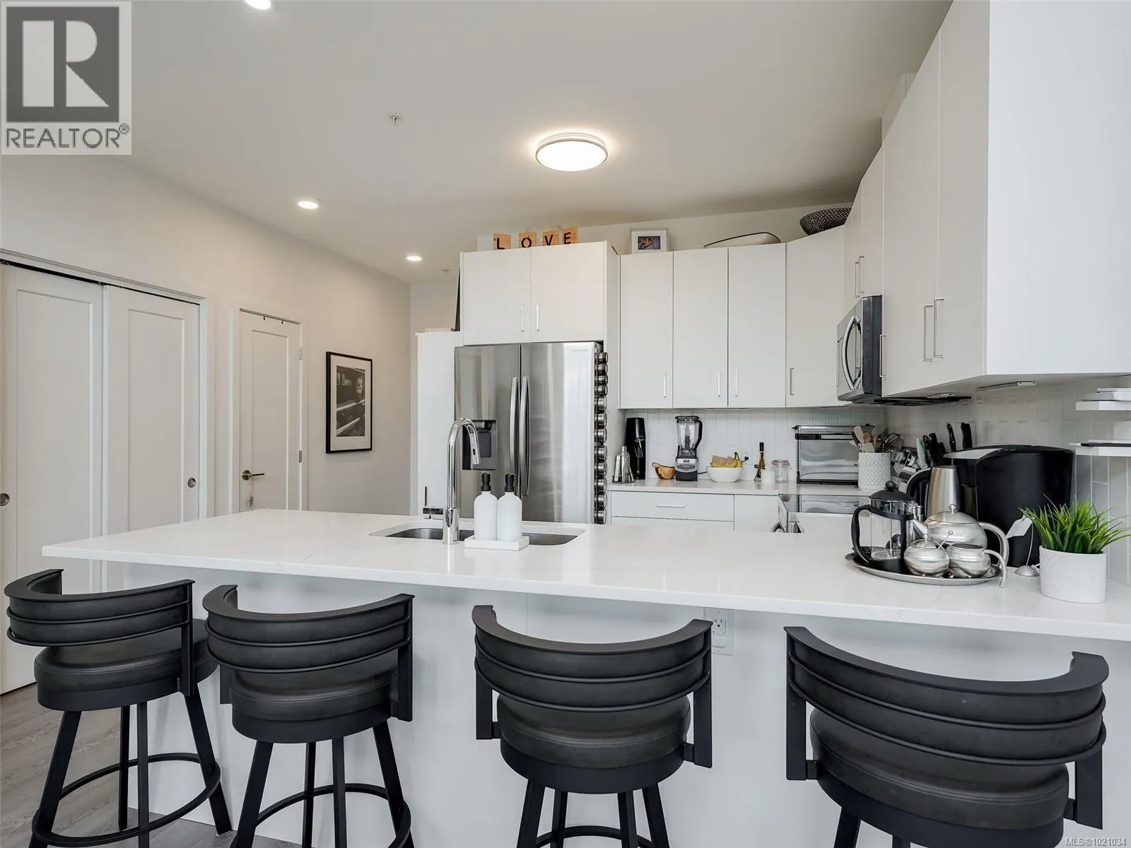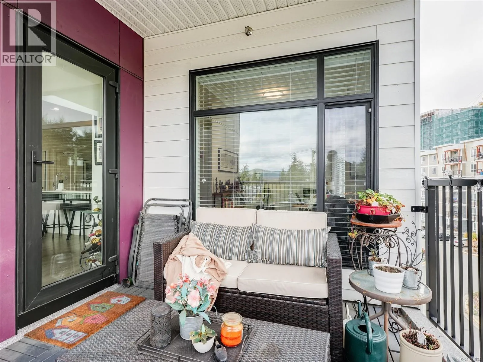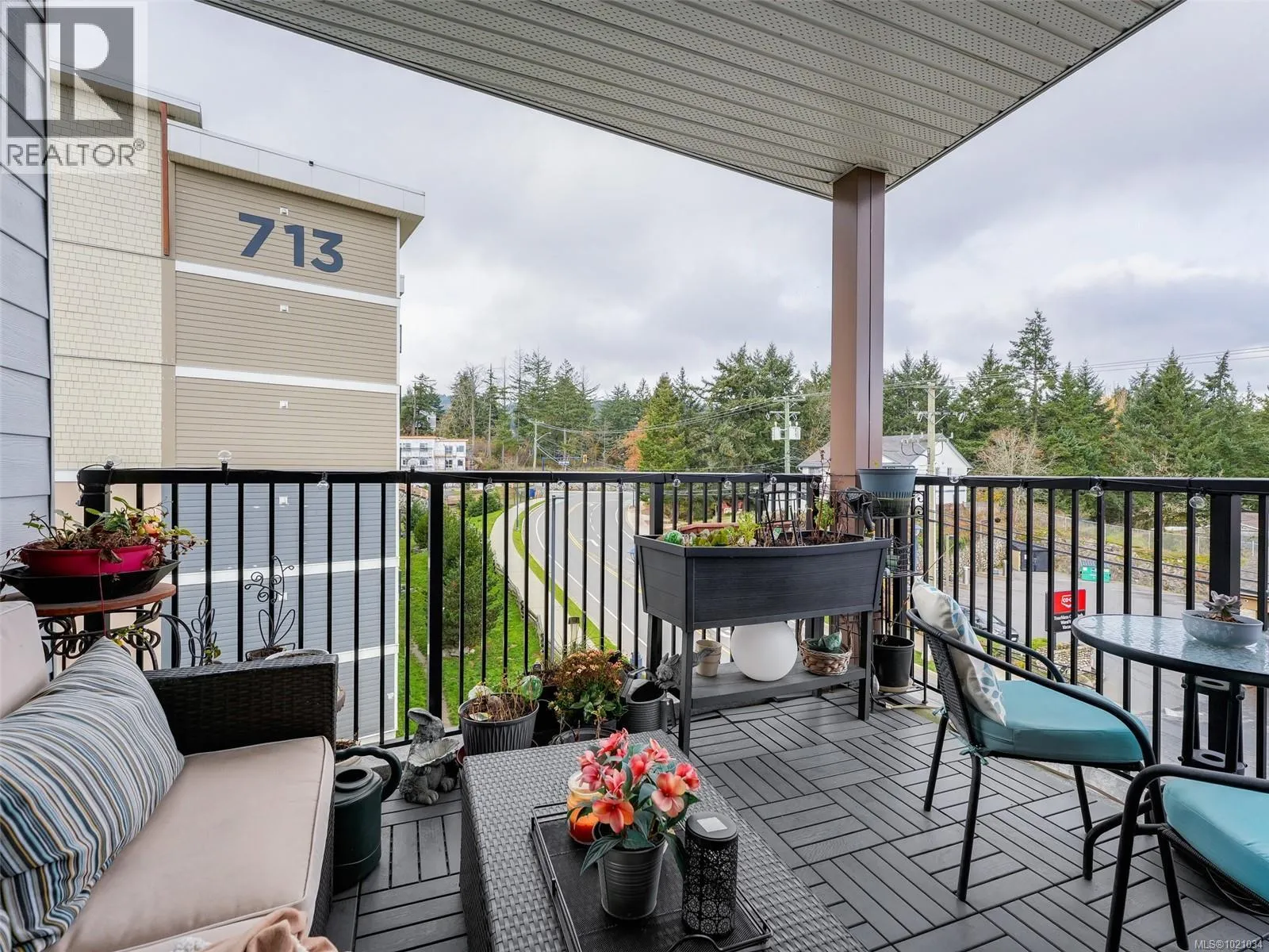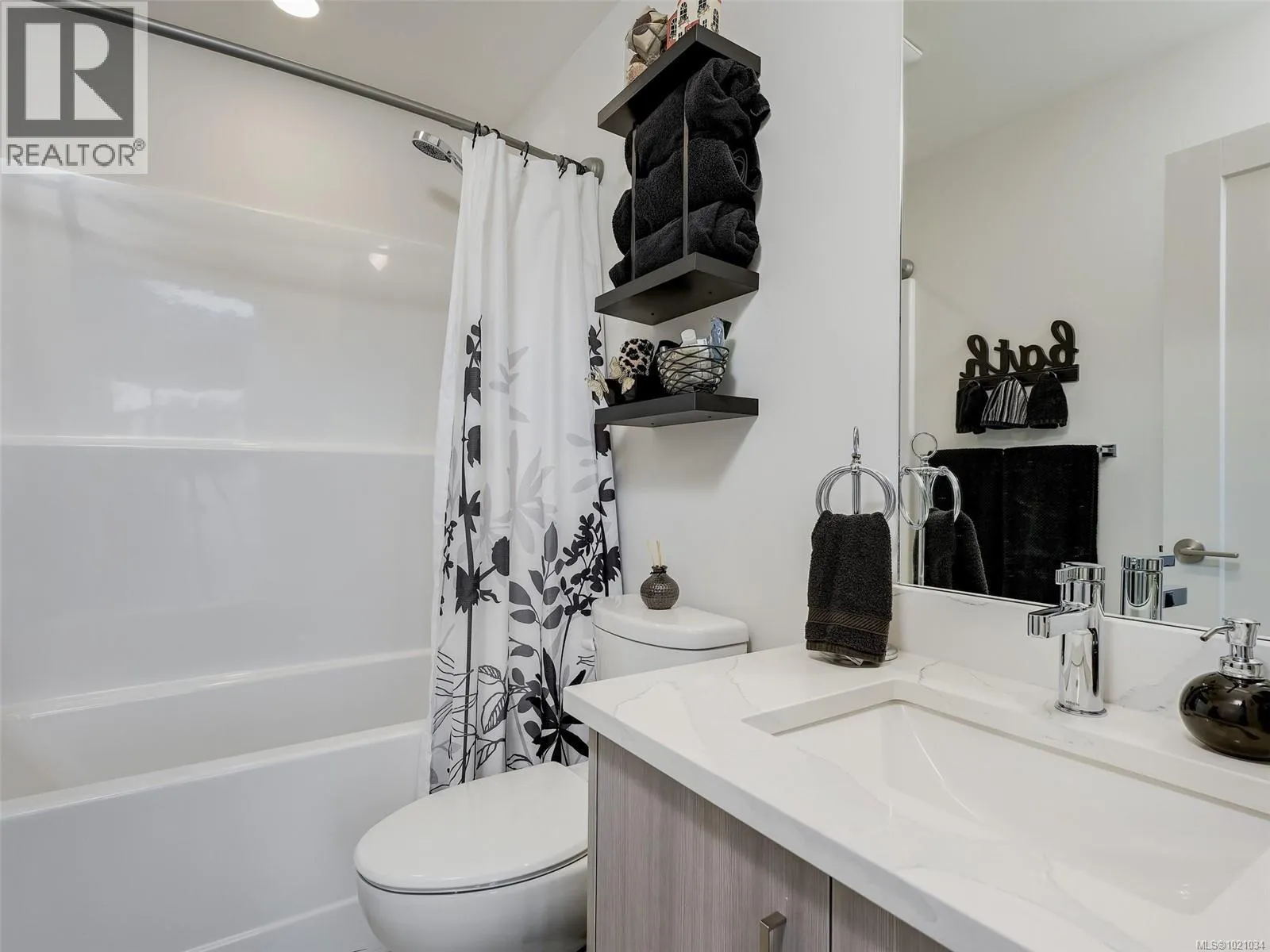 Welcome to 707 Treanor Ave: a contemporary boutique 2 bed/2 bath home situated in the heart of Millstream Village. Here you have the advantage of easy access to premium outlet shopping, big box stores, high-end grocery stores and nearby culinary delights. This quality 2021 built condominium features pet-friendly accommodations and entertainment at your doorstep. The design is by award winning Spaciz Design Company which showcases neutral cream tones mixed with matte charcoal accents. The top floor interior features include impressive vaulted ceilings, quartz countertops, a porcelain backsplash, hard surface flooring, top-of-the-line appliances, and heated ensuite floors. The numerous owner updates comprise closet and cupboard organizers, additional smart lighting, and a gorgeous custom built electric fireplace with heating options for year-round comfort. Enjoy watching the sunsets from your oversized corner balcony with plenty of room for a grill. Donât delay in making this your dream home! All measurements are approximate and must be verified if relying upon. (id:27476)