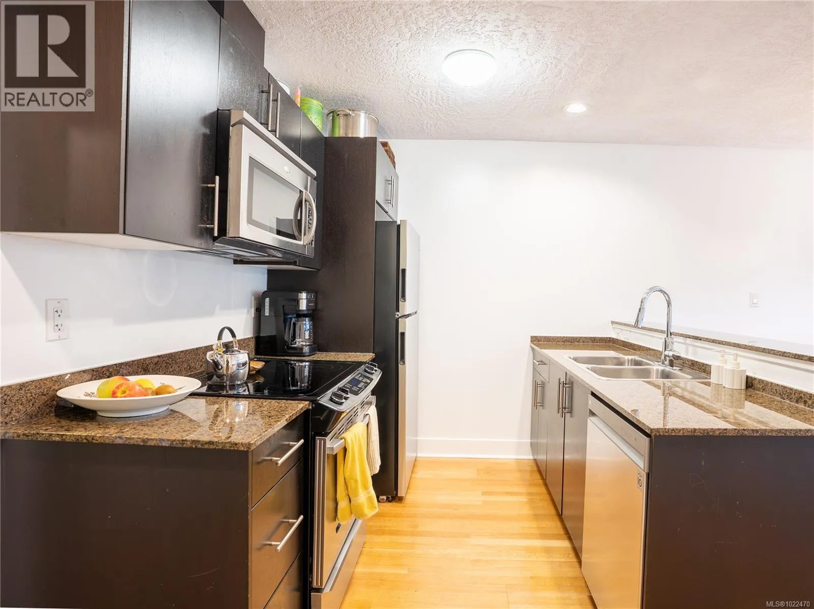 Welcome to The Blackberry at 306 â 2717 Peatt Road, Langford, BC This bright and spacious 2-bedroom, 2-bathroom condo offers 855 sq. ft. of modern living in the heart of Langford Proper. Built in 2008, The Blackberry is a well-maintained, strata-managed building known for its walkable location and contemporary design. The open-concept layout features a large living and dining area with an electric fireplace, leading to a west-facing balcony perfect for relaxing or entertaining. The kitchen includes stainless steel appliances, tile backsplash, and a functional island layout ideal for everyday living. The primary bedroom offers a generous walk-in closet and a 5-piece ensuite with dual sinks, while the second bedroom is perfectly suited for guests or a home office. Additional highlights include in-suite laundry, 8-foot ceilings, and a 4-piece main bathroom. The Blackberry provides secure parking, pet-friendly and rental-permitted policies, and close proximity to shops, restaurants, parks, and transit. If youâre looking for a well-located home with comfort and convenience, this is an excellent opportunity in one of Langfordâs most desirable and rapidly growing neighbourhoods. (id:27476)