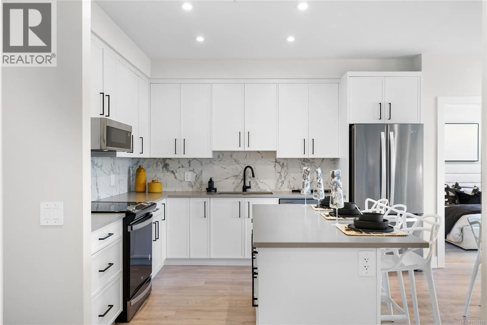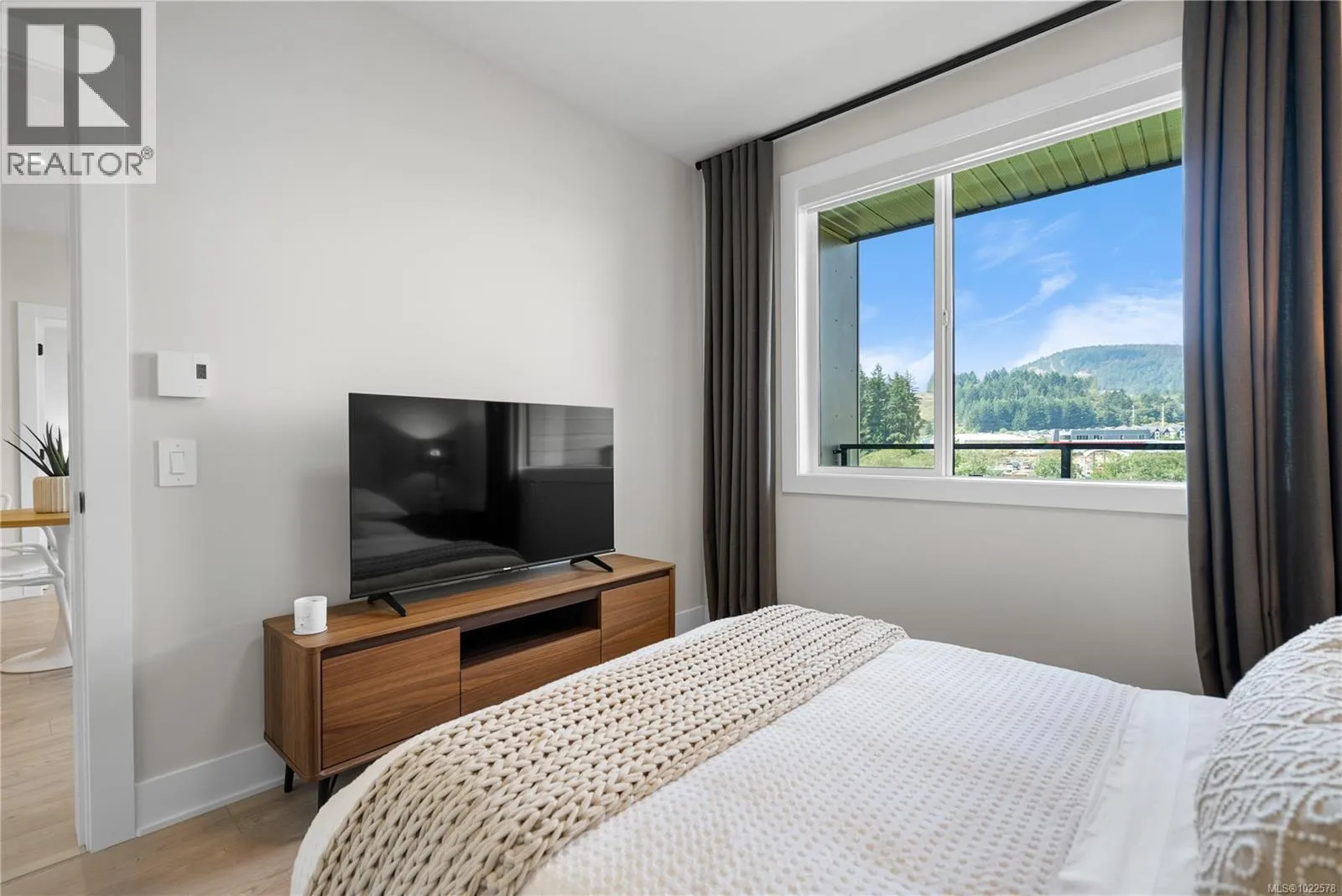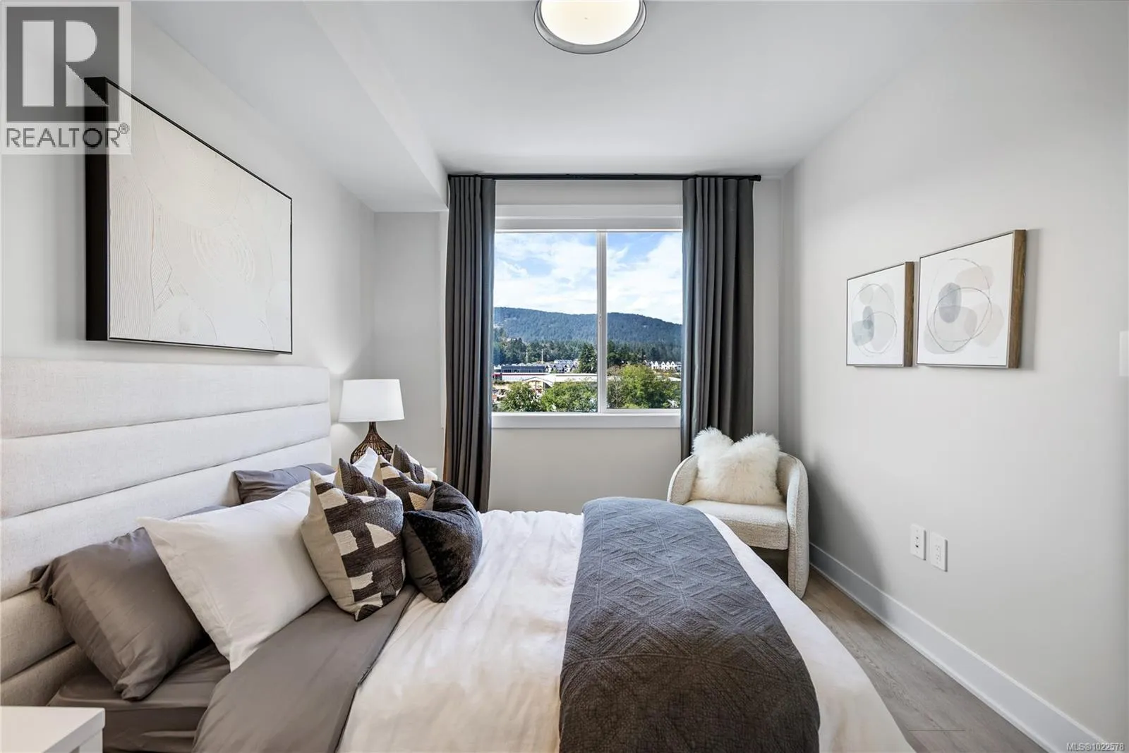 Set perfectly to enjoy the peaceful park setting and water and nature views from your living room, kitchen, and deck. This popular floor plan is 2 beds and 2 baths and ready for immediate possession. Enjoy new construction with air conditioning, one (EV ready) parking space, and the convenience of a storage locker on your floor. Poised on the shores of Langford Lake, all homes come equipped with amenities for modern living. Bright and airy, including large windows to showcase the views, 9 ft ceilings, laminate flooring, spacious kitchens with quartz counters and a Whirlpool appliance package, window blinds and screens. Building amenities include cardio space, weight room, yoga space, lounge, & home office space. Just steps to the Ed Nixon trail and Langford Lake for outdoor adventures. Also, enjoy a short walk to YMCA, Eagle Ridge and City Center activity complex, as well as many amenities. (id:27476)