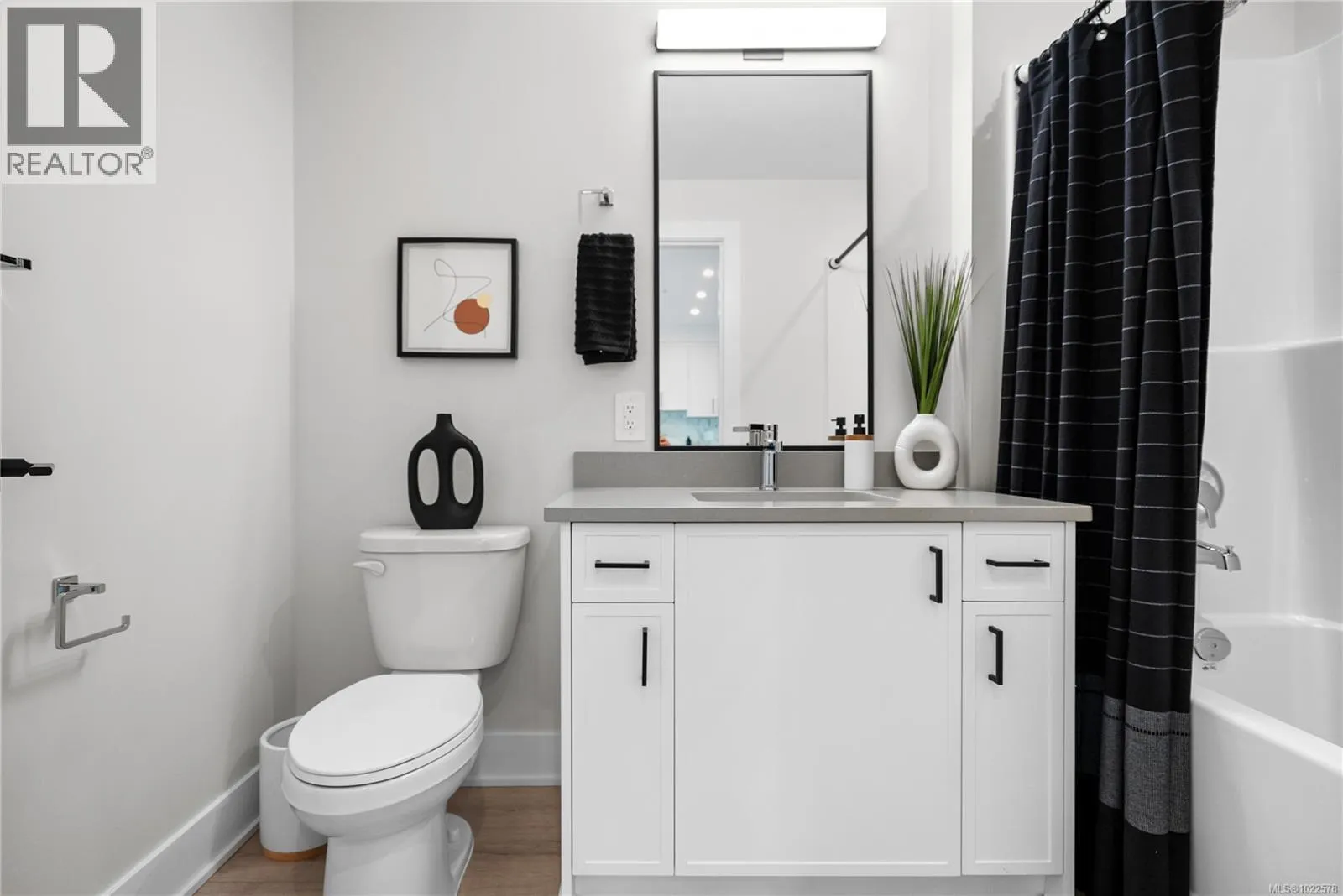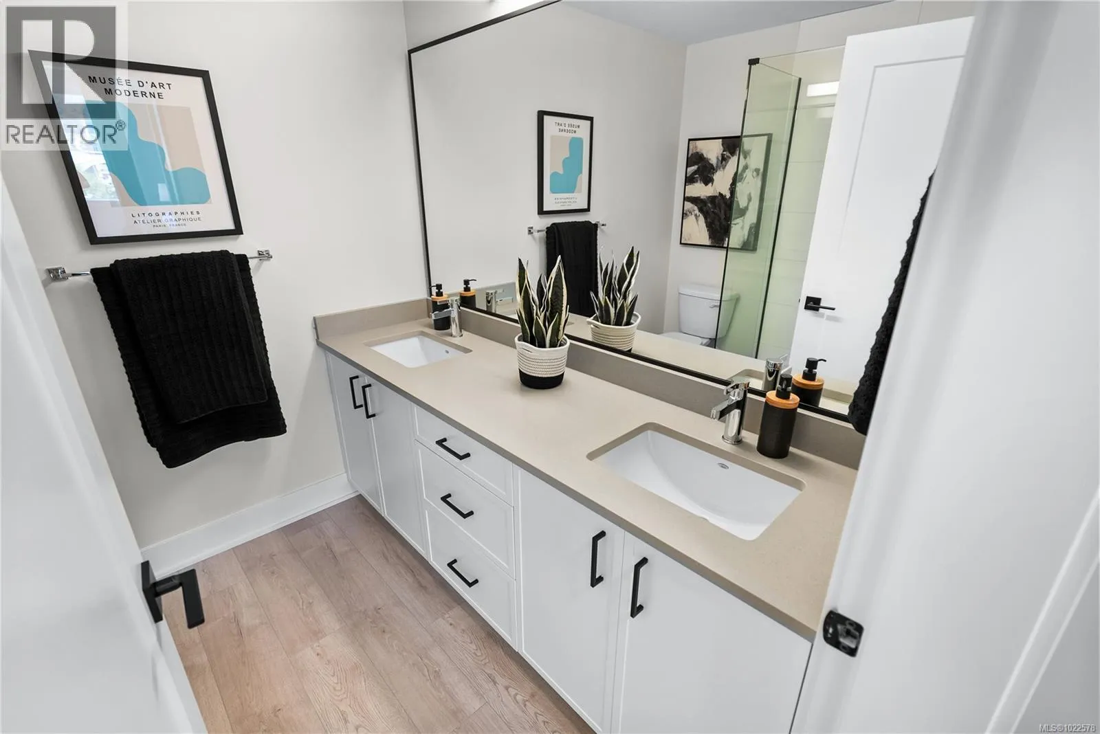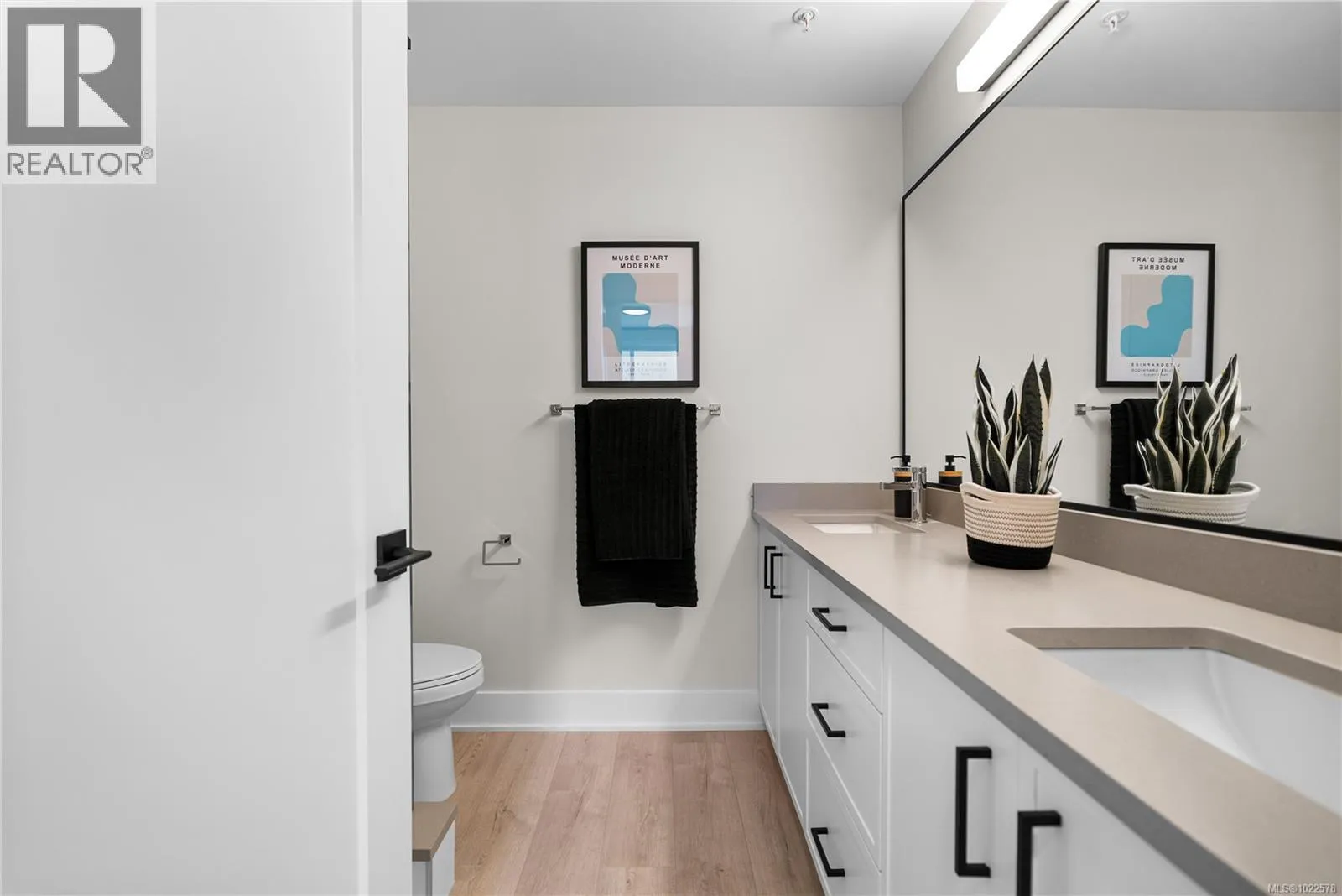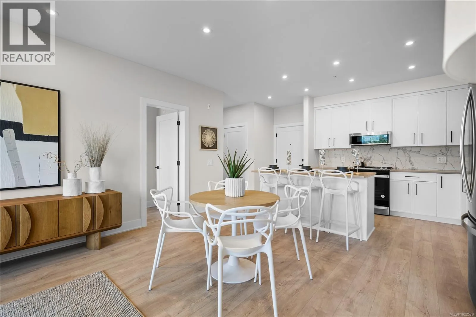 Set perfectly to enjoy the peaceful park setting and water and nature views from your living room, kitchen, and deck. This popular floor plan is 2 beds and 2 baths and ready for immediate possession. Enjoy new construction with air conditioning, one (EV ready) parking space, and the convenience of a storage locker on your floor. Poised on the shores of Langford Lake, all homes come equipped with amenities for modern living. Bright and airy, including large windows to showcase the views, 9 ft ceilings, laminate flooring, spacious kitchens with quartz counters and a Whirlpool appliance package, window blinds and screens. Building amenities include cardio space, weight room, yoga space, lounge, & home office space. Just steps to the Ed Nixon trail and Langford Lake for outdoor adventures. Also, enjoy a short walk to YMCA, Eagle Ridge and City Center activity complex, as well as many amenities. (id:27476)