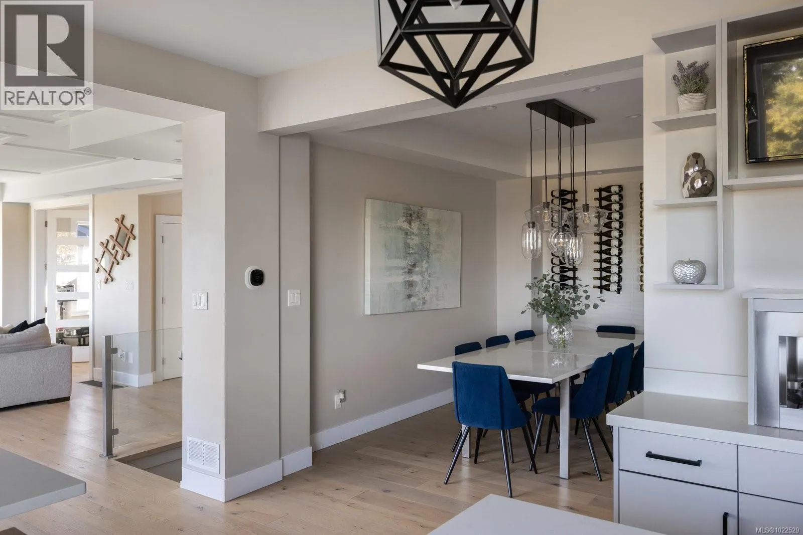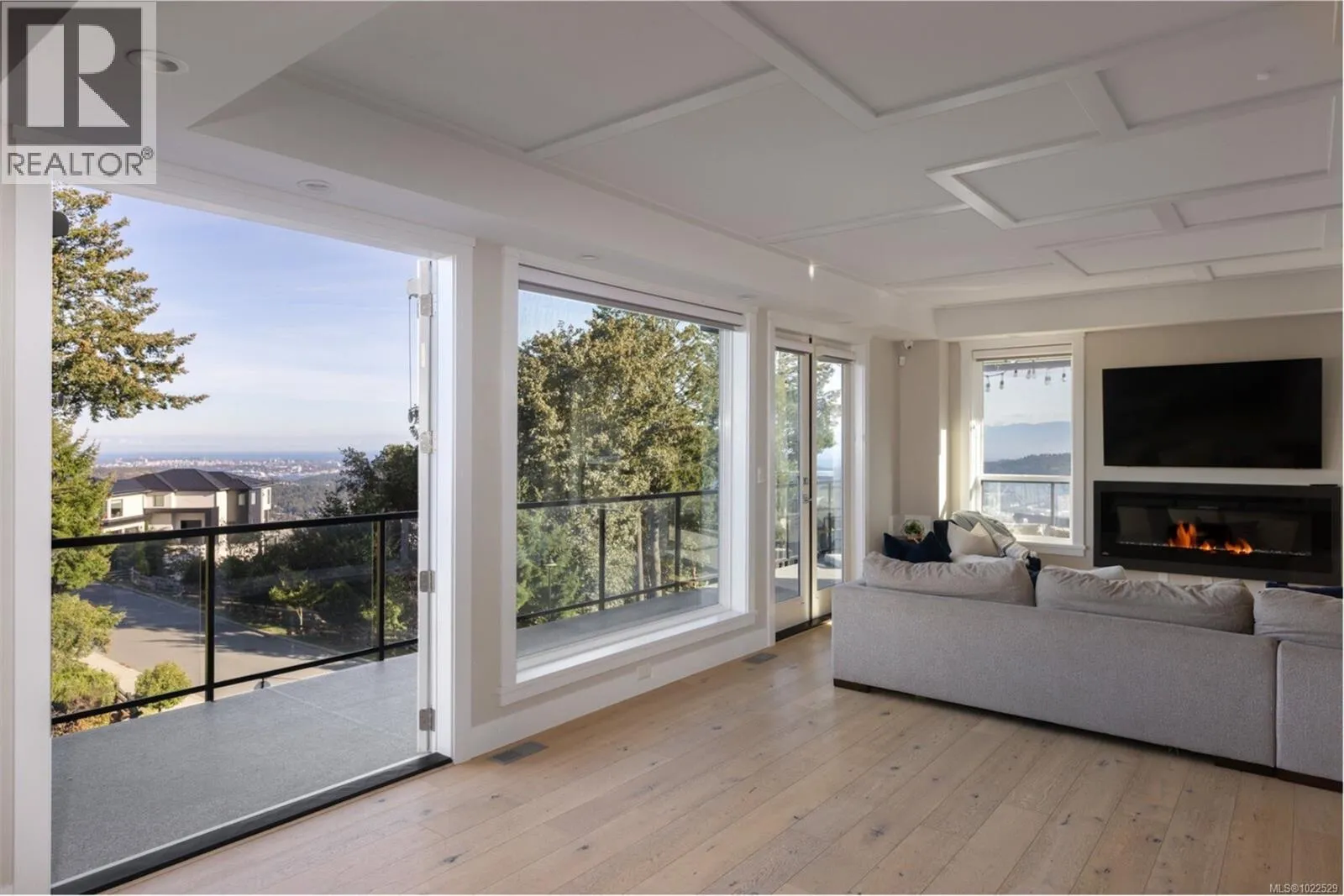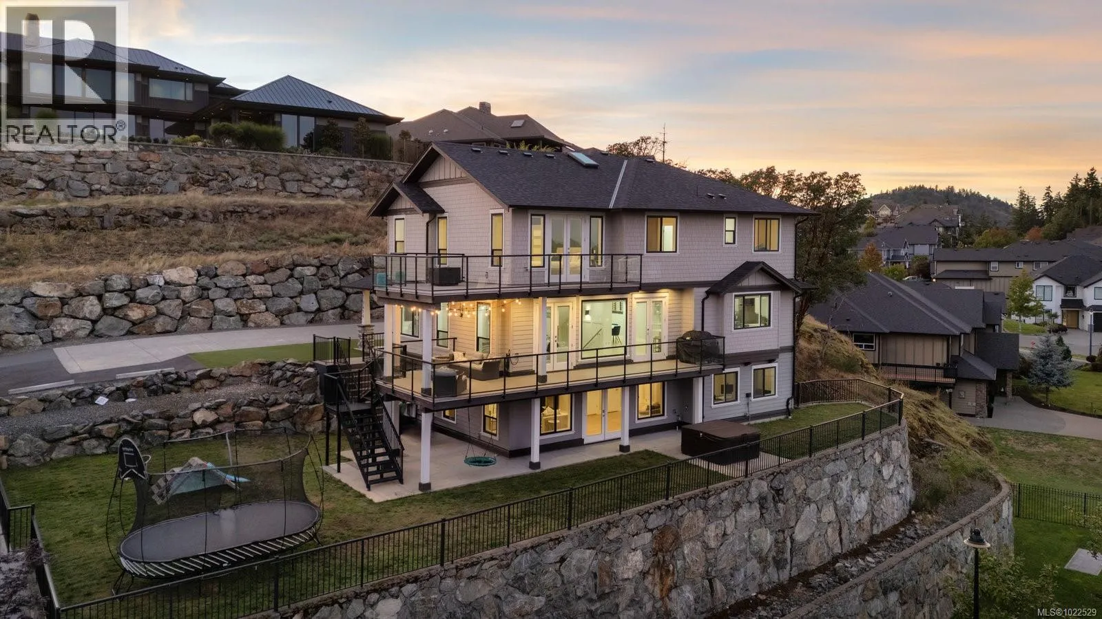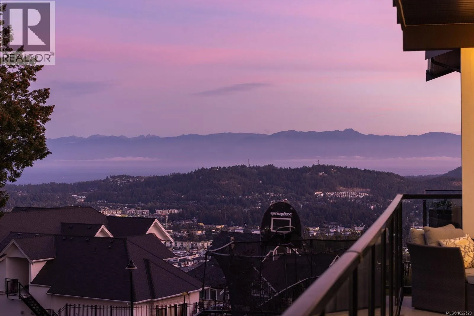 Welcome to 1414 Grand Forest Close, a custom-built family residence perched on Bear Mountain, showcasing sweeping ocean, city, and mountain vistas from every principal room. The entry level presents a chefâs kitchen with a quartz sit-up island, built-in coffee station, and a dedicated dining room highlighted by a bespoke wine wall. The living room opens seamlessly to a wraparound patio, perfect for entertaining or unwinding against the backdrop of stunning views. The primary suite features a lavish 5-piece ensuite, walk-in closet, cozy fireplace, and a private top-floor deck. Additional bedrooms include custom built-in closets and a shared 5-piece Jack-and-Jill bathroom. The lower level impresses with a spacious media room, stylish bar with beverage fridge, guest bedroom, and a versatile office. Walk out to a landscaped backyard from the covered patio. Topping it off is a private 2-BEDROOM SUITE above the garage with its own entry and extra parking. (id:27476)
