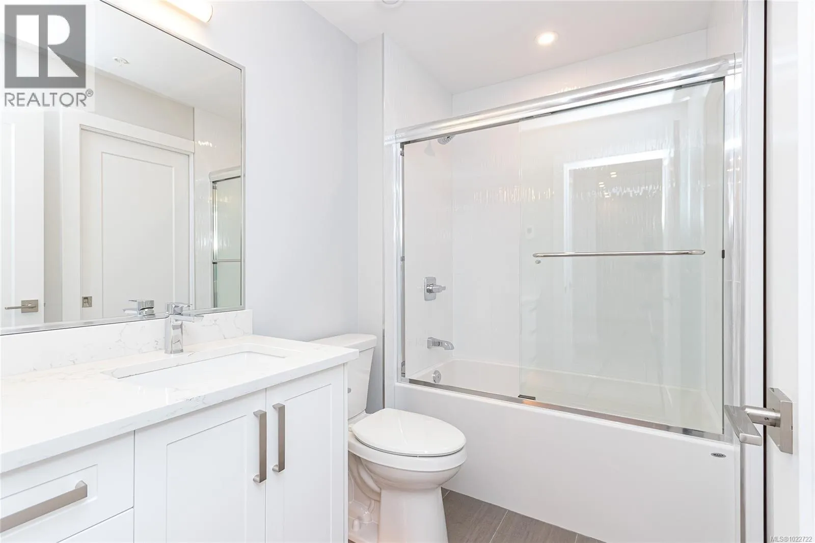 Presenting ''Park Place''âa contemporary collection of 24 expansive residences, now available for occupancy. Located in an unbeatable, serene setting, this development offers the convenience of walking to everything you need. Situated on a tranquil street, directly across from the newly opened Belmont Market, with Westshore Town Centre to the east and Langford Centre to the north, this location is truly central. These homes offer a rare commodity in todayâs marketâspace. Each 2-bedroom suite spans an impressive 1,000 square feet, featuring generously sized sundecks that can accommodate a dining table for four plus a BBQ. Additional sound insulation between bedroom walls and floors ensures a quiet, restful environment. Inside, these thoughtfully designed residences boast 9-foot ceilings, a striking kitchen with quartz countertops, and a premium stainless-steel appliance package. A statement fireplace, set within an accent wall, adds warmth and sophistication, while the tiled entry and durable laminate wood flooring exude timeless appeal. The building itself is equally impressive, with a grand tiled foyer that sets the tone for the refined interior. Residents will enjoy the convenience of interior storage lockers, a fenced dog run play area, and secured parking with video surveillance. For the avid cyclist, ample secured bike storage is available. Select pets and rentals are permitted, adding further flexibility to this exceptional living opportunity. Park Place offers not just a home, but a lifestyleâsophisticated, convenient, and perfectly situated. (id:27476)