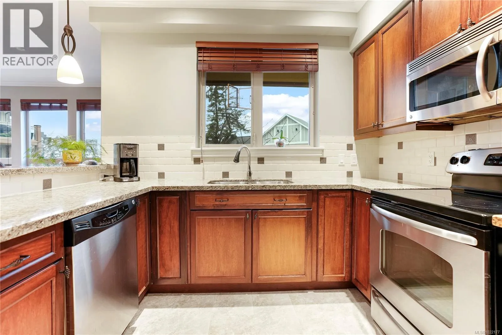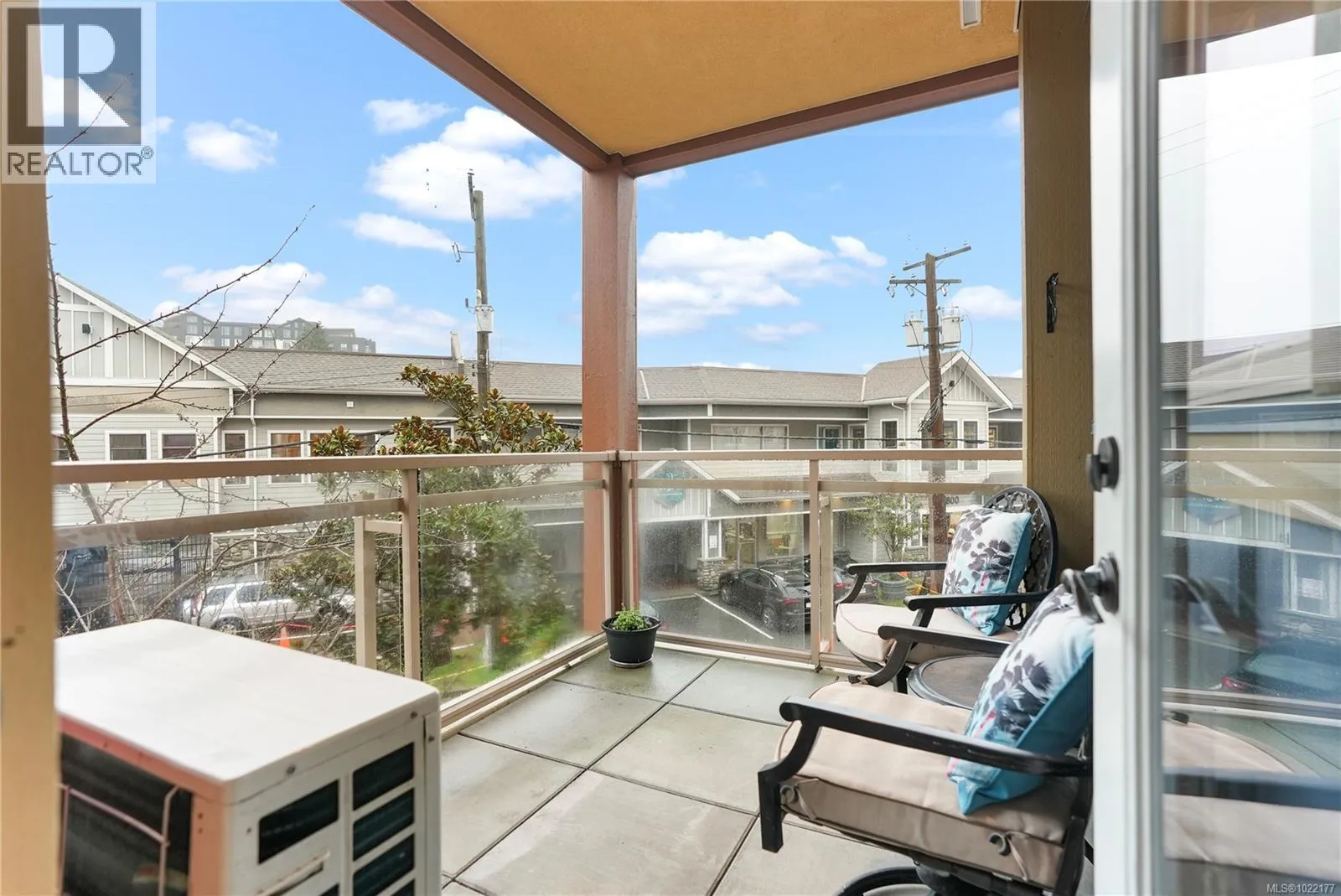 * O/H THIS SAT 12:30-2* AMAZING 2 bed+DEN /2 bath SPACIOUS CORNER UNIT! ''The Metro'' in vibrant Goldstream Village that's walkable to stores, schools, restaurants, coffee shops, library, John Horgan Campus, RRU university & much more! Over 1240 ft of thoughtfully designed space, highlighted by an oversized living area w/cozy electric FP, & windows SW facing. Features include quality finishing throughout, 9-ft ceilings, crown molding, wood floors, stone countertops, a large dining area & laundry/storage.The primary ensuite offers a luxurious soaker tub, dual vanity & tile flrs. BONUS A heat pump has been added to keep you warm & cool! This home includes one secure underground parking spot w/ 1 storage locker directly behind it, + additional separate storage locker.Hot water is included in the monthly strata fee. Pet-friendly, see bylaws. Well cared for by the current long term owners. Close to shops, dining, and more, this condo combines comfort and convenience in a prime location! (id:27476)
