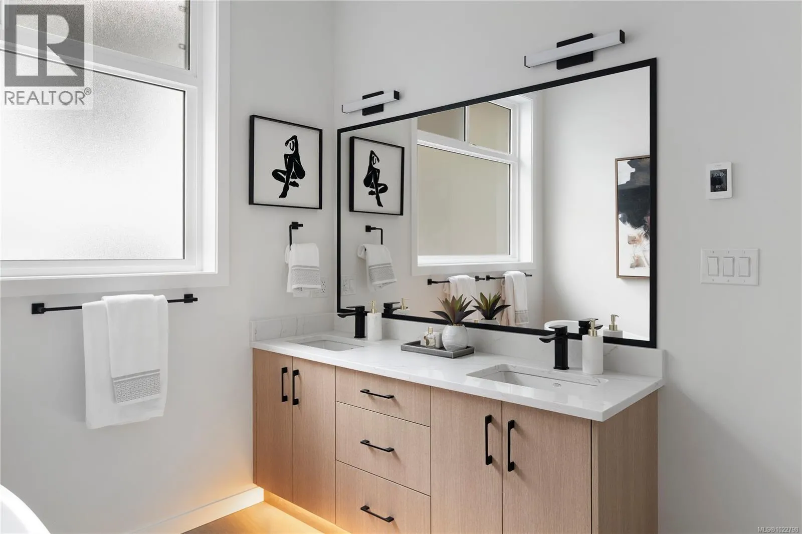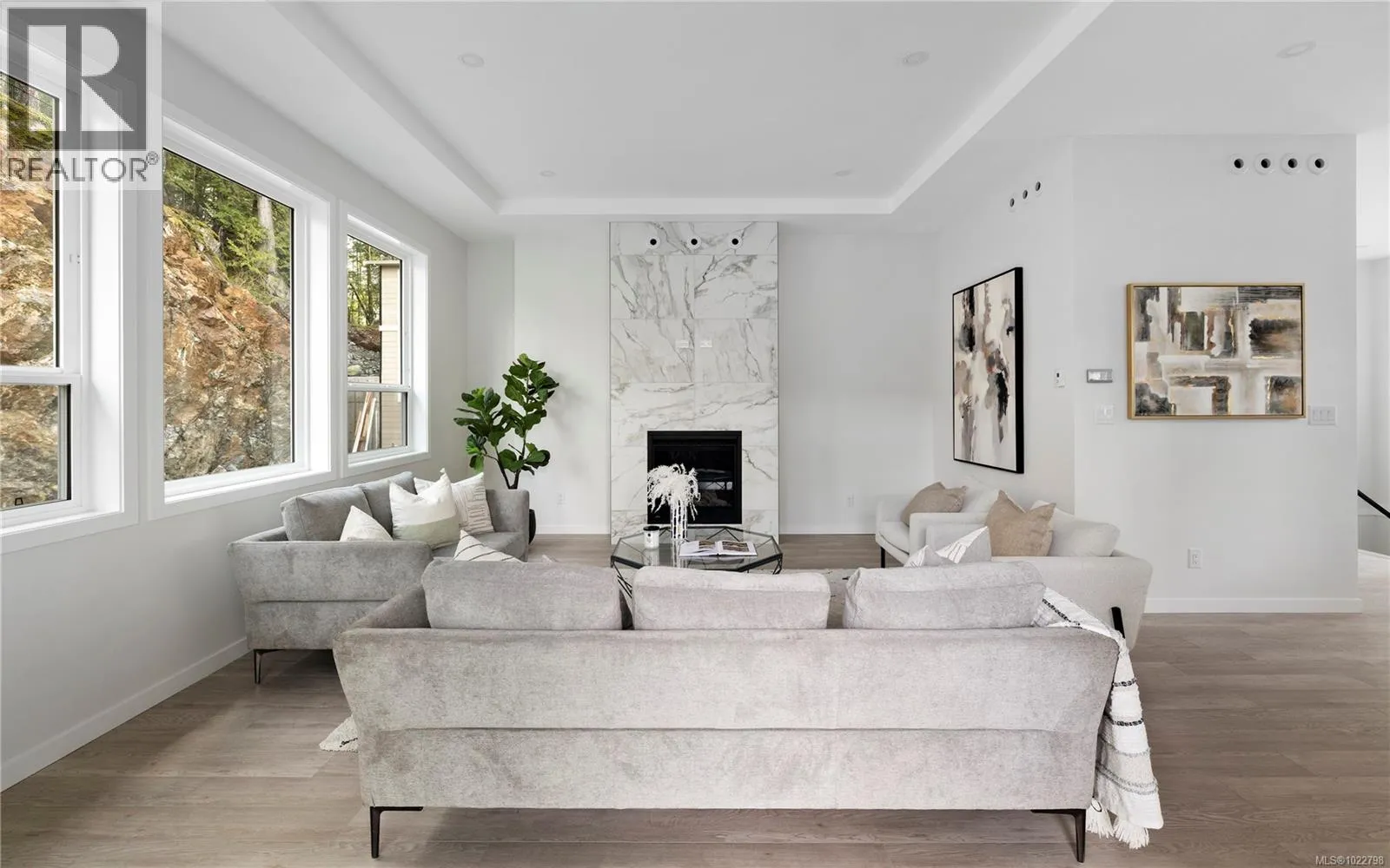 Welcome to this beautifully crafted Oliver floor plan in sought-after Olympic View, built by Windcrest Developments â a respected 3rd generation local builder. Offering 2,199sqft of contemporary West Coast design, this home features bright, open-concept living on the upper level with a sleek kitchen, gas range, and stylish finishes. Enjoy seamless indoor-outdoor living with two patios â perfect for entertaining or unwinding. The spacious primary suite boasts vaulted ceilings, dual walk-in closets, and a spa-inspired ensuite with heated floors. The lower level includes two additional bedrooms, a versatile office space overlooking the landscaped rock wall, full laundry room, and access to the double garage. Stay comfortable year-round with an efficient heating & cooling system and cozy gas fireplace. Low-maintenance yard with irrigation and synthetic turf. Steps to Olympic View Golf Course, beaches, trails, shopping, and the new elementary school (opened Sept 2025). Price plus GST. (id:27476)