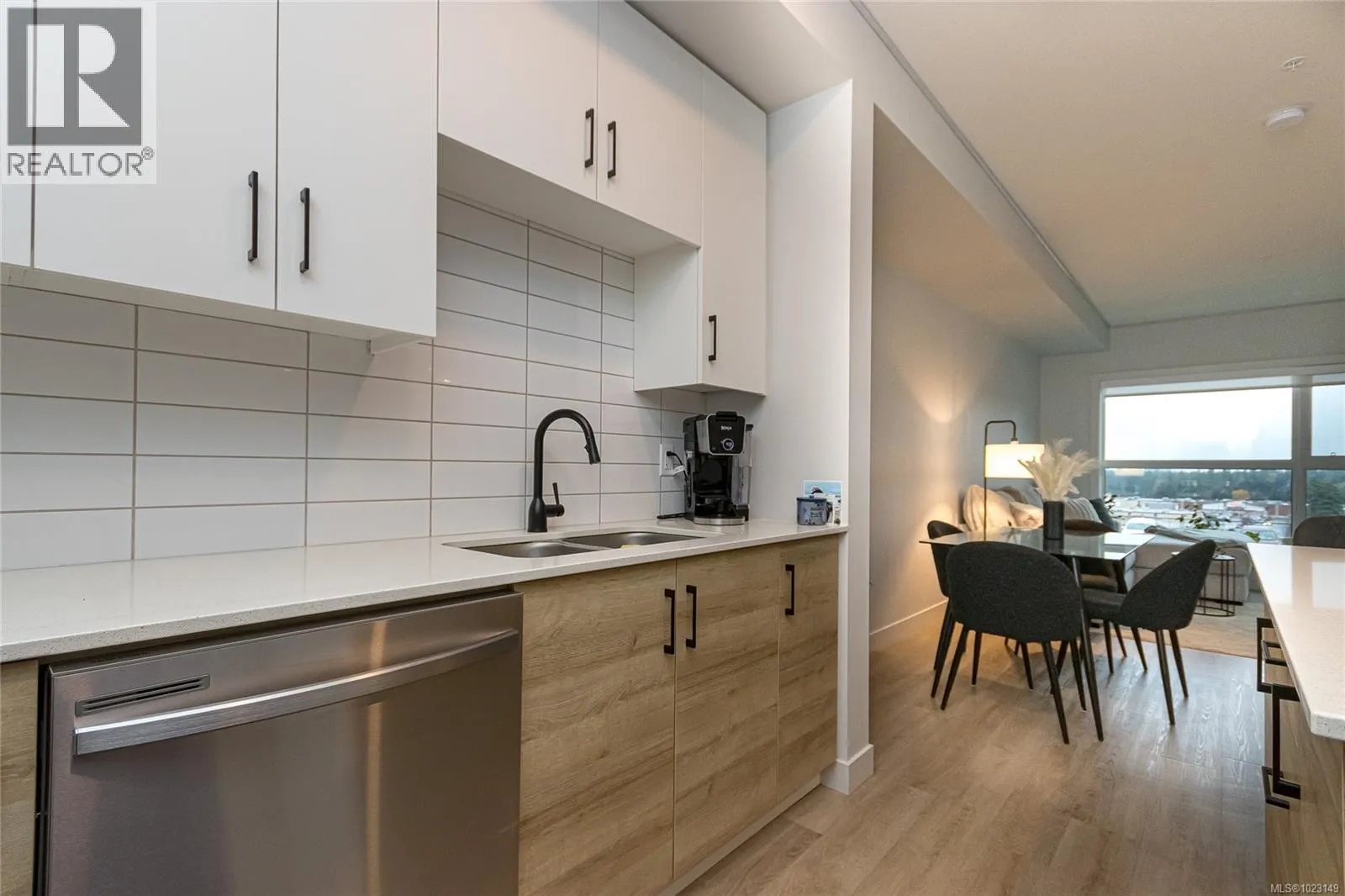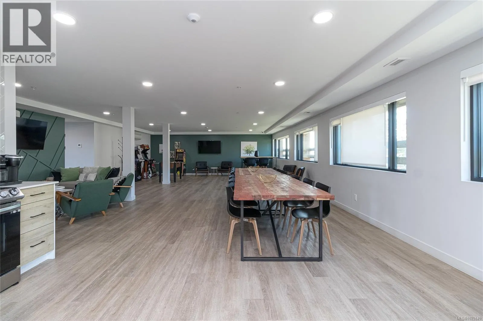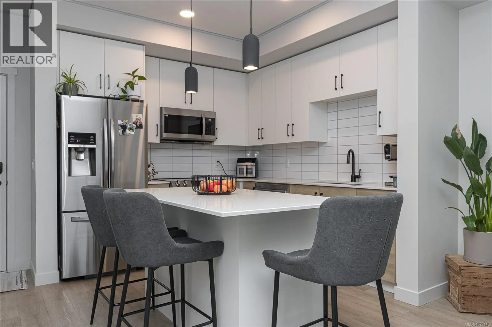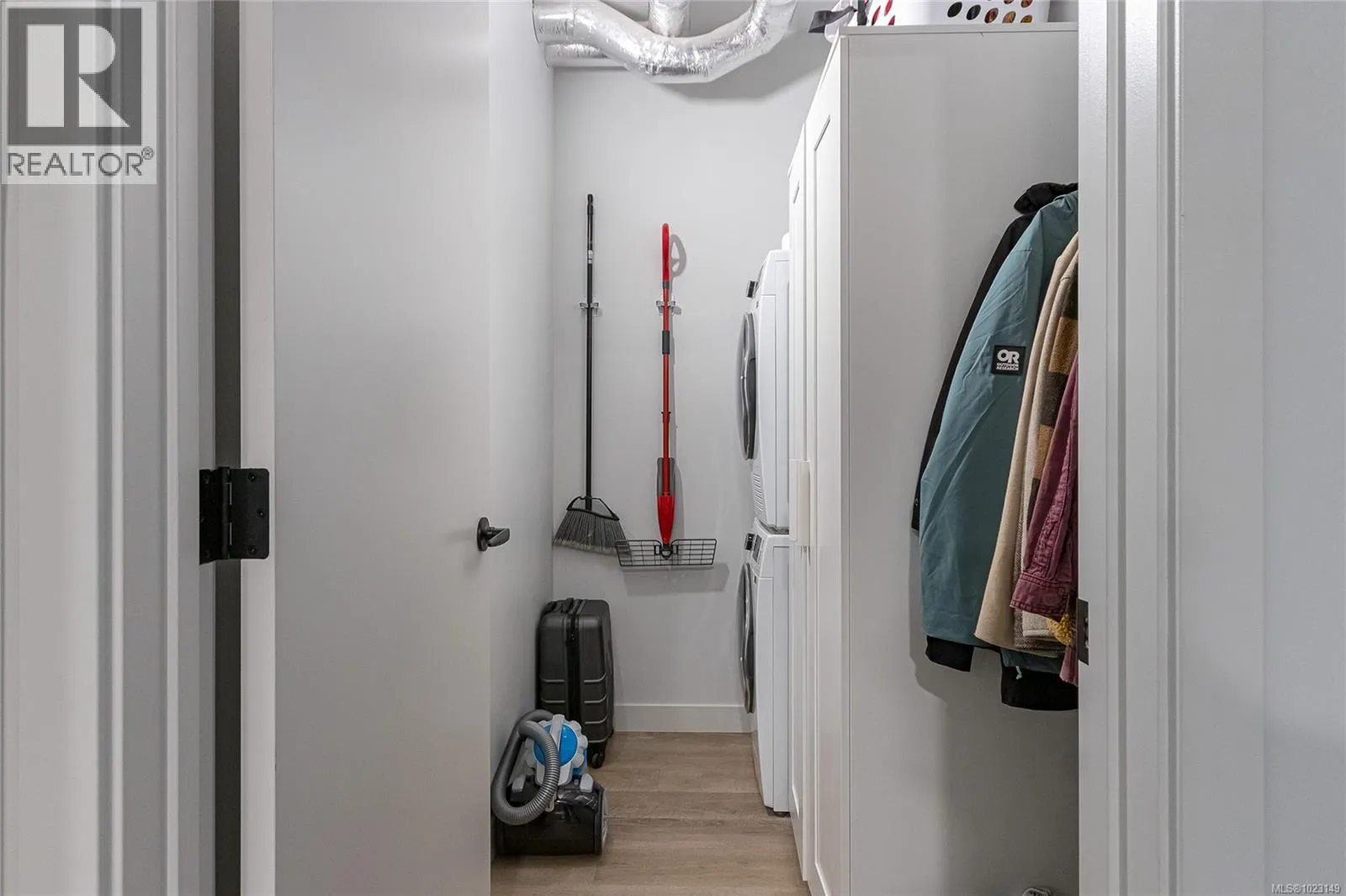Discover modern living at its finest in this amenity-rich, pet- and family-friendly building. The kitchen is beautifully appointed with Samsung stainless steel appliances, soft-close cabinetry, and quartz countertops. The large living room flows into the large deck that provides an excellent outdoor living space. Enjoy luxurious wide-plank flooring throughout, with a carpeted bedroom, and a bright 4-piece bathroom featuring a relaxing soaker tub. The home also includes an in-suite laundry room with a leak detection system for added peace of mind. The laundry room offers tons of extra storage too. All this plus a designated underground parking stall with an additional storage locker conveniently located beside it. Built Green and highly energy efficient, the unit offers triple-pane windows and a heat pump providing both heating and air conditioning. The strata boasts exceptional amenities, including a fitness center, guest suite, indoor lounge, dog run, community garden, recreation room & rooftop deck. All of this is just steps from coffee shops, restaurants, and everyday conveniencesâmaking it the perfect blend of comfort, convenience, and urban lifestyle. (id:27476)