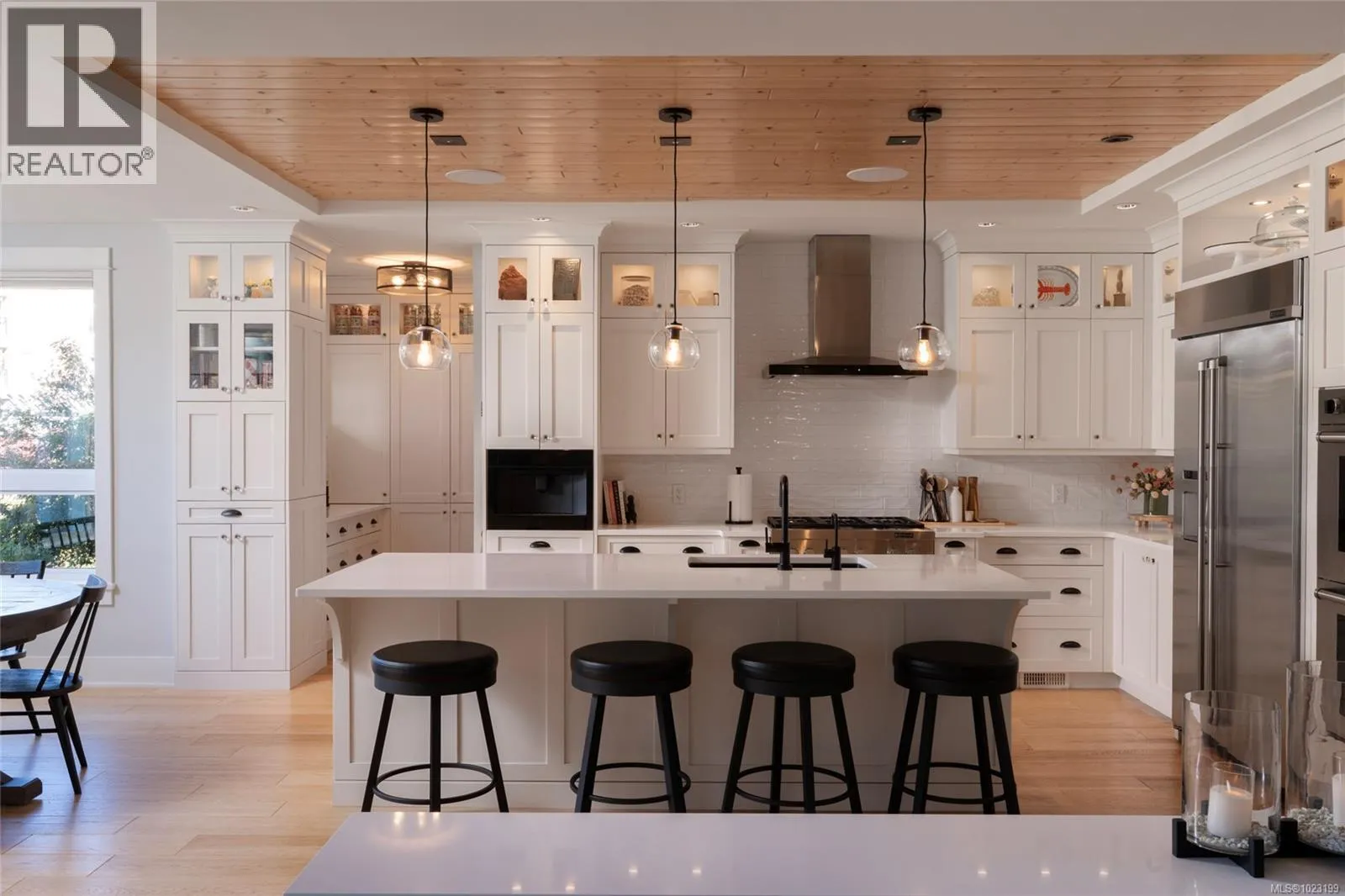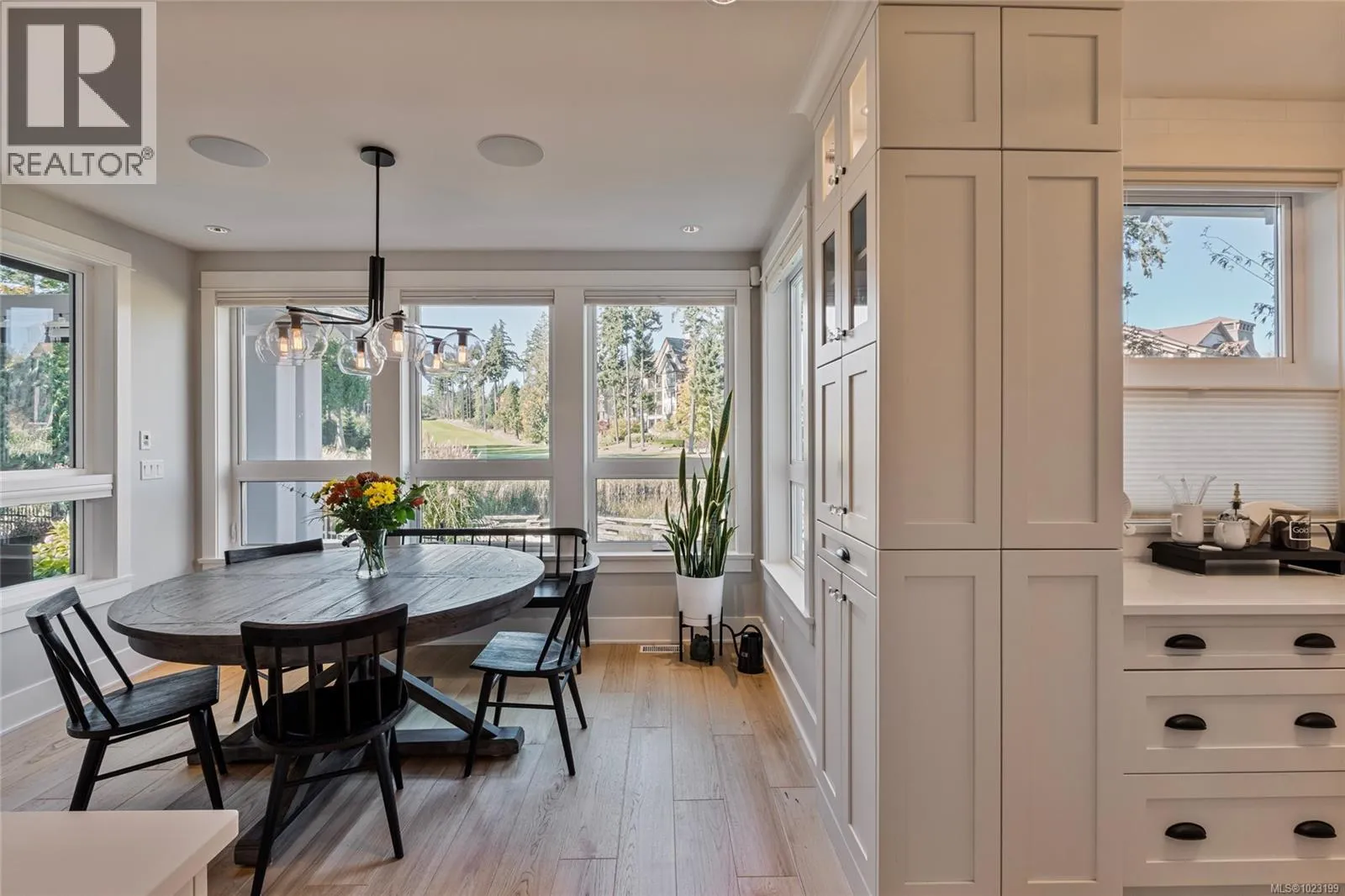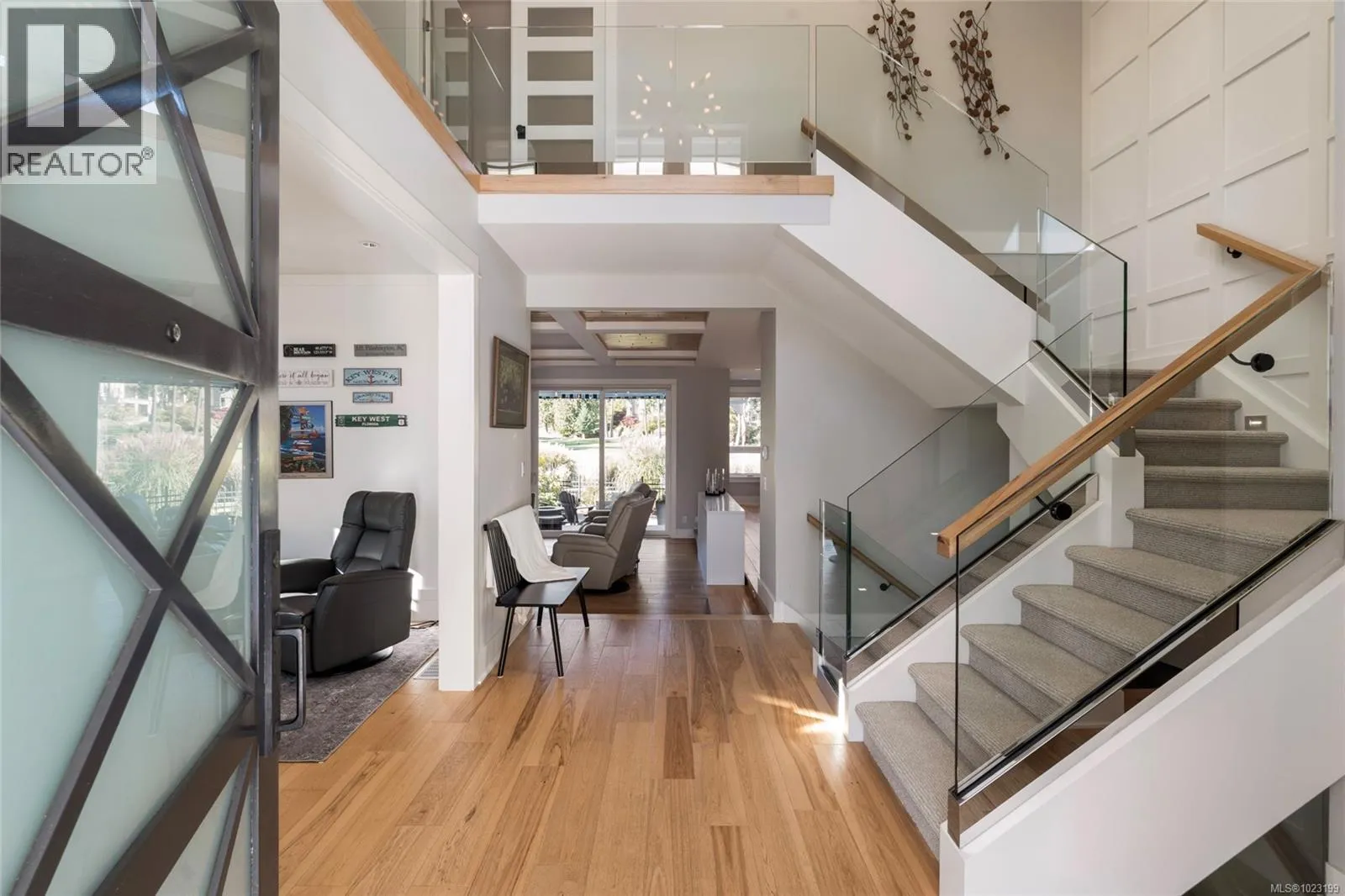 Architecturally crafted and masterfully designed, this exceptional residence commands breathtaking views of the 9th fairway of the Jack Nicklaus Signature Mountain Course. Every detail has been thoughtfully curated, blending timeless sophistication with modern comfort. Expansive picture windows frame the scenic landscape, flooding the interiors with natural light and creating seamless harmony between indoors and out. The open-concept layout is perfect for entertaining, anchored by a gourmet chefâs kitchen featuring premium cabinetry, stone surfaces, professional-grade appliances, a generous walk-in pantry, and island seating for casual dining. The elegant dining area flows effortlessly into a welcoming living room enhanced by a fireplace and custom millworkâideal for quiet evenings or lively gatherings with family and friends. A versatile recreation room, private study, powder room, and well-appointed mudroom with laundry facilities and a pet spa complete the main level. Upstairs, the ownerâs retreat is a sanctuary of relaxation, featuring a sumptuous walk-in closet and a 5-piece spa-inspired ensuite with a luxurious steam shower. The lower level continues to impress with two additional bedrooms, a home theatre, a second study, and a fully equipped fitness studio complete with a rejuvenating sauna and 4-piece bath. Outside, the expansive patio offers an oasis of tranquility, overlooking the manicured grounds of the golf course. Whether youâre enjoying your morning coffee, hosting guests, or soaking in the sunset, this outdoor space provides the perfect backdrop for every occasion. Ideally located - only a short drive to downtown Victoria, the Victoria International Airport, and BC Ferries, this home offers both convenience and exclusivity. Experience the ultimate in refined living, where luxury, leisure, and lifestyle converge in perfect balance. (id:27476)