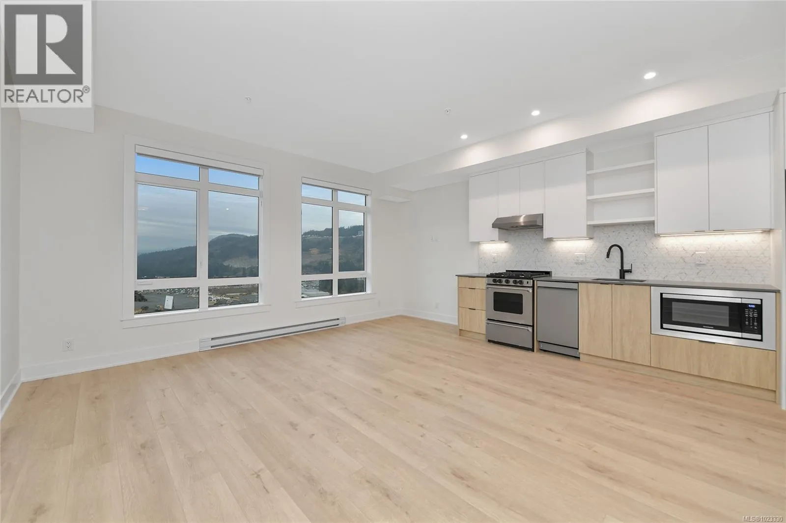 Solaris North is the latest addition to the popular lakeside community of Westhills. Whether you are a savvy investor or accomplishing the goal of buying your first home, this Jr. one bedroom unit is the ideal opportunity. Discover the perfect blend of luxury and convenience in this exquisite condo. Designed with modern living in mind, this charming space offers an open-concept layout, stylish finishes, and large windows to maximize natural light. Enjoy a gourmet kitchen, a cozy living area, and a serene bedroom nook—all tailored for comfort and functionality. Take in the expansive mountain views and enjoy spectacular sunsets. . Solaris North offers an exceptional amenity package, including an outdoor kitchen, BBQ areas, dining spaces, cozy firepit seating, herb gardens, and even a putting green. Stay active with the outdoor gym area or take advantage of the pet-friendly features like the convenient pet wash station. The building also includes bike storage, a car wash, and EV-ready parking stalls. Ideally located, Solaris North is a short drive from vibrant Langford for all your shopping and dining needs and offers easy access to Hwy #1 for effortless commuting and weekend getaways. Elevate your lifestyle and make this exceptional space your new home. Only a $25,000 deposit is required to secure your home. Show suites are open daily from 12–4 pm at 205 -1110 Samar Crescent. Visit us and discover your new home today! (id:27476)