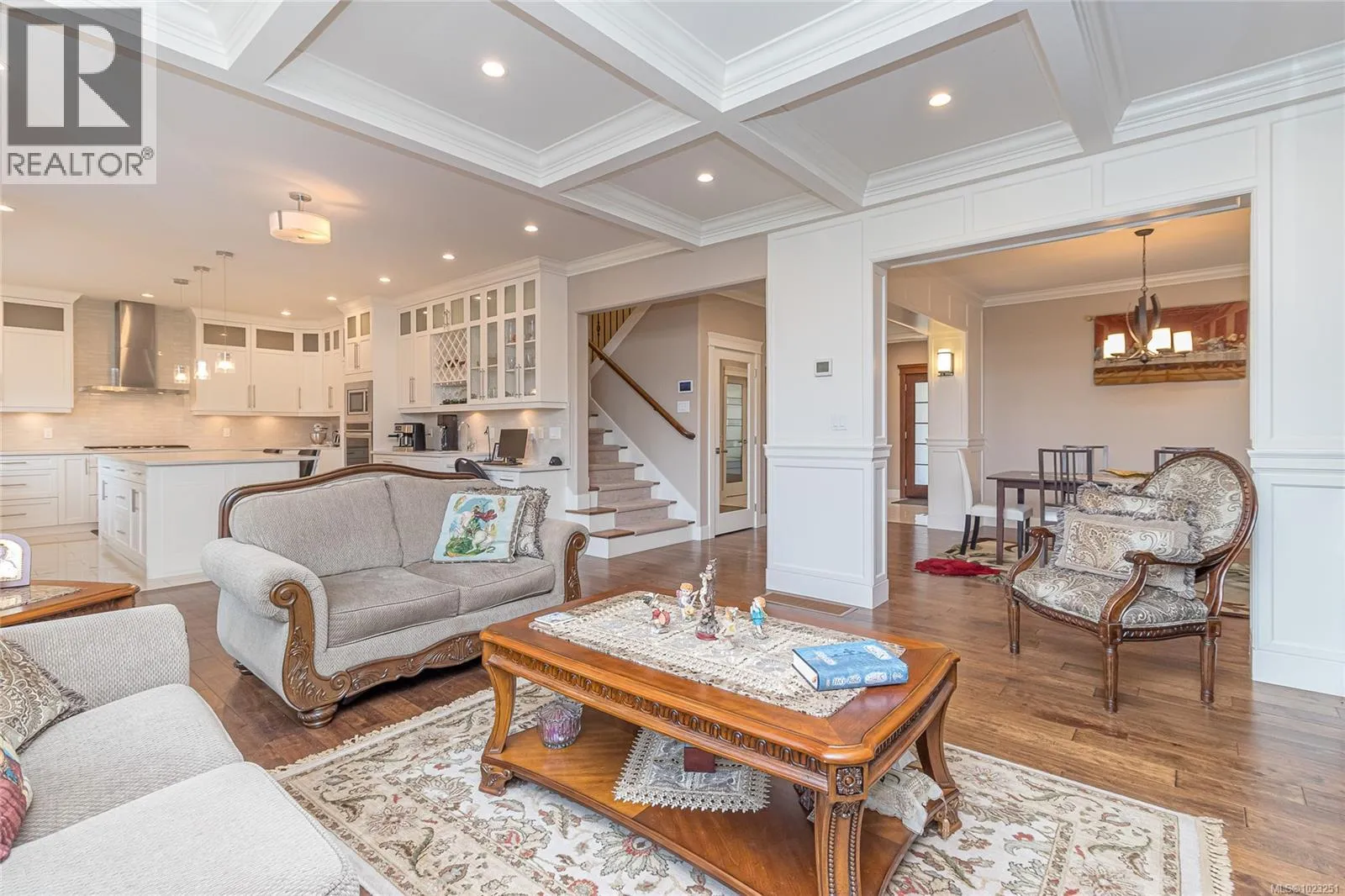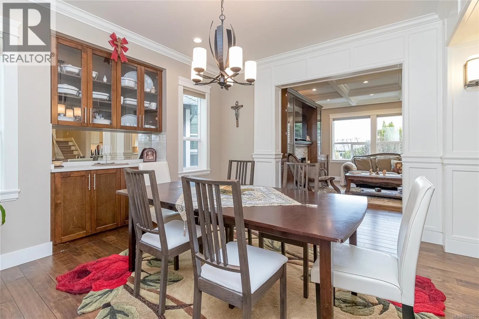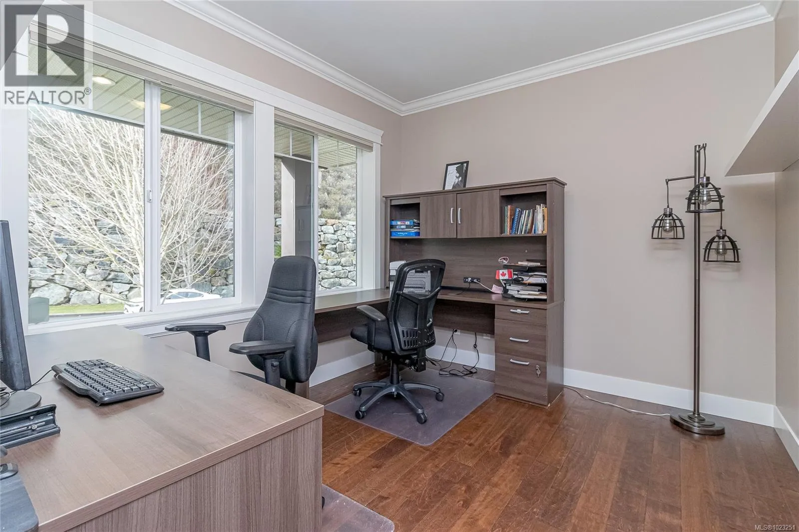 Executive and luxurious home perched at the top of World Class Bear Mountain Golf Resort. 4bed and an office, plus a legal 1bed suite above the garage. Gleaming hard wood floors, built in cabinetry, fireplace, coffered ceilings, wainscoting & panelled walls. White cabinetry kitchen w/large island, quartz countertops farmhouse sink built in wine rack, 5 burner gas stove, dual apron sinks & a massive hidden walk-in pantry. Upstairs find three LARGE bedrooms. Primary bedroom offers beautiful views, 2 oversized walk-in closets, built in vanity, dual sinks, large jetted soaker tub, walk-in rain hood shower, heated floors & quartz countertops. Suite is soundproofed w/its own side access & laundry set. Vaulted ceilings skylights heat pump crawl space security system hot water on demand extra storage & surround sound. The back yard has been tastefully landscaped, fully fenced w/ a dog run hot tub shed & covered BBQ shelter wired & heated roof. Exceptional location and exceptional layout! (id:27476)