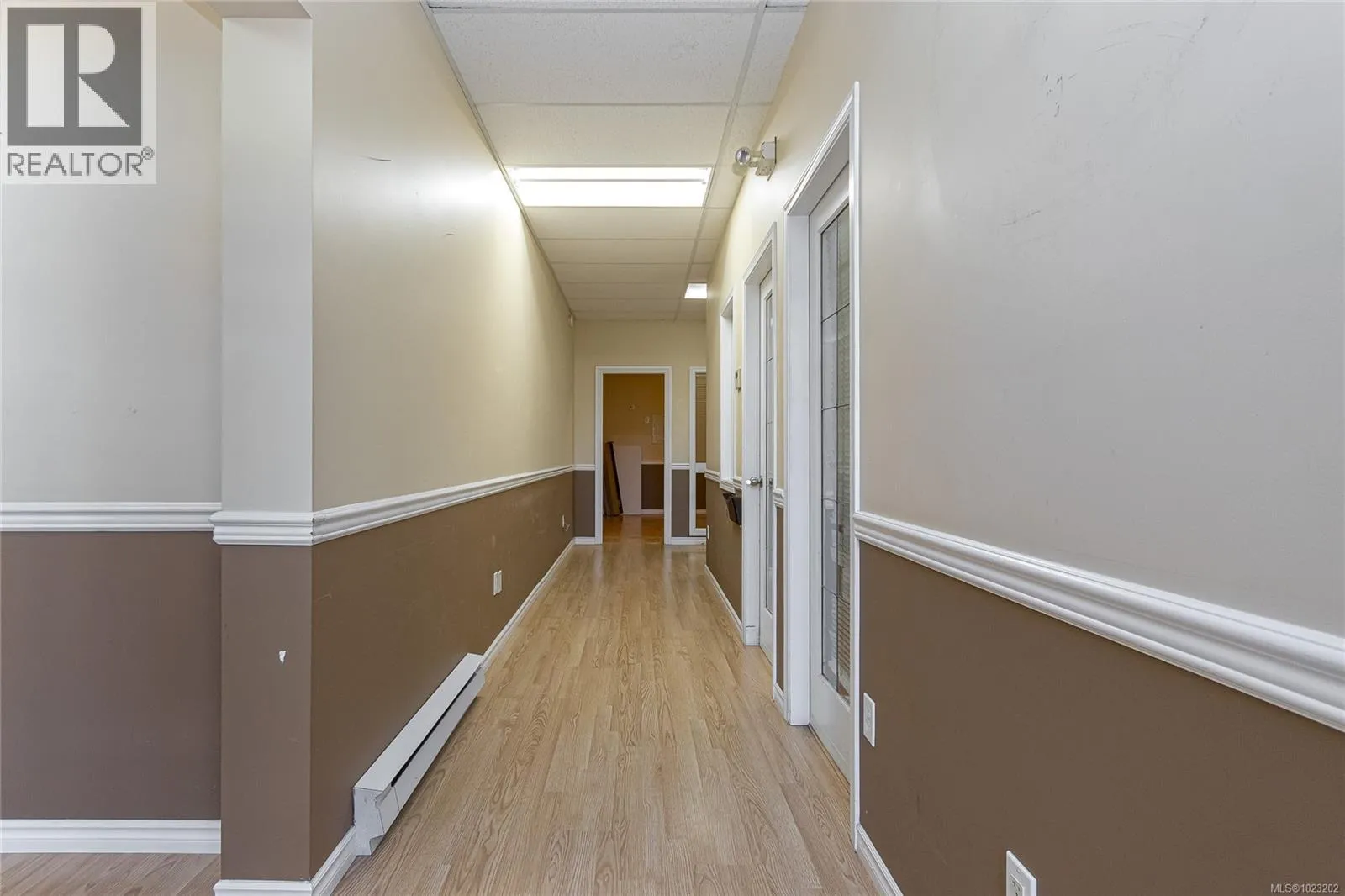 Zoned MU1 this ground floor commercial strata office space in a mixed-use development offers 575 sq. ft of thoughtfully renovated space, featuring a spacious open work area, a private office and a convenient two-piece bathroom. Uses include office space, retail, food services, personal services, medical offices. One parking spot is included. Ideally situated in Langfordâs downtown core the location provides easy access to nearby amenities and parking. An outstanding option for both investors and owner-occupiers. Unit 103 and 105 should be purchased together as they are combined via a common foyer and air conditioning system. Unit 107, next door, is also available if more area is needed to expand. The 3 units together would provide 1727 sq ft of space. (id:27476)