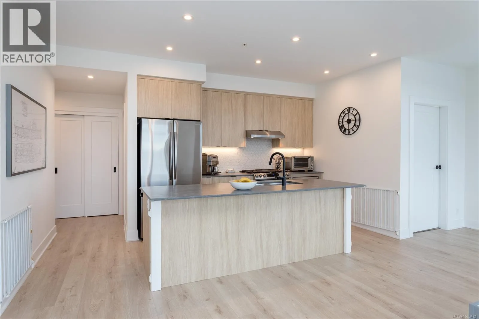 Welcome to Solaris at Westhills, a Built Green Certified community blending sustainability with modern elegance. This well-appointed 2-bedroom plus den, 2-bath condo features 9â ceilings and lake views. The gourmet kitchen includes gas appliances, island, pantry, cabinetry, stone counters, tiled backsplash, and matte black hardware. The primary suite has a walk-in closet with custom shelving; the den suits office or guest room. Walk-in laundry room with full-size washer and dryer. This smart home provides integrated control for climate, lighting, and security, plus A/C and baseboard heat. Secure building with visitor access. EV-ready stall in a gated parkade, plus car wash, bike/locker storage, and pet wash. Landscaped courtyard with outdoor kitchen, dining areas, seating, and gas firepits. Surrounded by parks, trails, and urban amenitiesâshopping, dining, movies, cafés, more. Call now to book a viewing! (id:27476)