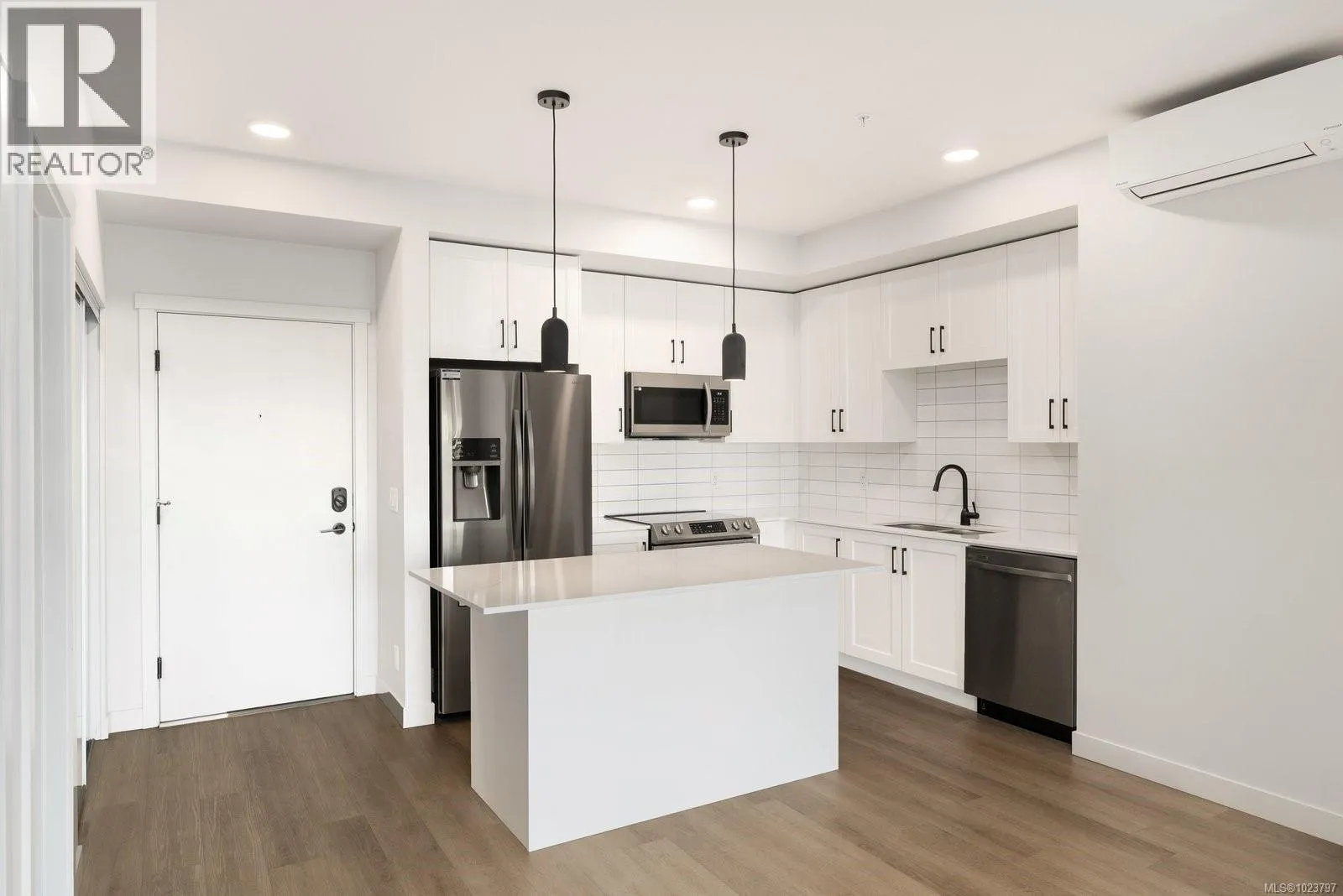 Open house Saturday Feb 12 - 12-1pm* Welcome to Sky Gateâwhere lifestyle meets convenience. This unit comes with 2 parking spots...This stylish 2 bed/2 bath suite offers a smart, functional layout with great privacy between bedrooms and an open living space that flows to a private balcony. The modern kitchen features a bright white island, stainless steel appliances, and quartz countertops, while the oversized in-suite laundry room adds valuable storage and everyday ease. Enjoy year-round comfort with an energy-efficient heat pump providing both heating and A/C, plus 9â ceilings and LED lighting throughout. Included are two dedicated parking stalls (one underground) and a secure storage locker. Residents enjoy premium amenities: fitness centre, EV charging, rooftop patio, dog run, gardens, lounge, and bike storage. Walk to shopping, groceries, dining, parks, and trailsâthis one wonât last! (id:27476)