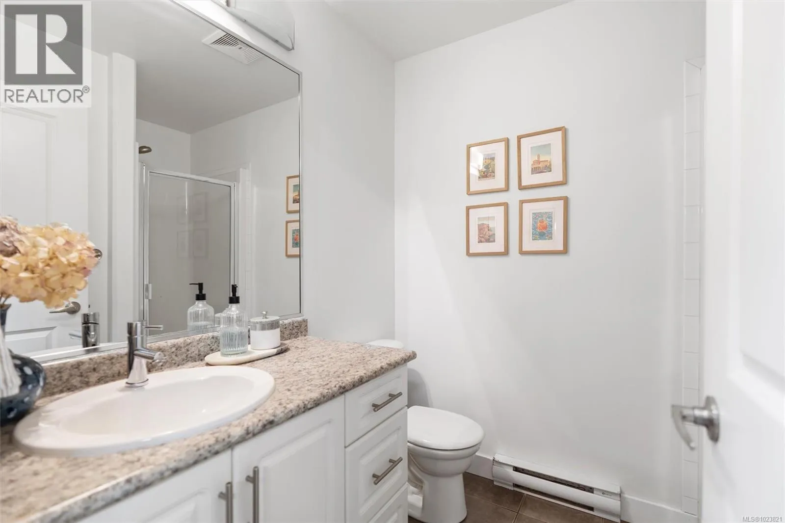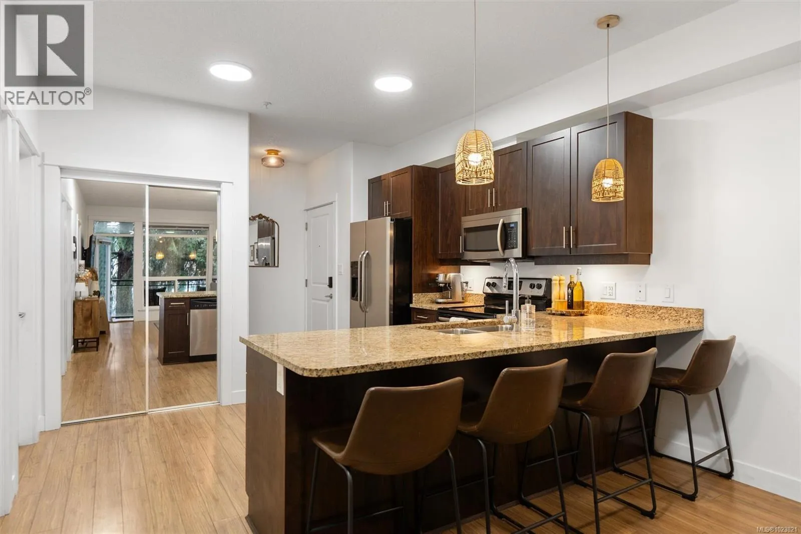 Bright, spacious, and perfectly located + TWO PARKING STALLS! This 2 bed, 2 bath unit offers peaceful living on the quiet side of the building. Set back from the main road, you'll find 9â ceilings, oversized windows, incredible natural light, granite countertops, and modern appliances. The open-concept kitchen and living area is ideal for entertaining and opens to a private, covered patio overlooking mature trees - perfect for year-round use. The generous primary bedroom fits a king-size bed and includes a full ensuite, plus, you'll find a spacious second bed & bath. Functional storage including pantry + separate locker, and TWO secure underground parking stalls. Professionally managed strata with a healthy contingency fund, pets welcome (including big dogs), with low strata fees. Walk to Westshore Mall, Langford Lake, YMCA, Belmont Market, trails, and transit. This home is the perfect blend of convenience, privacy, and practicality. (id:27476)