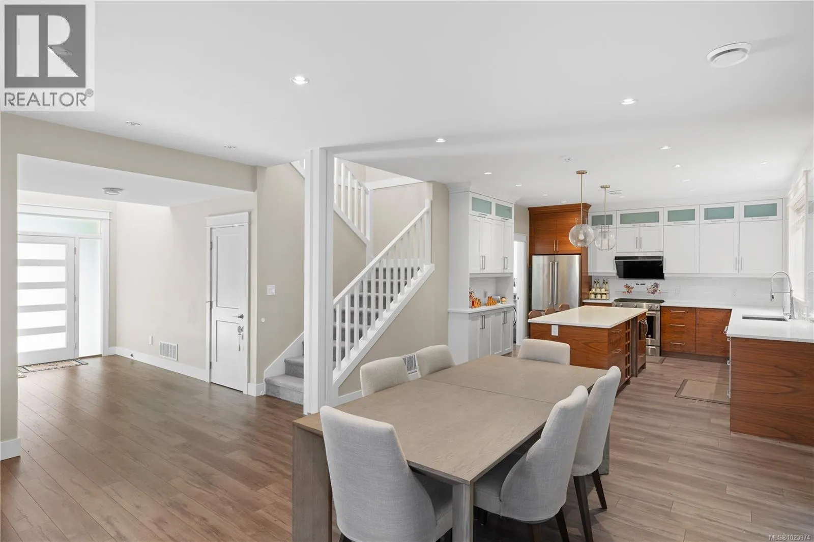 Tucked away in the quiet and sought-after Olympic Ridge community, this elegant 3-bedroom, 3-bath home with a large den offers a refined blend of modern design, functionality, and everyday comfort. Perfectly positioned at the end of a peaceful street, it enjoys exceptional privacy while remaining just minutes from Royal Bay Secondary, Red Barn Market, scenic parks, Olympic View Golf Course, and public transit, with Starbucks, local shops, and essential conveniences only a short drive away. The main level welcomes you with 9-foot ceilings, abundant natural light, and a bright open-concept living, dining, and kitchen area thoughtfully designed for relaxed family living or effortless entertaining. The gourmet kitchen impresses with premium stainless steel appliances, quartz countertops, and an extended island that is perfect for casual meals or social gatherings. Upstairs, the primary suite features elegant French doors leading to a spa-inspired ensuite and a spacious walk-in closet, while two additional well-sized bedrooms share a beautifully finished 5-piece bathroom. Enjoy the tranquil mountain and forest views from the elevated setting, offering a private retreat ideal for quiet mornings or unwinding after a long day. (id:27476)
