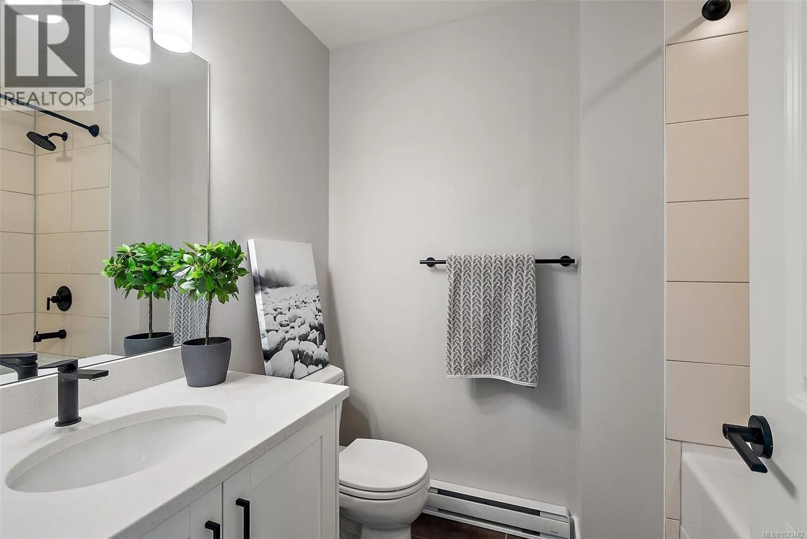 Top-floor and one of the largest units in the building, this 2-bedroom, 2-bathroom condo at 844 Goldstream Avenue is located in the heart of Langford and showcases impressive 17-foot vaulted ceilings with a bright, open-concept living, dining, and kitchen layout. Large windows flood the home with natural light, creating an airy and welcoming atmosphere. The spacious kitchen offers quartz countertops, newer appliances, and an eat-in islandâideal for everyday living and entertaining. This unit includes a secure, covered parking stall. Enjoy exceptional walkability to shopping, restaurants, transit, and the new university campus. A fantastic opportunity for first-time buyers, professionals, or investors seeking space, location, and low-maintenance living. Move-in ready and available today! (id:27476)